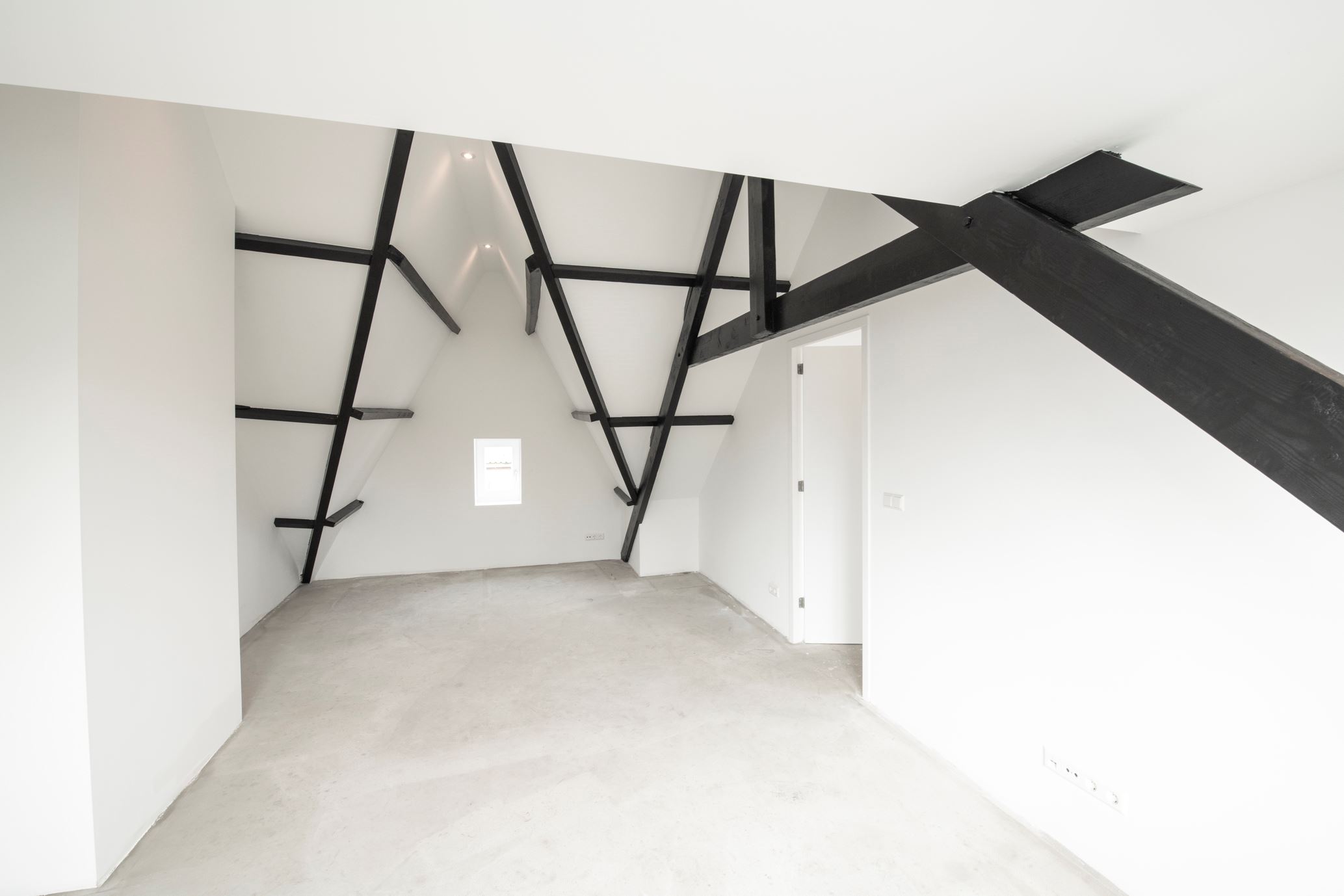 Op de tweede verdieping van deze woning, die je bereikt via een vaste trap, merk je pas echt hoe groot deze woning is. Je vindt hier de "masterbedroom" met eigen badkamer, inclusief douche, designradiator en wastafel. Tevens is er een apart washok aanwezig met de benodigde aansluitingen. De ruimte is tot aan de nok opengewerkt met de mooie authentieke balken in het zicht.