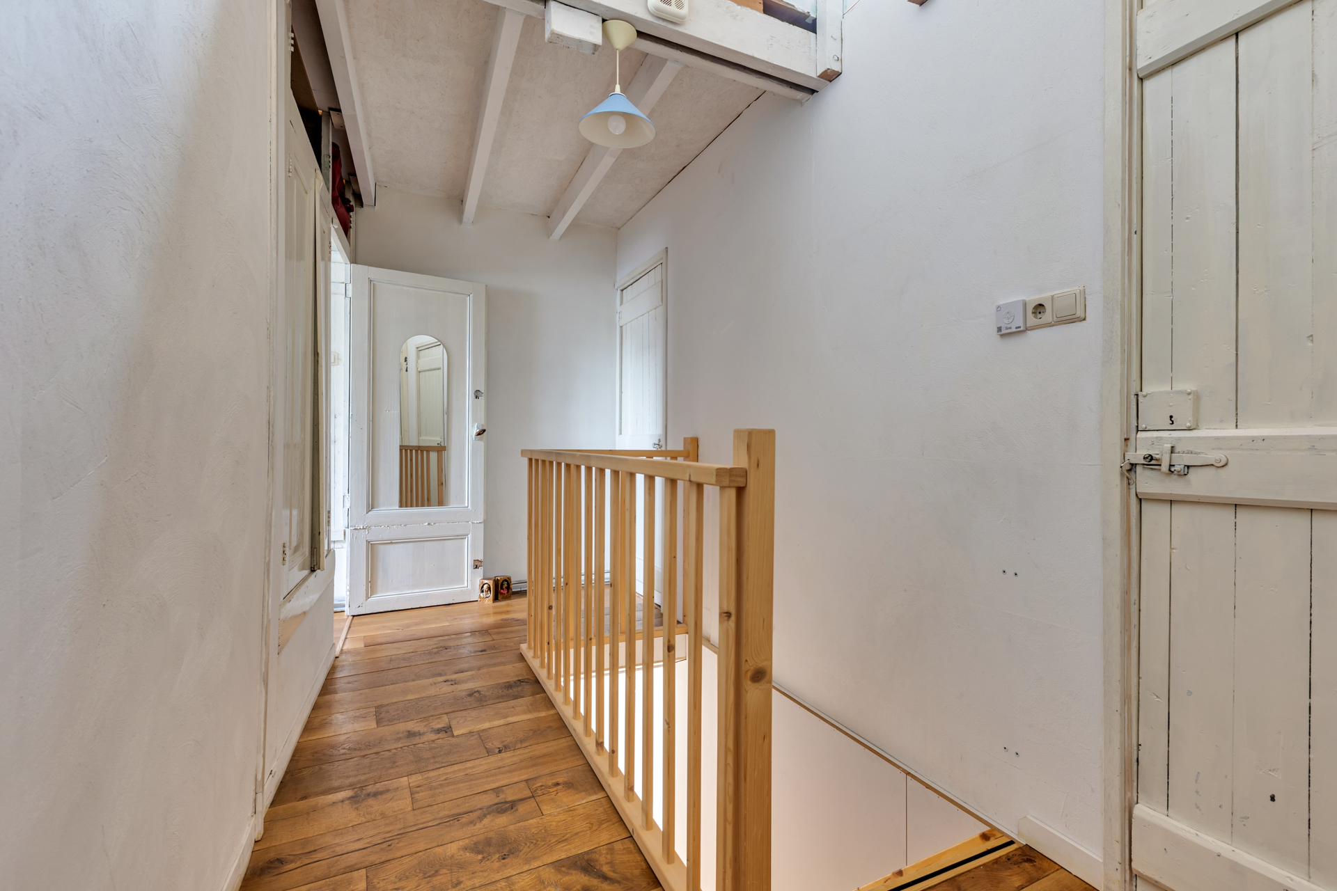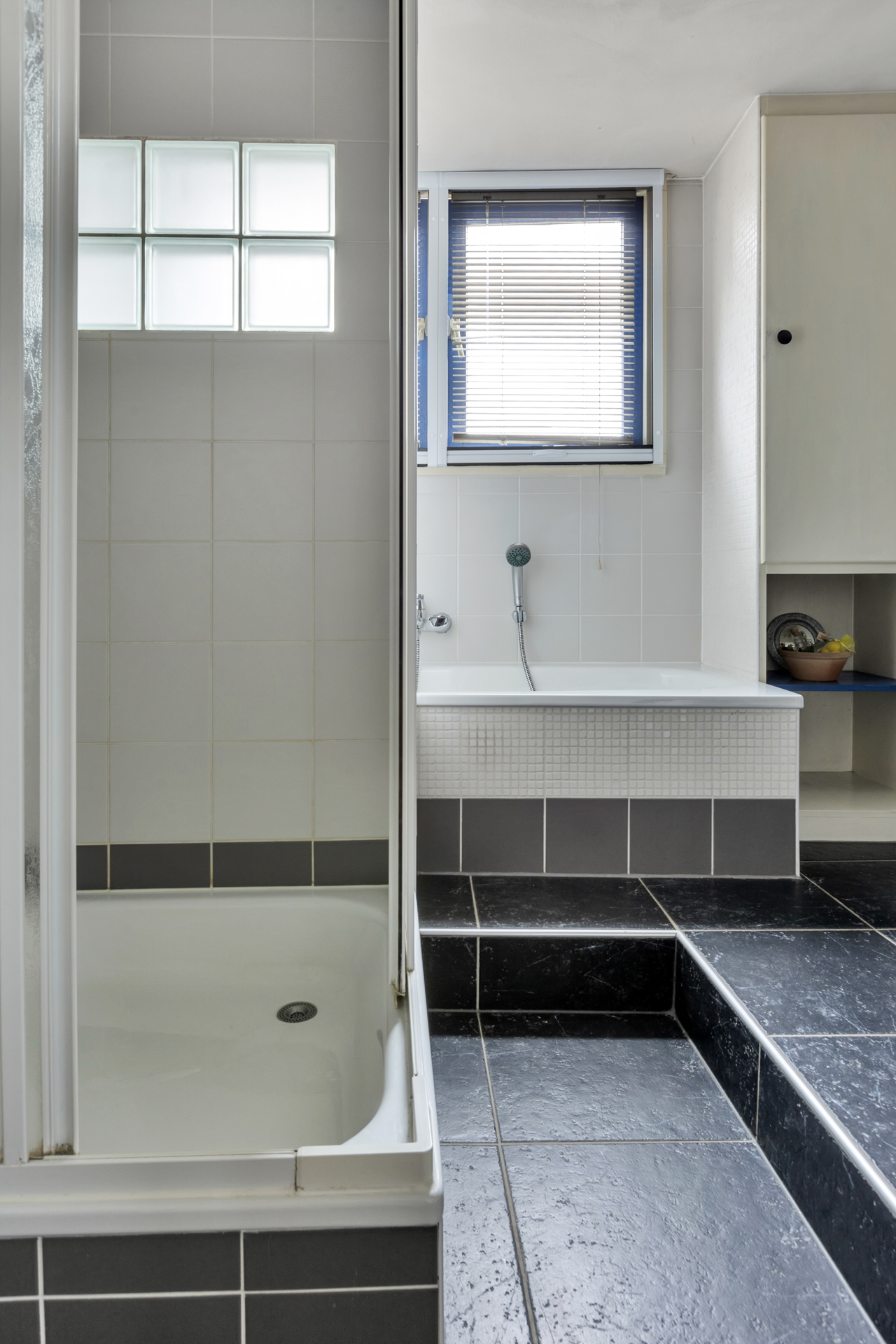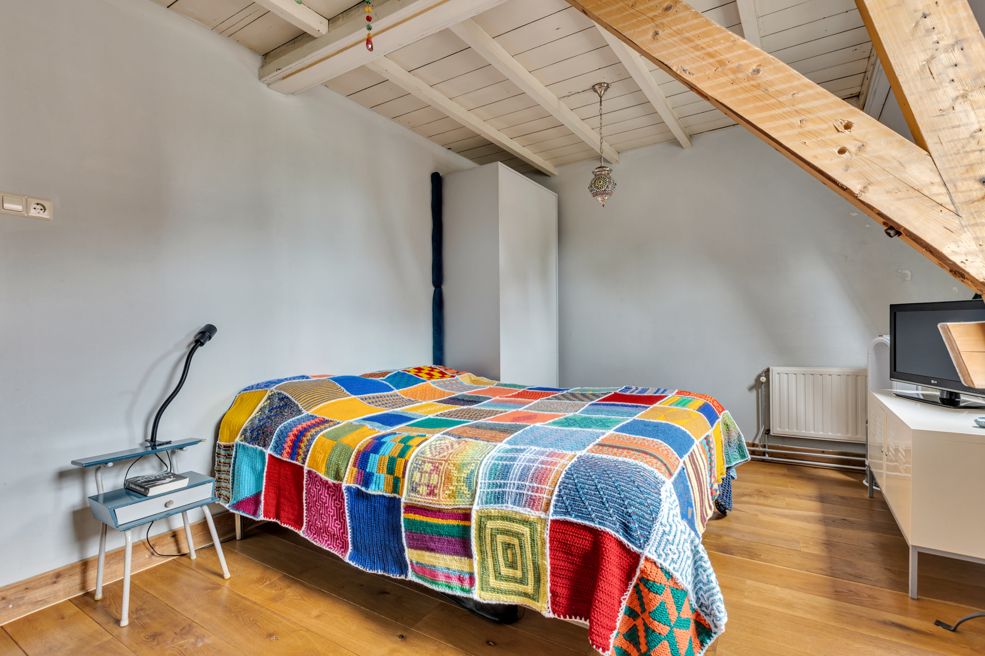 Overloop, 4 slaapkamers, waarvan 1 trapjeskamer, badkamer met bad, douche, toilet, radiator en wastafel. Deze hele verdieping is voorzien van fraaie houten vloer en mooie authentieke elementen.