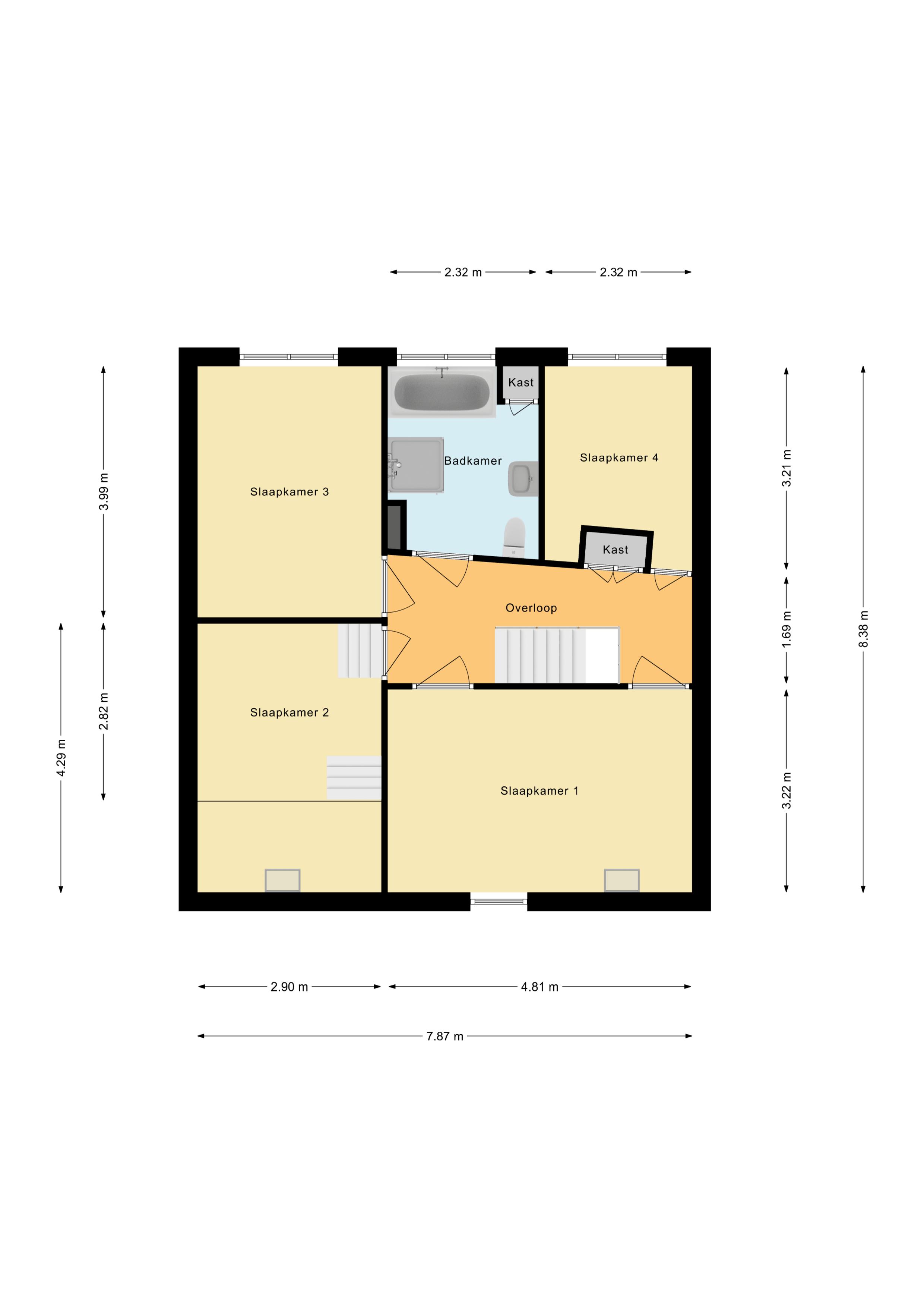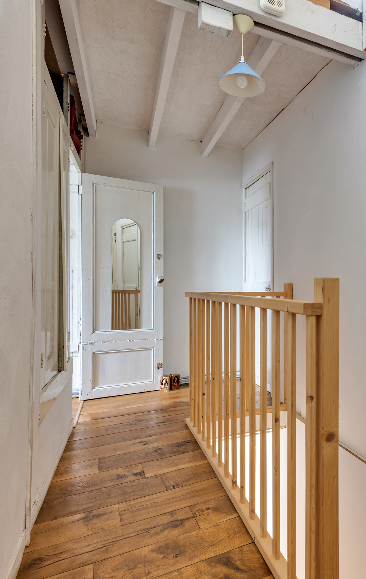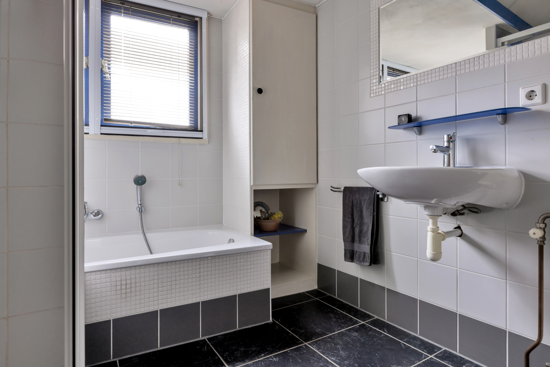 Overloop, 4 slaapkamers, waarvan 1 trapjeskamer, badkamer met bad, douche, toilet, radiator en wastafel. Deze hele verdieping is voorzien van fraaie houten vloer en mooie authentieke elementen.