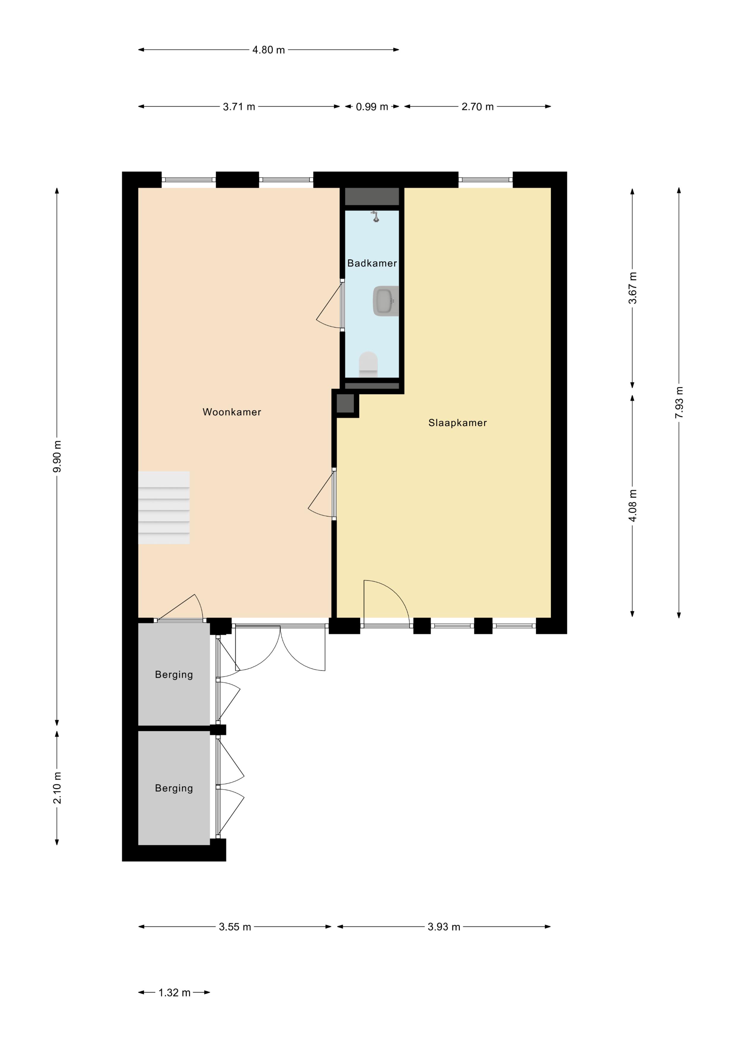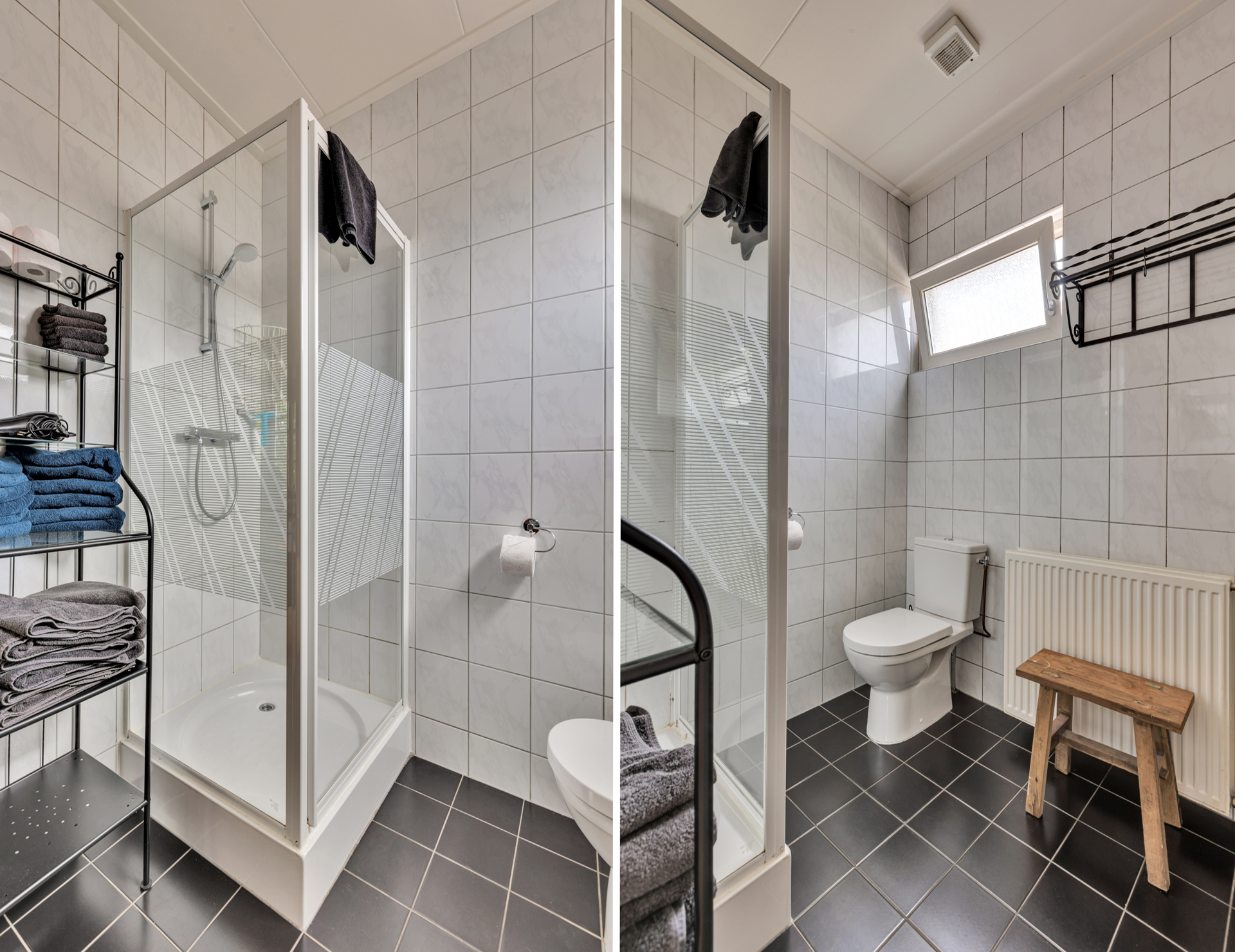 Entree met trapopgang, ruime living, badkamer voorzien van douche, toilet en wastafel. Naast de B&B bevindt zich een grote schuur met aansluiting wasmachine. Grenzend aan de woonkamer en tuin is er nog een aparte kamer, die eventueel als rookruimte kan dienen.