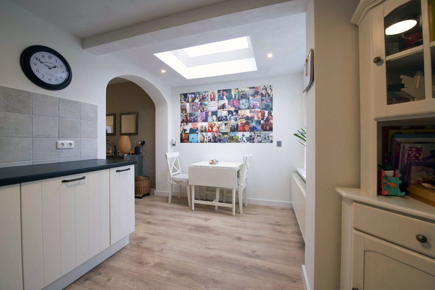 Vanuit de hal met trap naar boven komt u in de gezellige en ruime woonkamer met voorraadkast. Vanuit de woonkamer komt u via een toog in de vernieuwde keuken ( 2019) met lichtkoepel. Deze is voorzien van koelvriezer, oven, inductiekookplaat, afzuigkap en vaatwasser. Vanuit de keuken komt u langs de bijkeuken met aansluiting wasmachine en C.V ketel ( ATAG 2014). In het achterste gedeelte van de benedenverdieping bevindt zich de badkamer ( 2019 ) en voorzien van toilet, wastafel, designradiator en inloopdouche. De gehele beneden verdieping is voorzien van een mooie laminaatvloer en strak gestukt plafond. Alle leidingen en de meterkast zijn in 2019 vervangen.