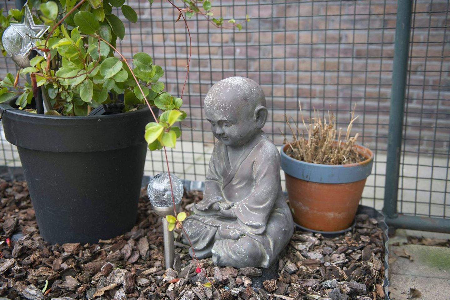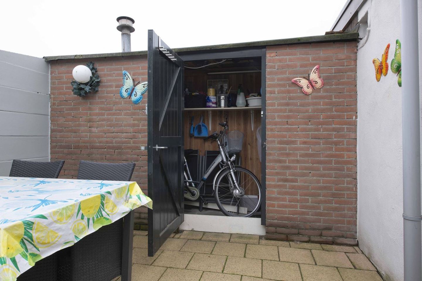 De voortuin is zeer ruim en nagenoeg geheel betegeld. De speelse achtertuin is rustig gelegen, geheel betegeld en voorzien van een berging met elektra. De achtertuin is te bereiken via een eigen overdekte ingang. Hierdoor is de ruimte op de 1e en 2e verdieping extra groot.