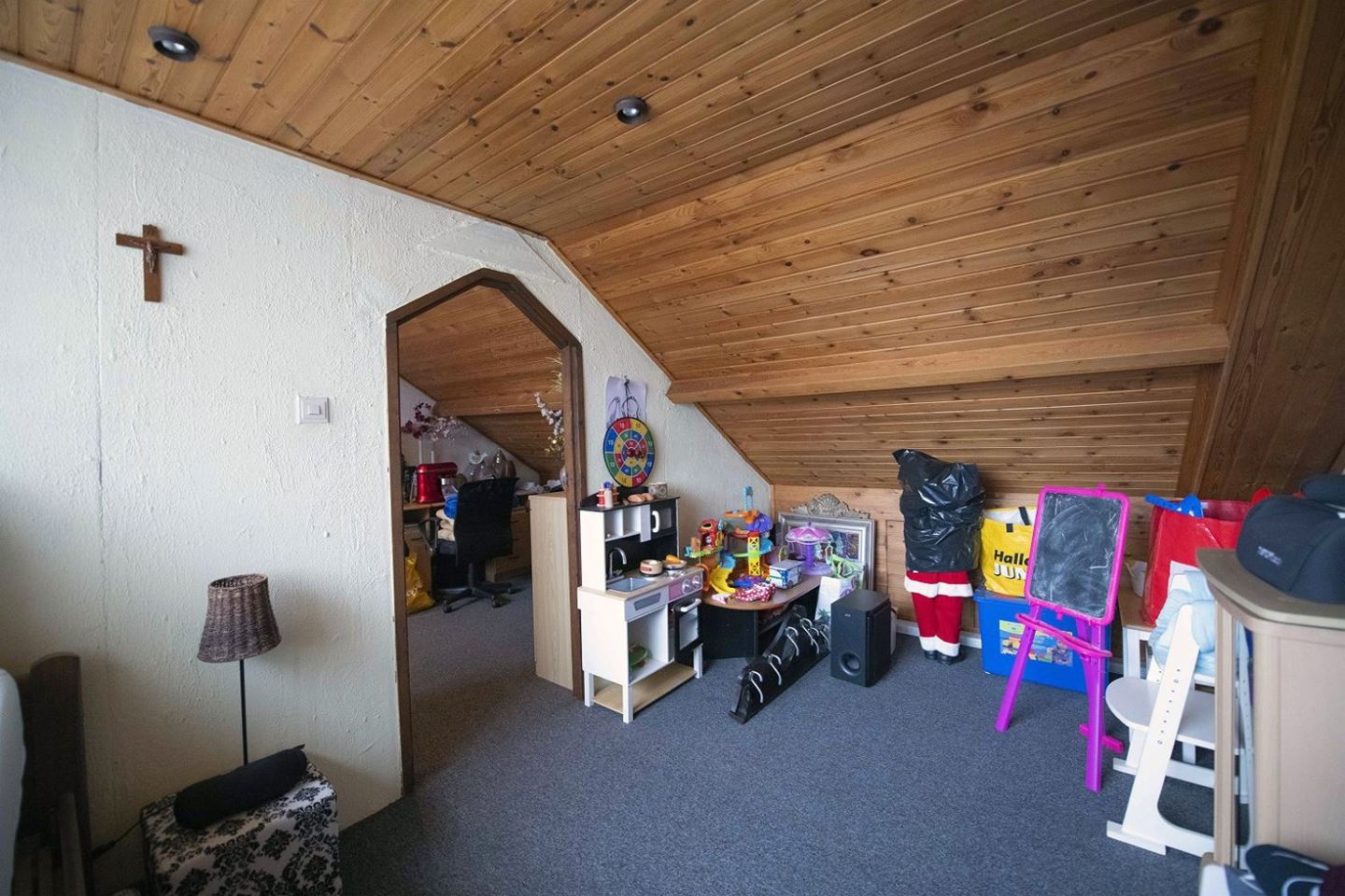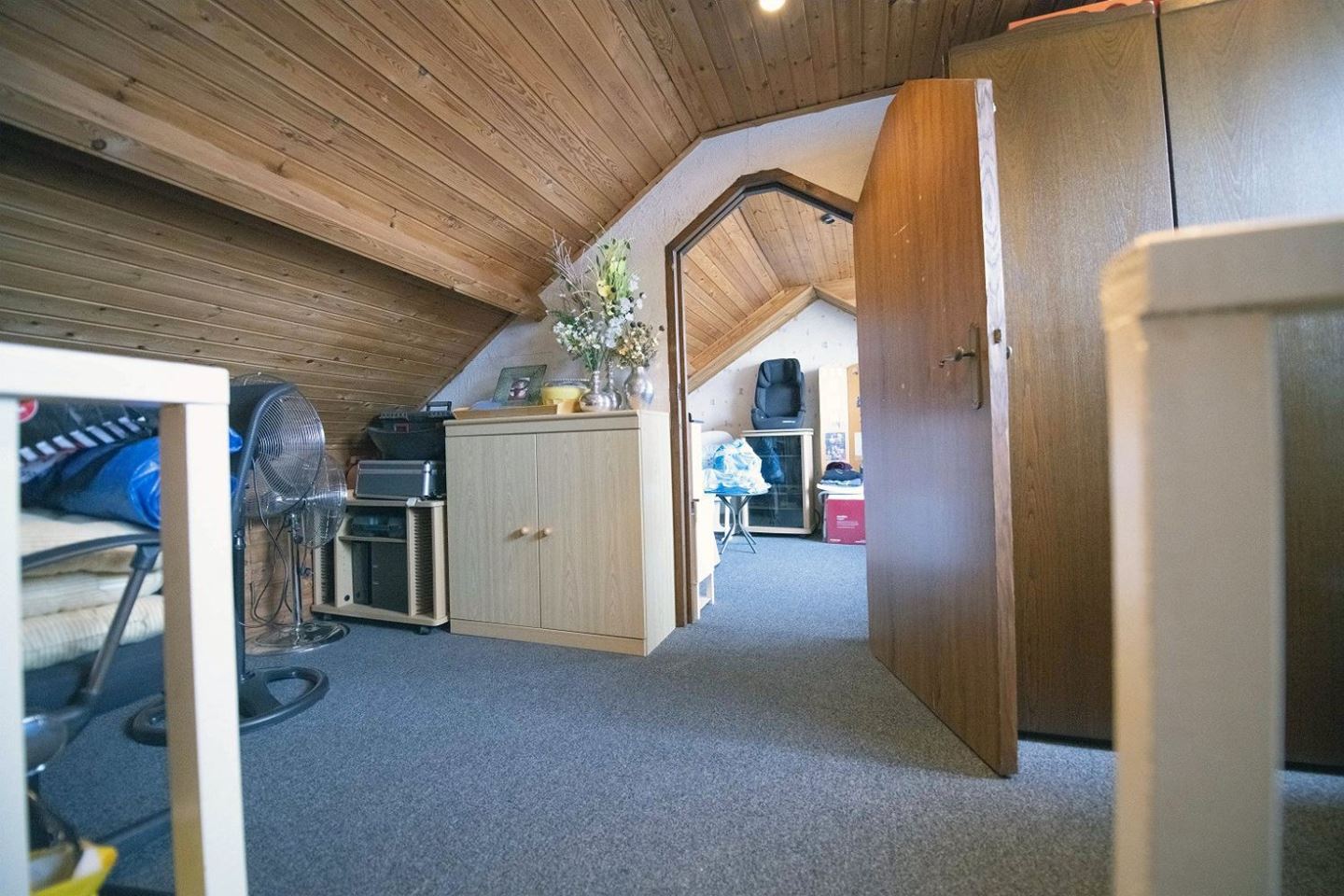 De zolder is geheel afgetimmerd en voorzien van een voorzolder, ruime slaapkamer en veel bergruimte achter de schotten. De dakkapellen zorgen voor veel extra ruimte en lichtinval.