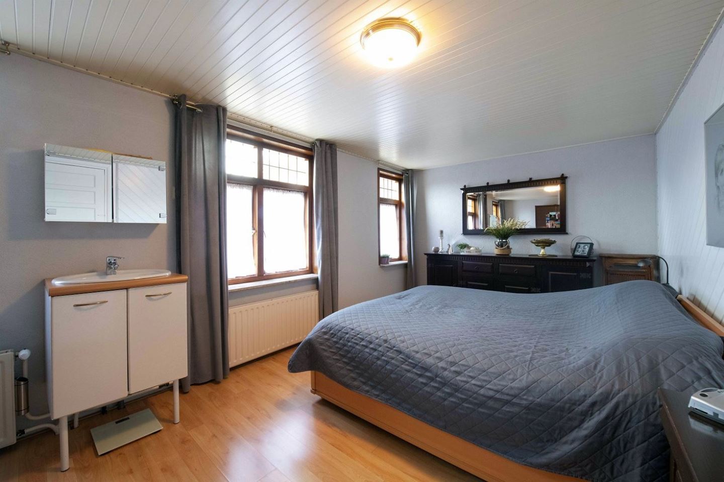 Vanaf de trap komt u op de ruime overloop. Op de 1e verdieping bevonden zich 2 slaapkamers, broyeur toilet en vaste trap naar de zolder. De slaapkamer voor is zelfs 542 x 308 cm en voorzien van een wastafel. De achterste slaapkamer is 340 x 252 cm. De gehele verdieping is voorzien van een laminaatvloer.