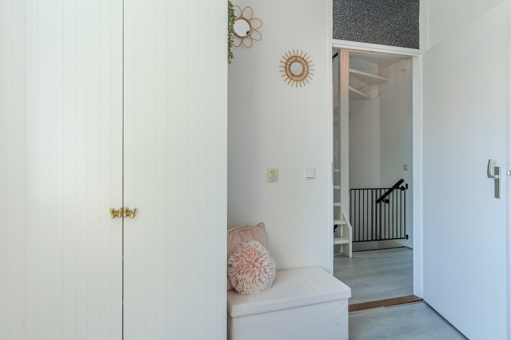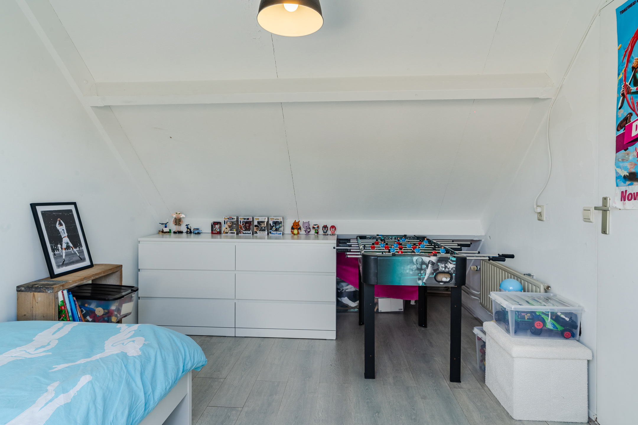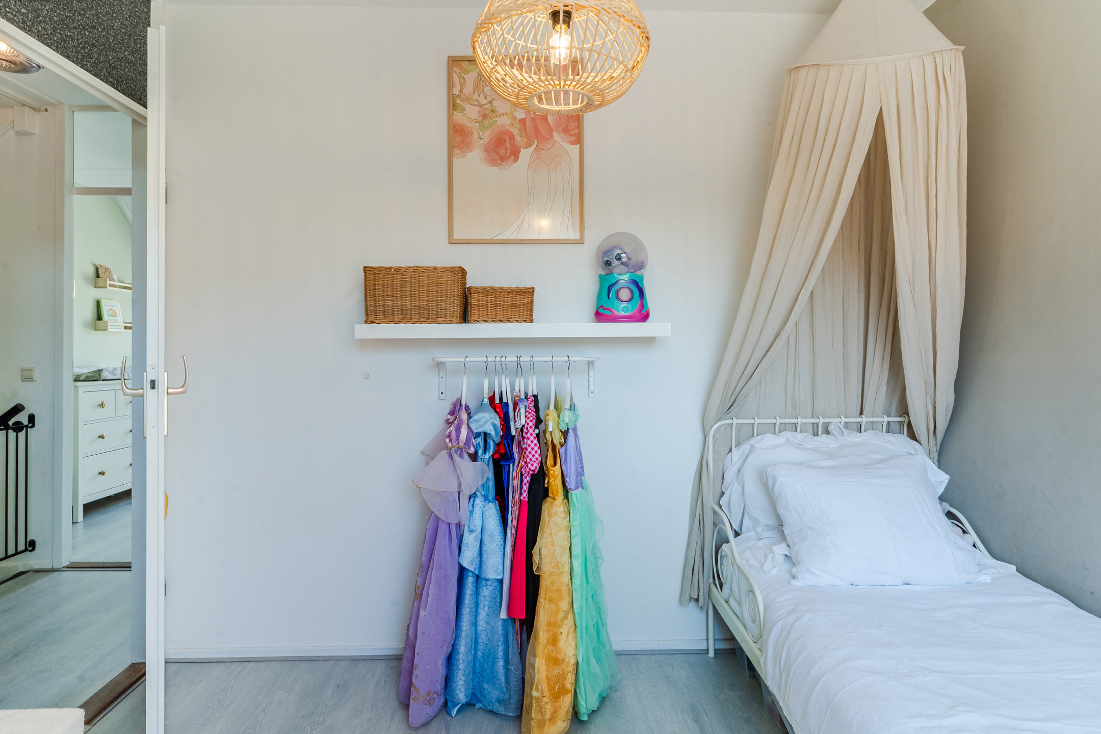 Via een vaste trap kom je op de ruime voorzolder van de tweede verdieping met de aansluiting voor de wasmachine en bergruimte achter de schotten. Daarnaast toegang tot een royale zolderkamer met velux dakraam. Ideale vierde slaapkamer voor pubers of als thuiswerkplek.