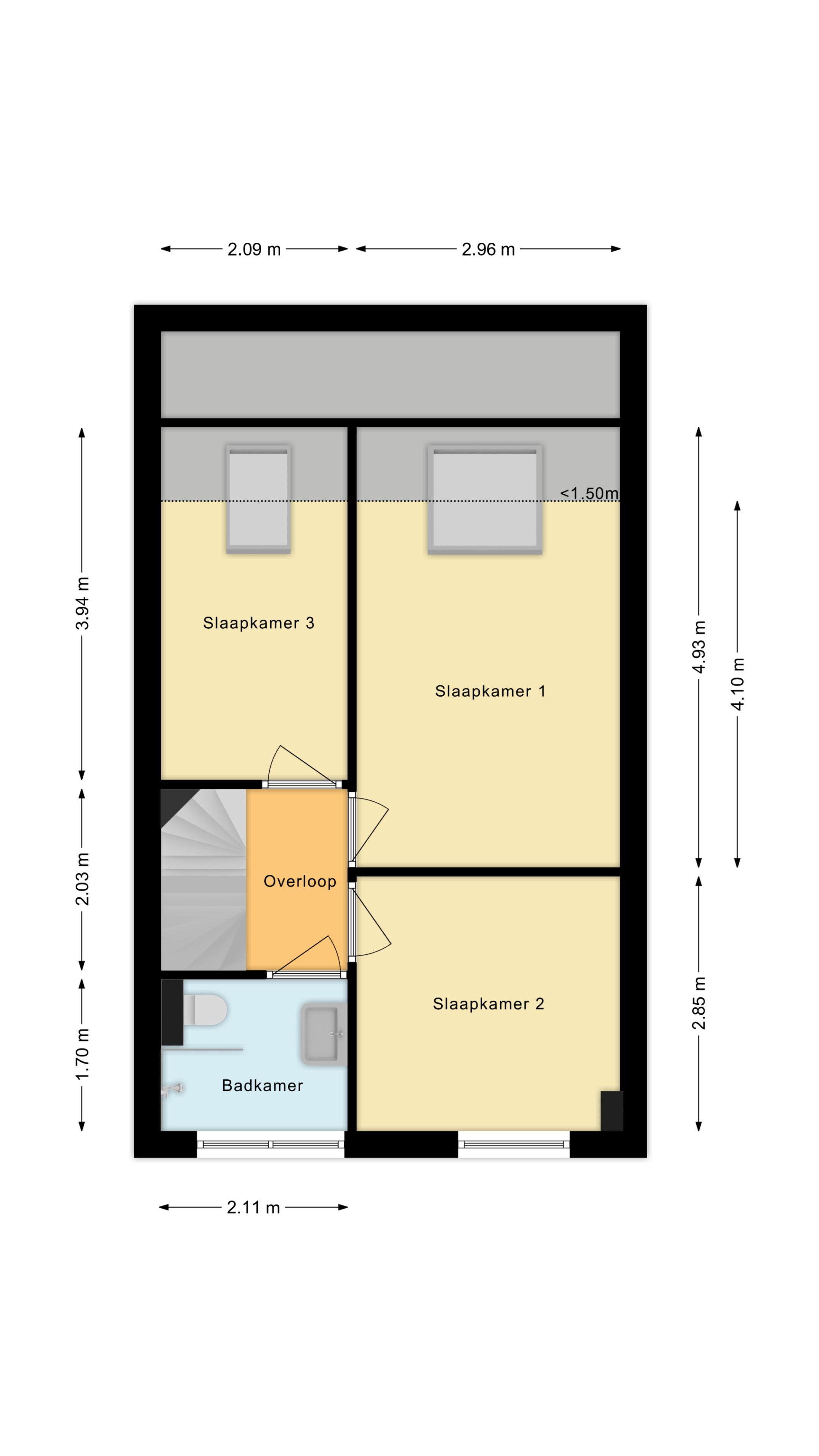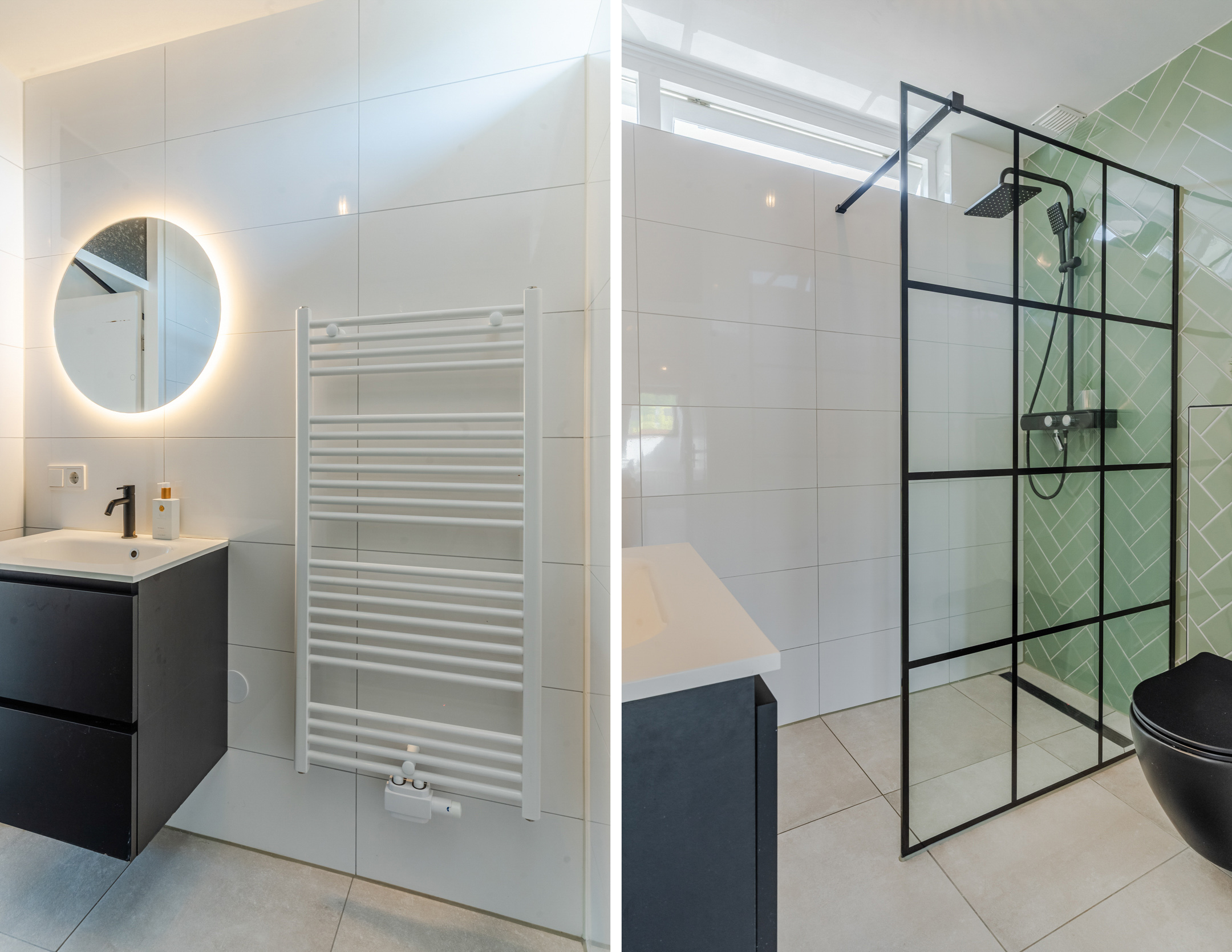 Op de eerste verdieping tref je een overloop met 3 slaapkamers, waarvan 2 met velux dakraam. Tevens een luxe badkamer met douche, zwevend toilet, wastafelmeubel en design radiator.