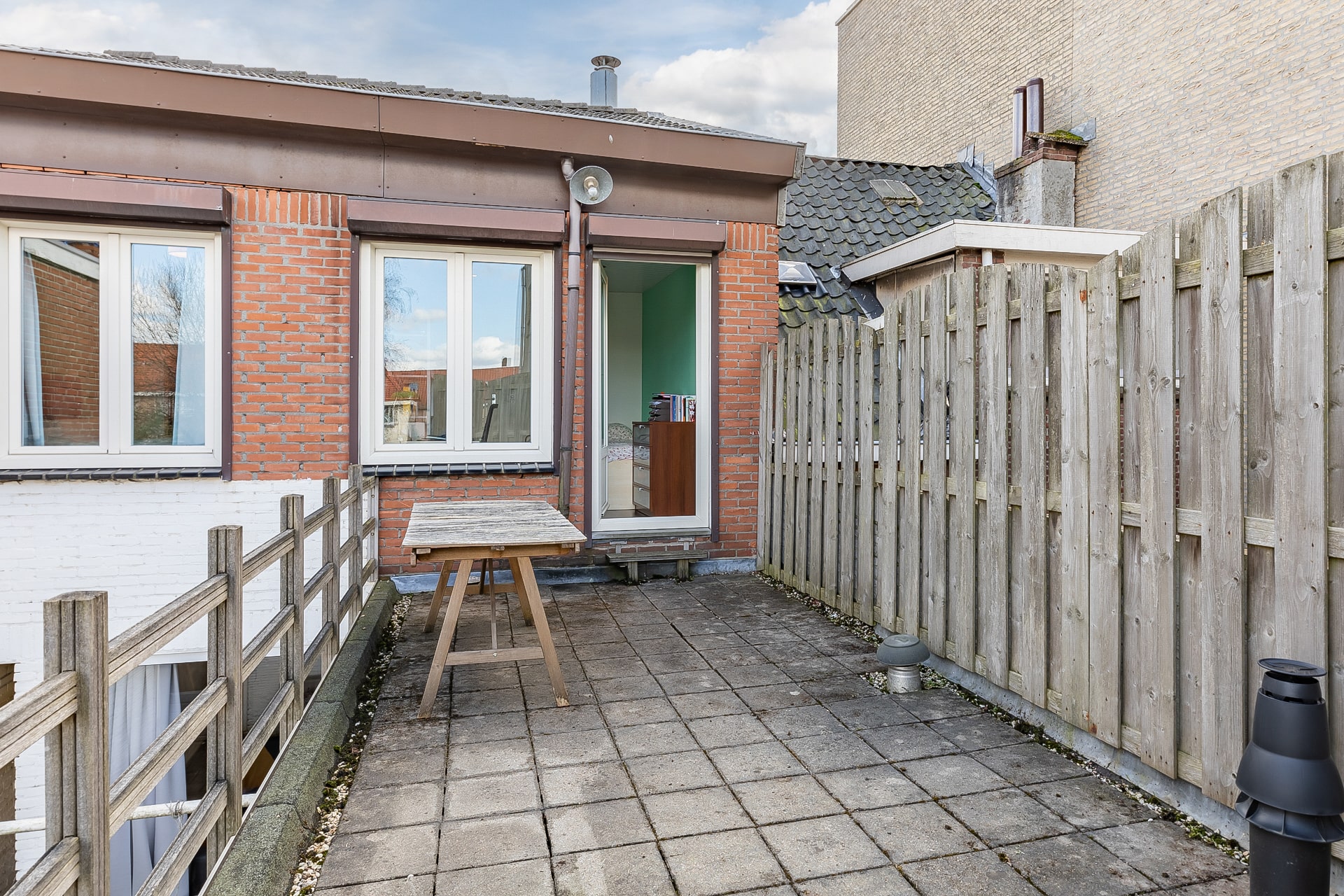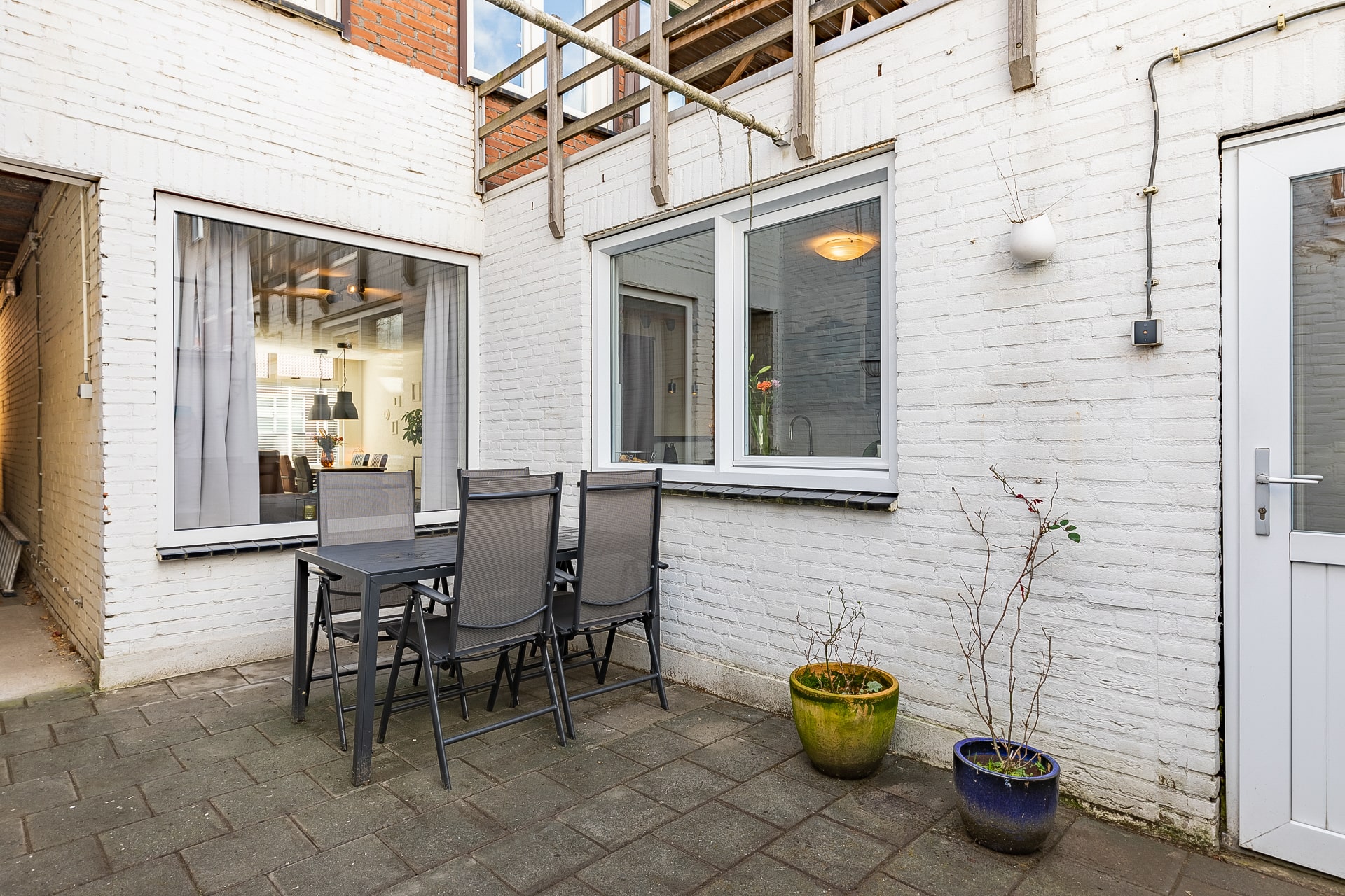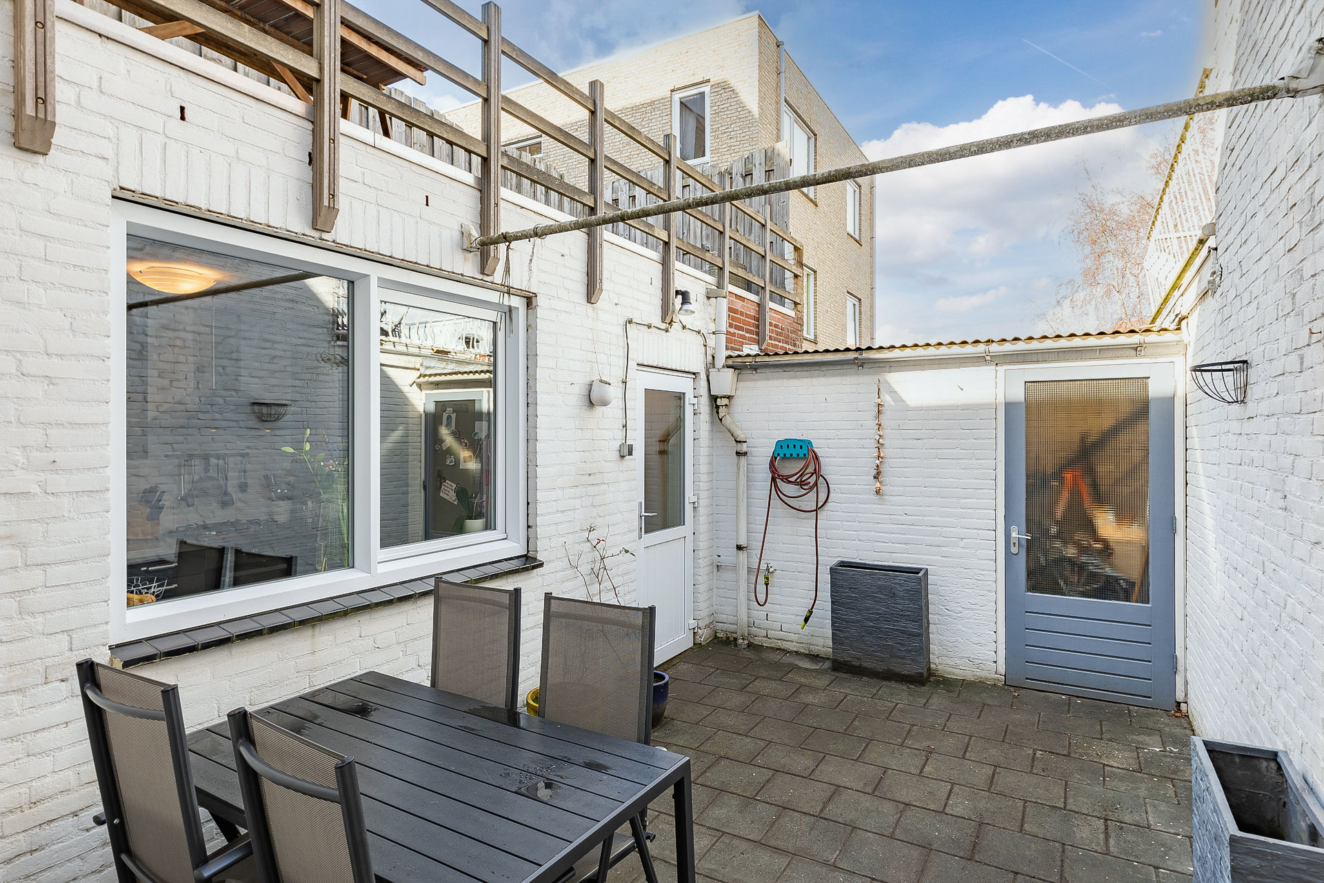 Via een naar buiten openslaande deur heb je vanuit de bijkeuken toegang tot de tuin die bij deze woning hoort. Dit is een onderhoudsvriendelijke tuin die voornamelijk uit betegeling bestaat. Aan de achterkant van de tuin vind je een stenen berging die goed is voor dik zeven vierkante meter aan opbergruimte. Verder loopt vanuit de tuin een doorgang langs het huis. Via deze doorgang en een afsluitbare poort kom je weer op de Groeseindstraat uit.
