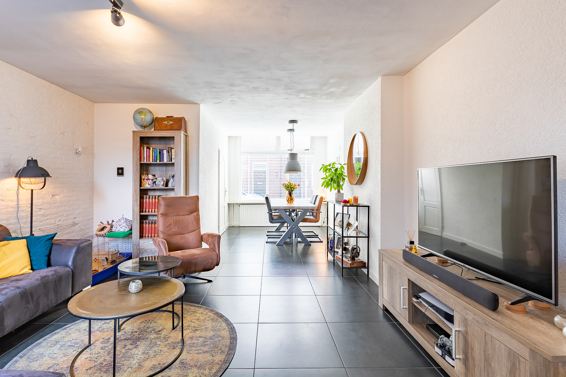 De entree biedt ook toegang tot de sfeervolle woonkamer die dit huis rijk is. Deze woonkamer is ruimschoots groot genoeg om zowel een gezellig zitgedeelte te creëren als een eettafel met stoelen te plaatsen. Van twee kanten zorgen grote raampartijen voor veel lichtinval. De straatkant is op het zonnige zuidoosten gericht. In het volledige woongedeelte vind je verder fraaie betegeling op de vloer. Dit is een ideale vloersoort voor het vloerverwarmingssysteem, waar je over deze volledige woonlaag van profiteert. Tenslotte zijn de muren in rustgevende kleuren afgewerkt.