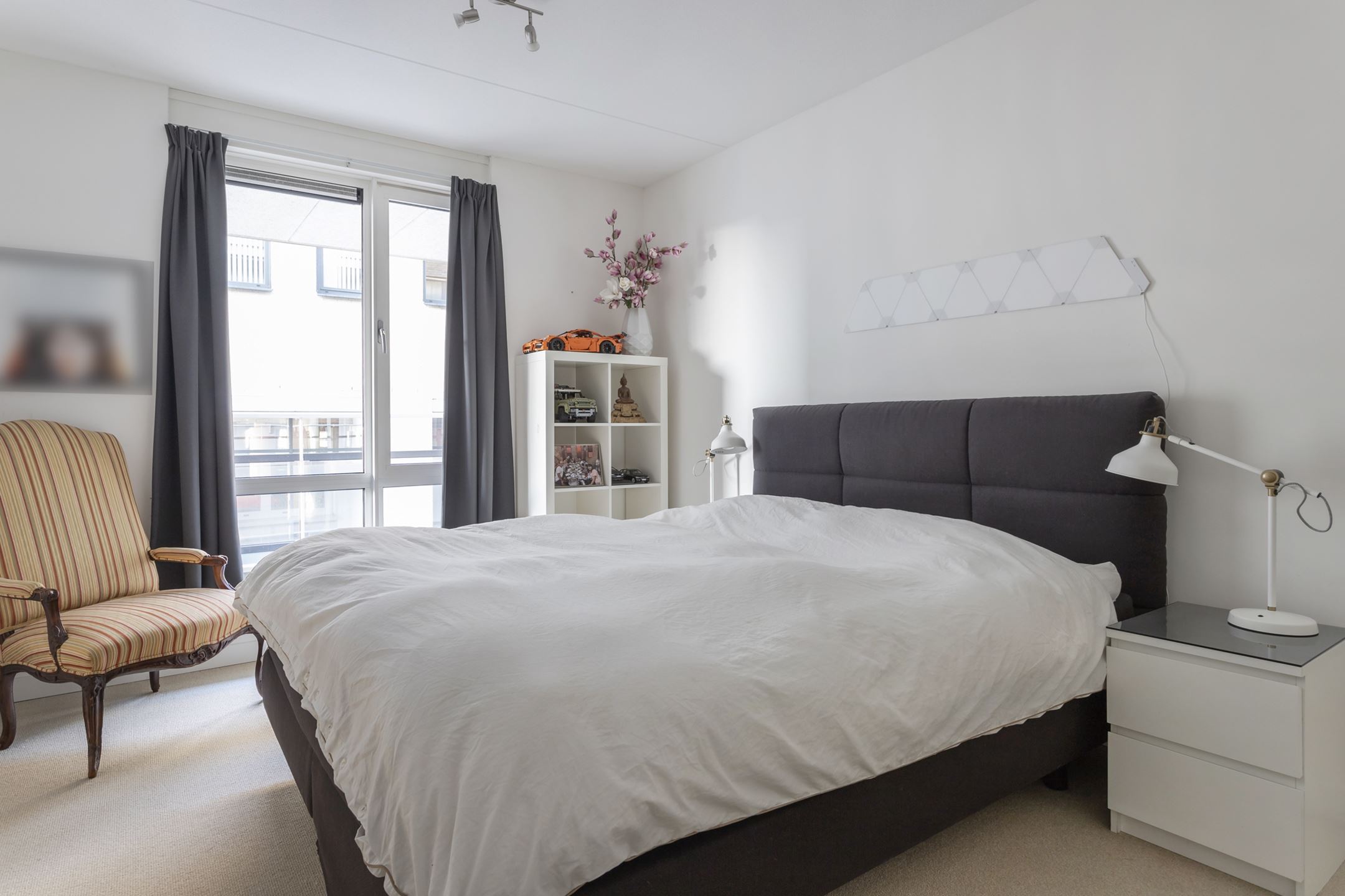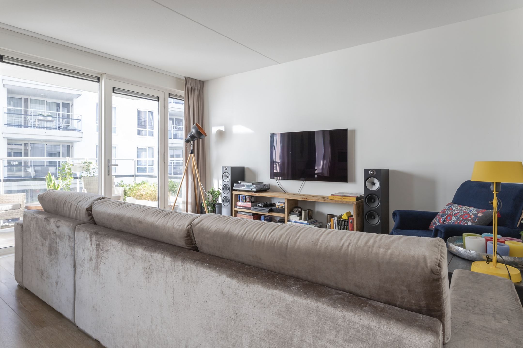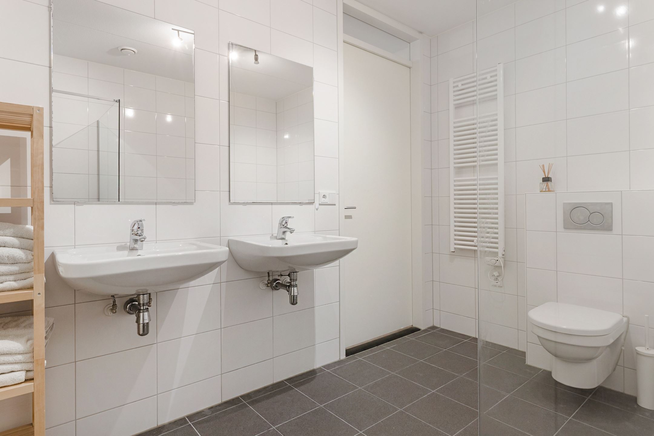 Op de begane grond bevindt zich de centrale entree hal met videofoon, bellentableau, brievenbussen en toegang tot de lift en het trappenhuis. 2e verdieping: Bovengekomen in de gezamenlijke hal die toegang geeft tot enkele appartementswoningen verkrijg je via een korte overdekte galerij voorzien van doorzichtige balustrade toegang tot de appartementswoning. De royale sfeervolle entree is afgewerkt met een pvc vloer, licht gestucte wanden en plafond. De hal met garderobe en meterkast geeft toegang tot twee net afgewerkte slaapvertrekken, toilet, badkamer, bergruimte en de woonkamer met open keuken en balkon. De luxe keuken is van Siematic, voorzien van een inductie kookplaat, combi oven, koelkast, vaatwasser, afzuigkap en granieten blad. Het appartement heeft twee slaapkamers, waarvan de hoofdslaapkamer toegang geeft tot de badkamer. Deze geheel betegelde badkamer is voorzien van een ligbad, inloopdouche, zwevend verhoogd toilet, 2 wastafels met spiegelwand en een designradiator. De toiletruimte is voorzien van zwevend toilet, urinoir en fonteintje. De bergruimte annex technische ruimte is voorzien van pvc vloer, opstelling combiketel (Intergas hre; 2015), unit mechanische ventilatie, stofzuigersysteem (Electrolux Beam, central vacuum system) en aansluiting voor de wasmachine.