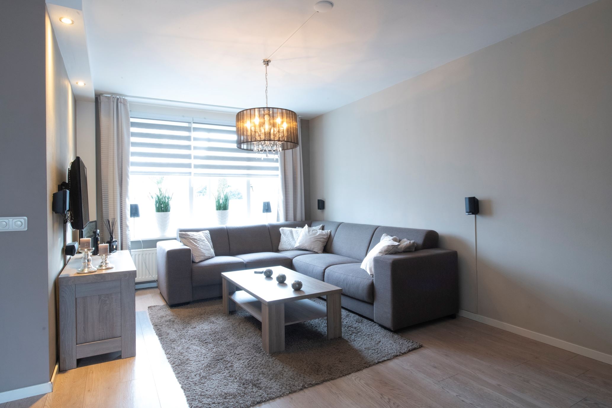 Via de hal met toilet bereikt u de sfeervolle Z-vormige living voorzien van een nette laminaatvloer en opdekdeuren. De laminaatvloer is overal hetzelfde in de gehele woning en netjes doorgelegd, dus geen gebruik gemaakt van dorpels. De woonkamer is voorzien van inbouwspots en dimmers. Onder de trap bevindt zich de meterkast die ook dient als berging.