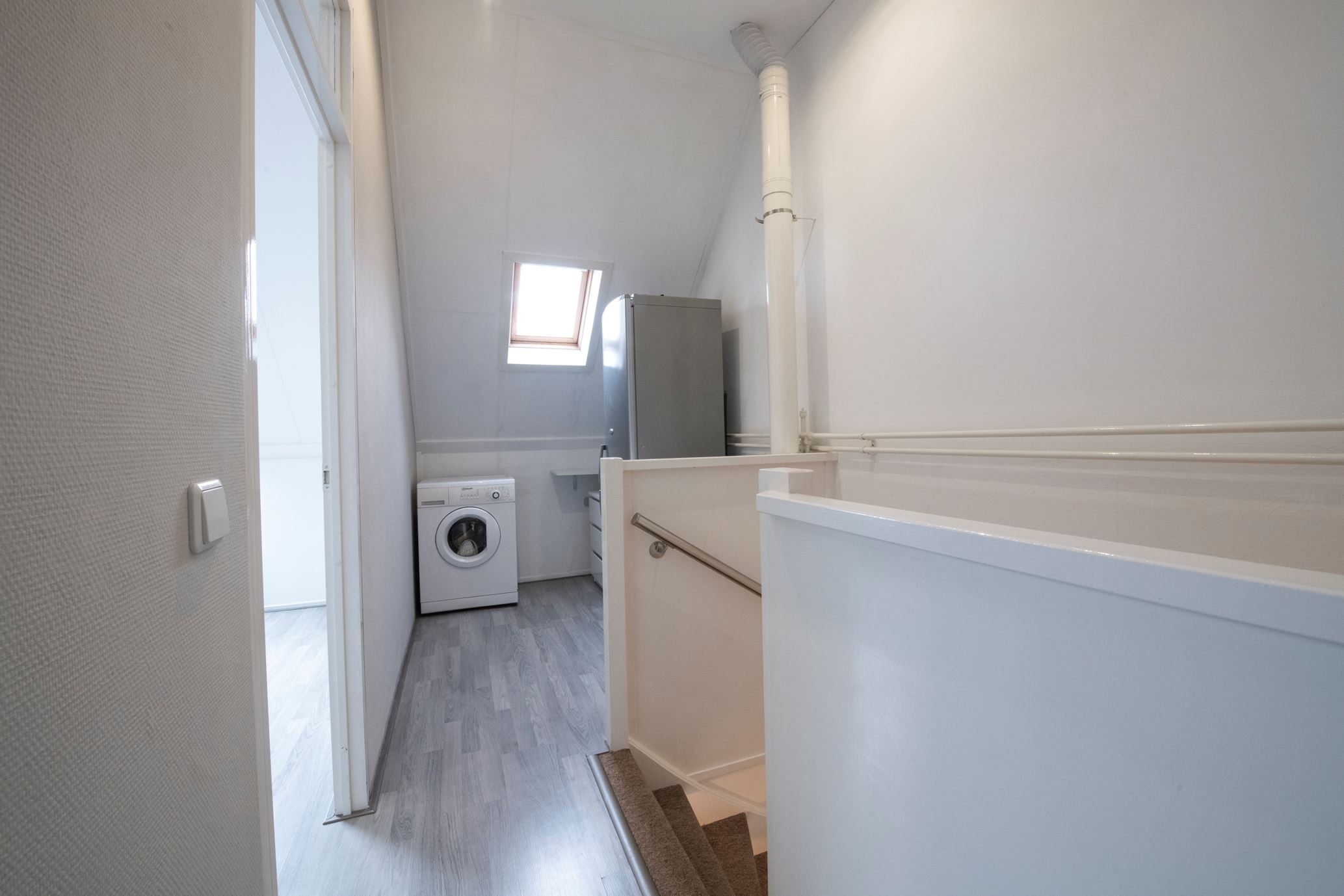Via de vaste trap bereikt u de zeer ruime voorzolder met dakraam, laminaatvloer en aansluitpunten ten behoeve van de wasmachine en/of wasdroger.