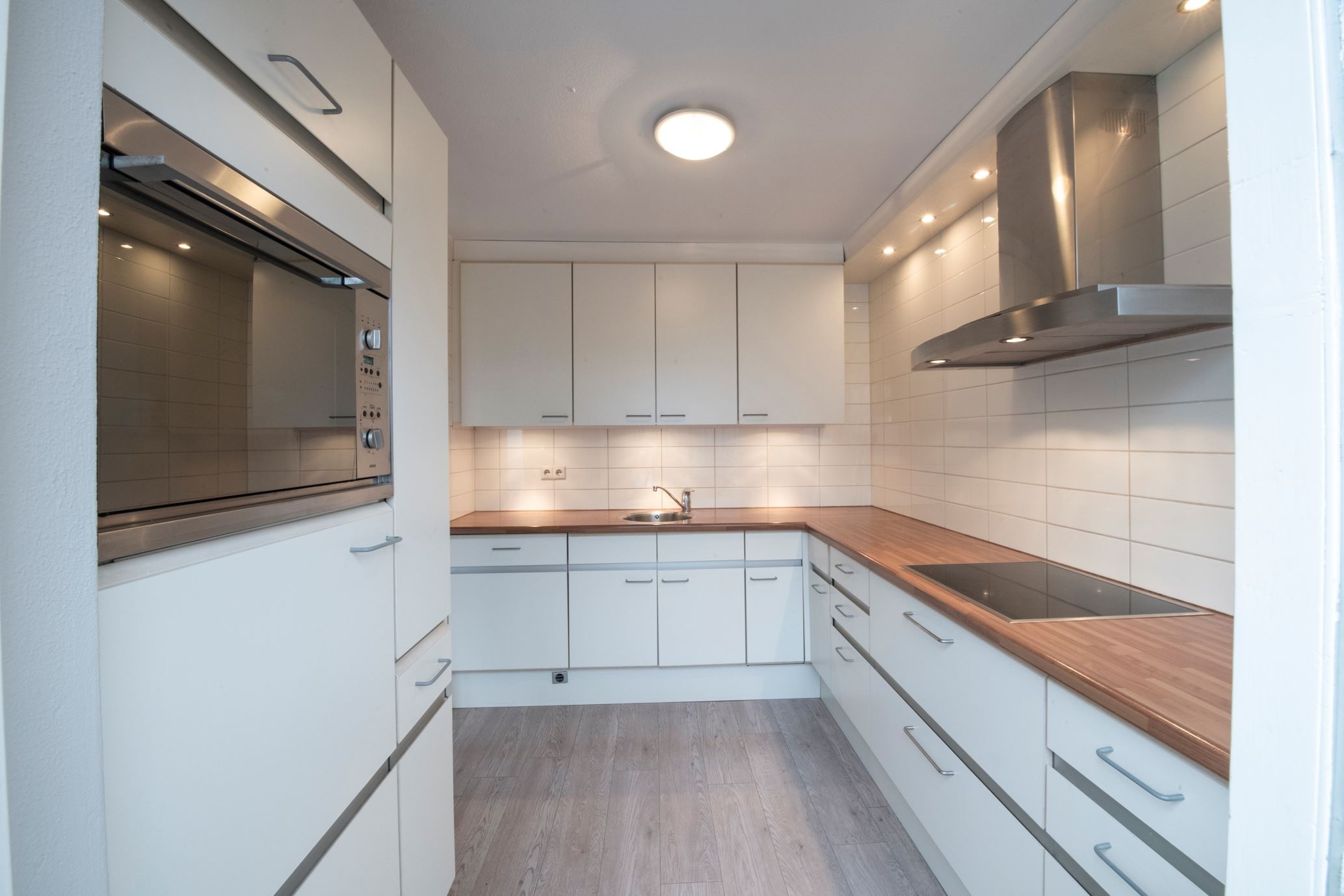 Aan de achterzijde van de woning bevindt zich de half open keuken. De ruime keuken in L-vorm en apart gedeelte voor de hoge kasten is voorzien van een keramische kookplaat, RVS afzuigkap, spoelbak, combimagnetron, koelkast, vaatwasmachine, apothekerskast en carrouselkast. Vanuit de keuken en huiskamer heeft u toegang tot de achtertuin. Plafond en wanden zijn in 2020 geschilderd. Voorkant woning is in 2019 geschilderd, achterkant in 2018.