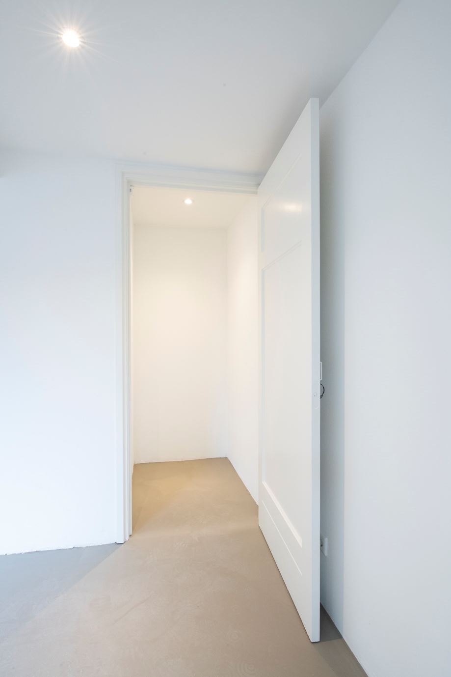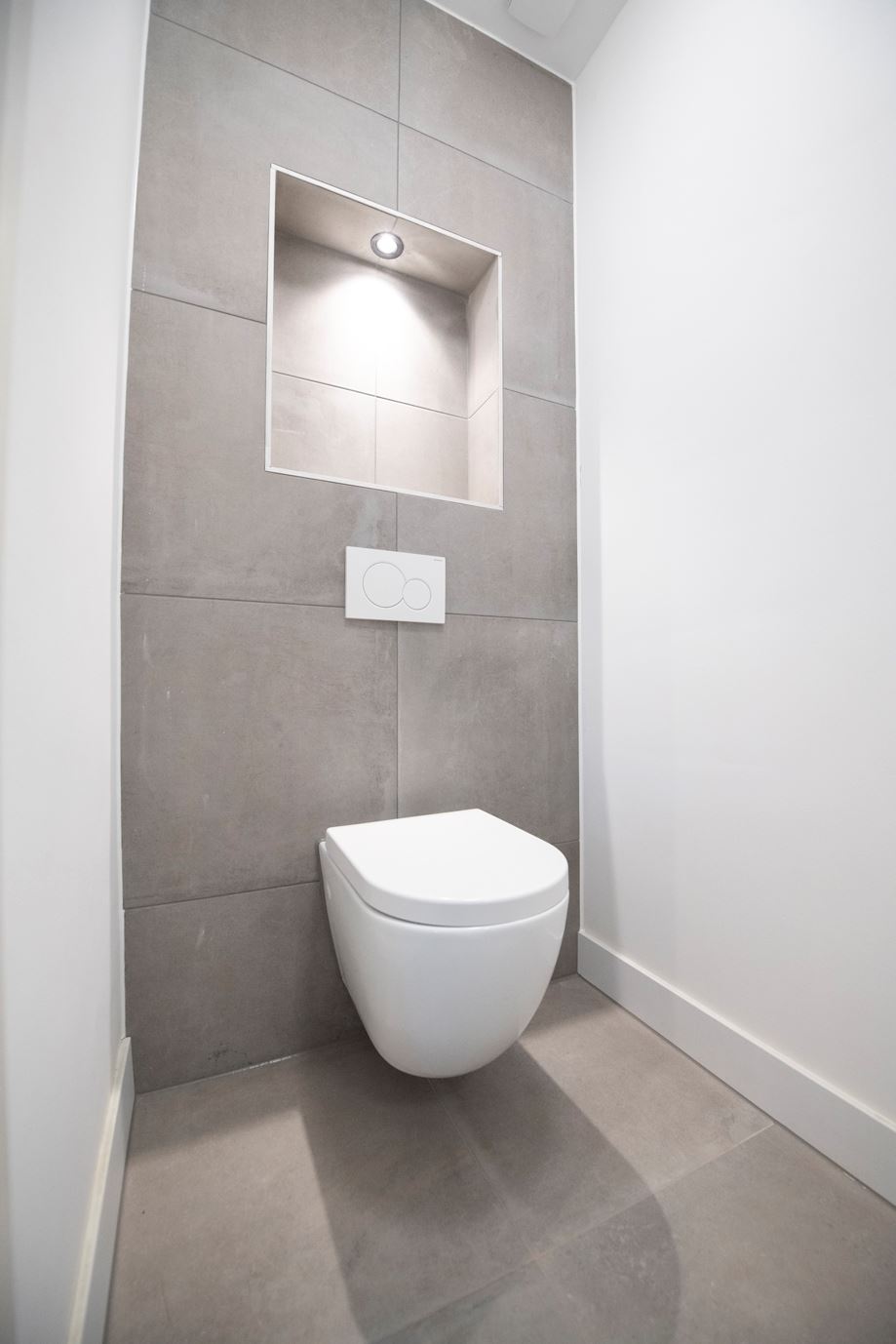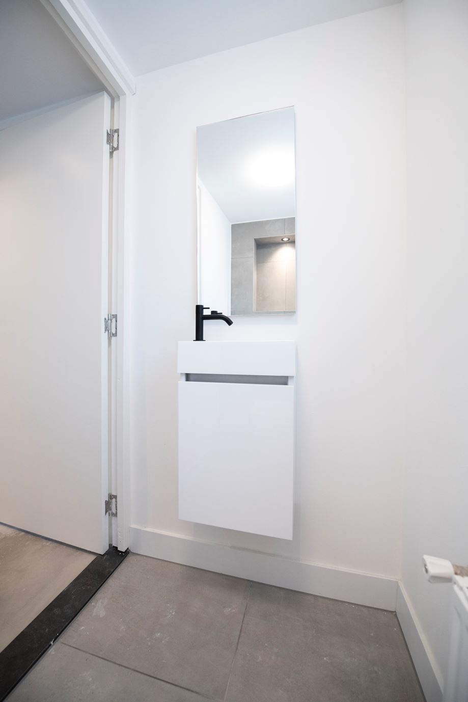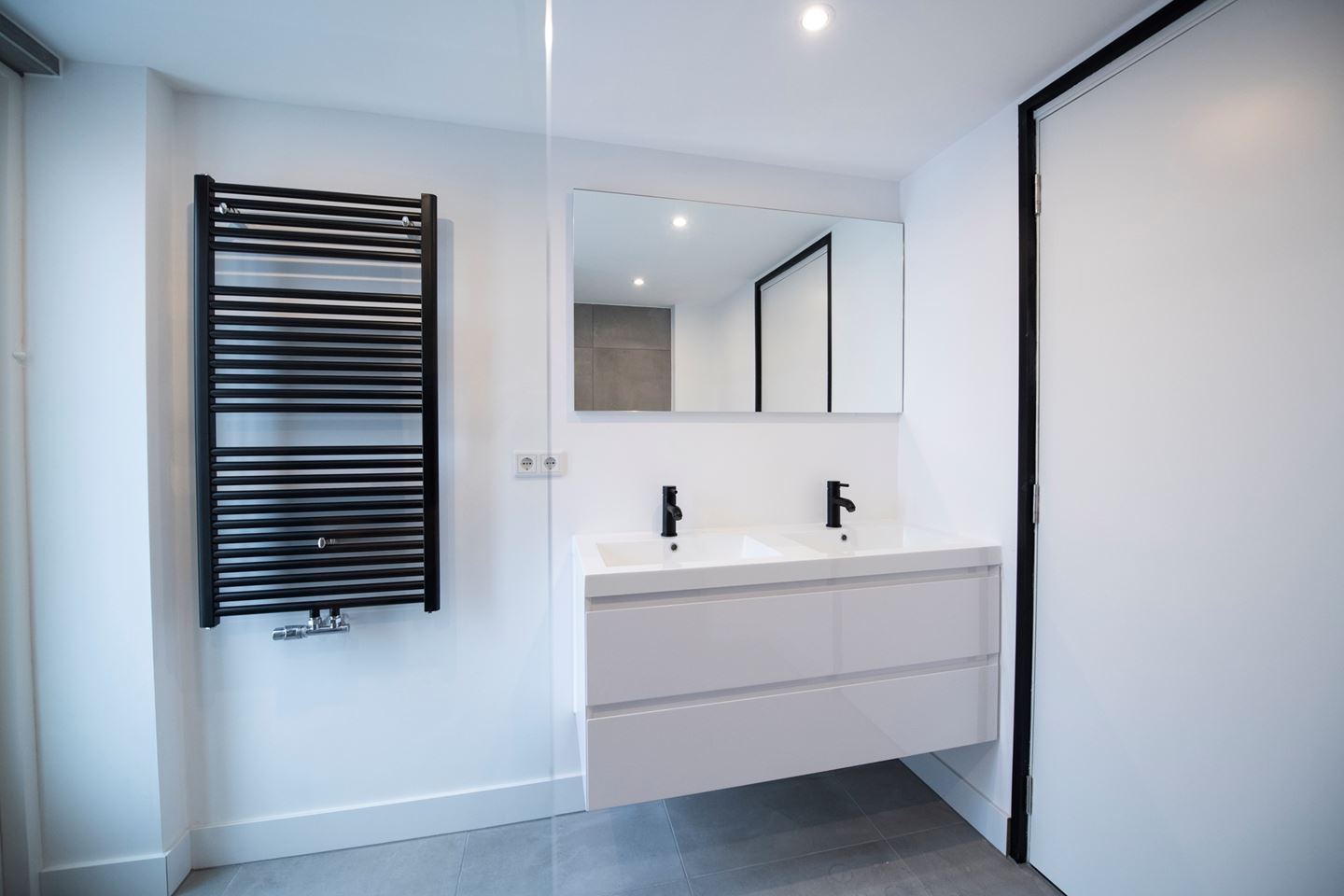 Middels de trap in de hal komt u op de overloop van de eerste verdieping. Er zijn twee hele ruime slaapkamers. Beiden hebben een ingebouwde kast en de gehele verdieping is voorzien van inbouwspots in het plafond. De nieuwe badkamer aan de achterzijde is voorzien van een grote inloop douche met glazen wanden, radiator en dubbele vaste wastafel met meubel. Aan de voorzijde is een geheel nieuw zwevend toilet met radiator, fontein en mengkraan.