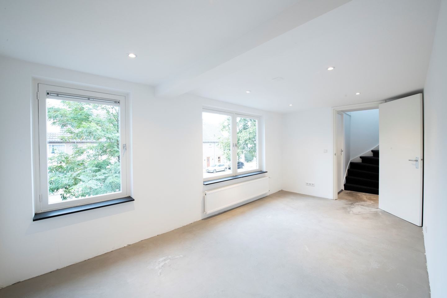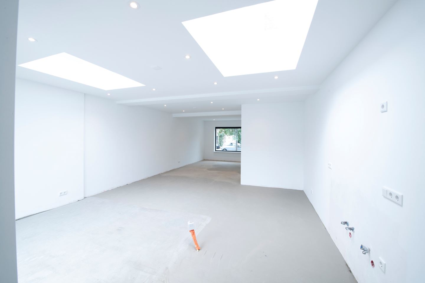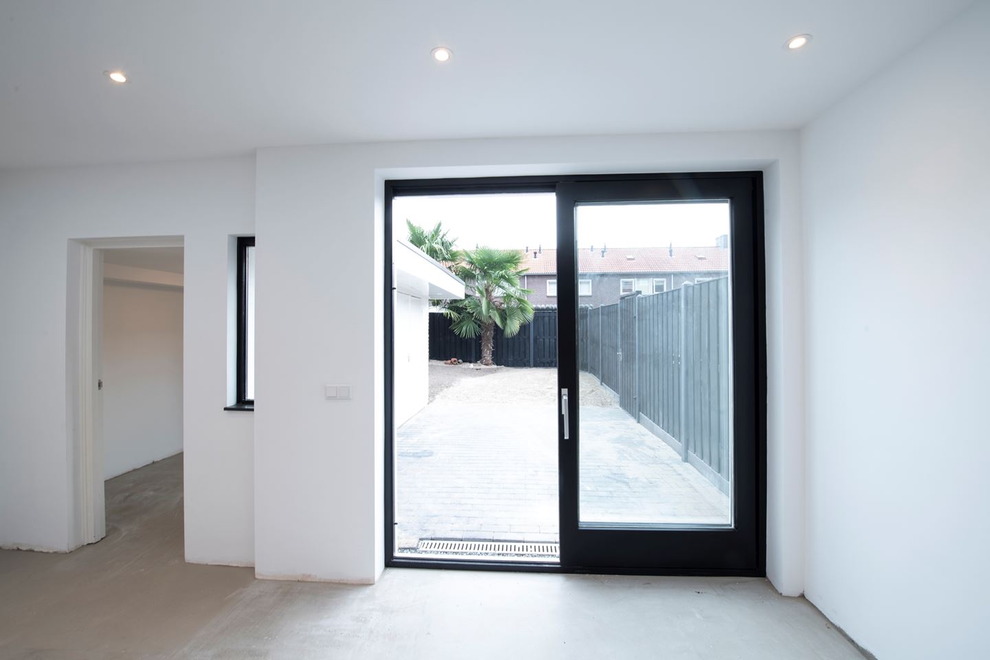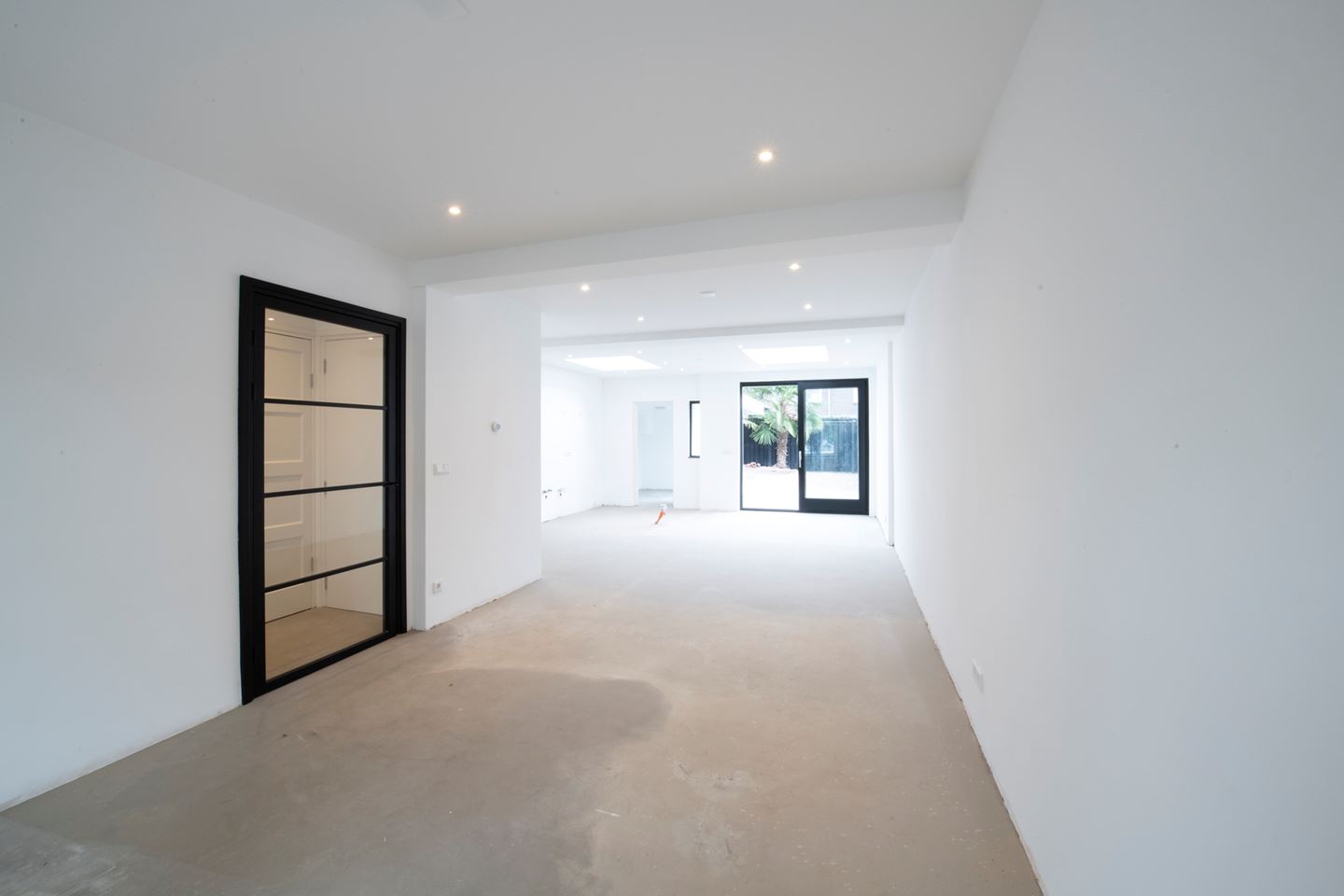 U komt binnen in de hal. Aan de linkerzijde is de nieuw beklede trap naar boven. Onder de trap is de kelderkast met meterkast, waar tevens ook nog bergruimte aanwezig is. Het toilet is ook geheel nieuw met zwevend toilet, fontein en mengkraan. De deur naar de woonkamer is aan de rechterzijde. De woonkamer heeft aan de voorzijde is een grote raampartij en aan de achterkant 2 grote lichtkoepels. De woning is prachtig uitgebouwd, waardoor u nu een open keuken met kookeiland kunt creëren. De keuken is nog geheel naar eigen keuze te bepalen. In de stelpost is opgenomen een blok van 360 cm met 3 hoge kasten voorzien van koel/vriezer en combimagnetron en het spoelgedeelte met spoelbak, mengkraan en vaatwasser. Het kookeiland is voorzien van een inductie kookplaat en afzuigkap. De montage van de keuken is ook inbegrepen. Achter de keuken is een grote bijkeuken. De gehele benedenverdieping is voorzien van vloerverwarming en inbouwspots in het plafond. Via de schuifpui van de woonkamer of de deur van de bijkeuken komt u in de achtertuin met een grootte van 44,62m². Direct achter de woning is een groot betegeld terras. Aan de achterkant van de tuin bevinden zich 2 serieuze palmbomen. De gehele tuin is omheind met een nieuwe houten schutting met poort. Achter de bijkeuken in de tuin is de berging waar zich ook de HR combiketel bevindt. Aan de zijkant van de tuin is de achterom. Deze is ook te bereiken via een af te sluiten poort naast het huis.