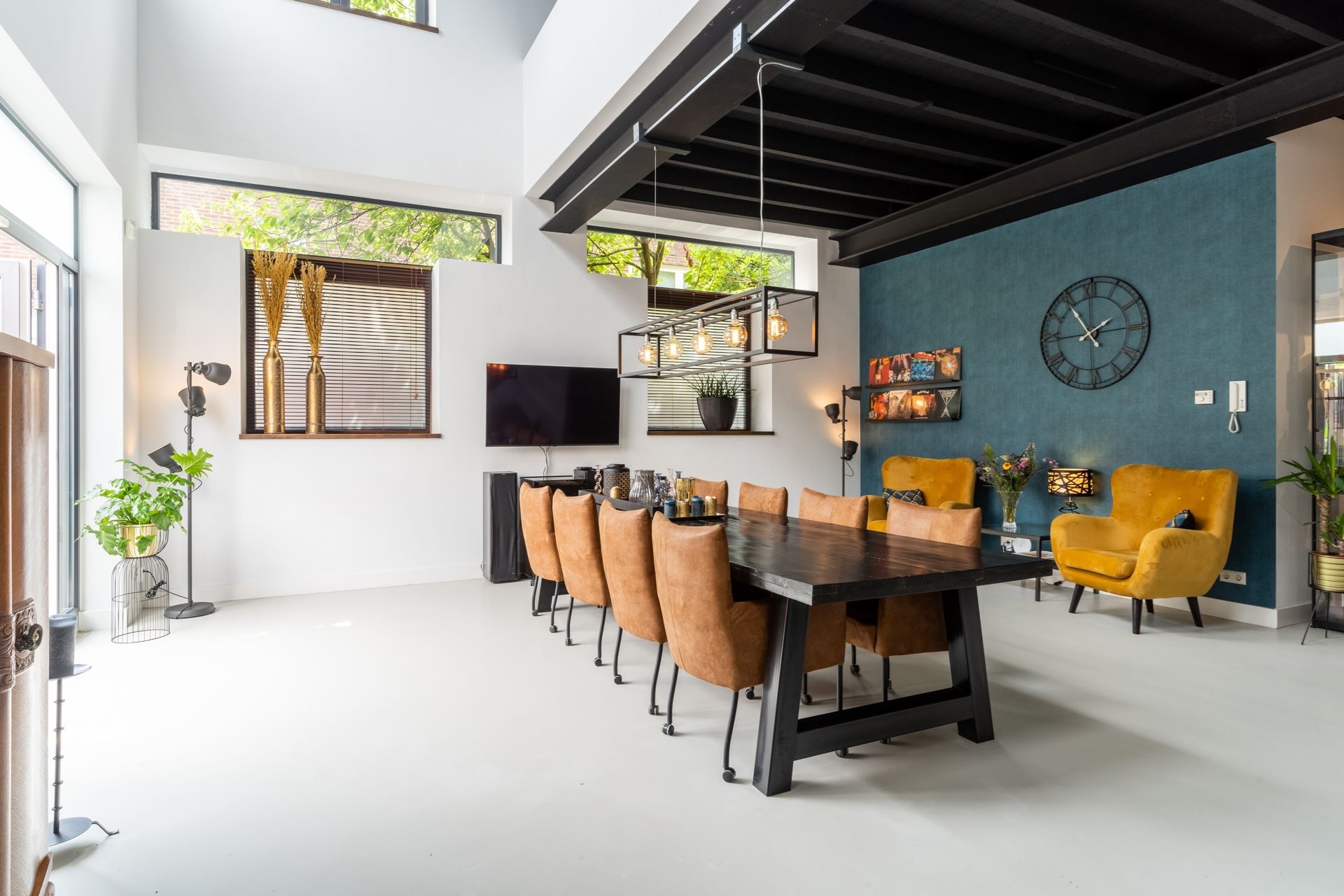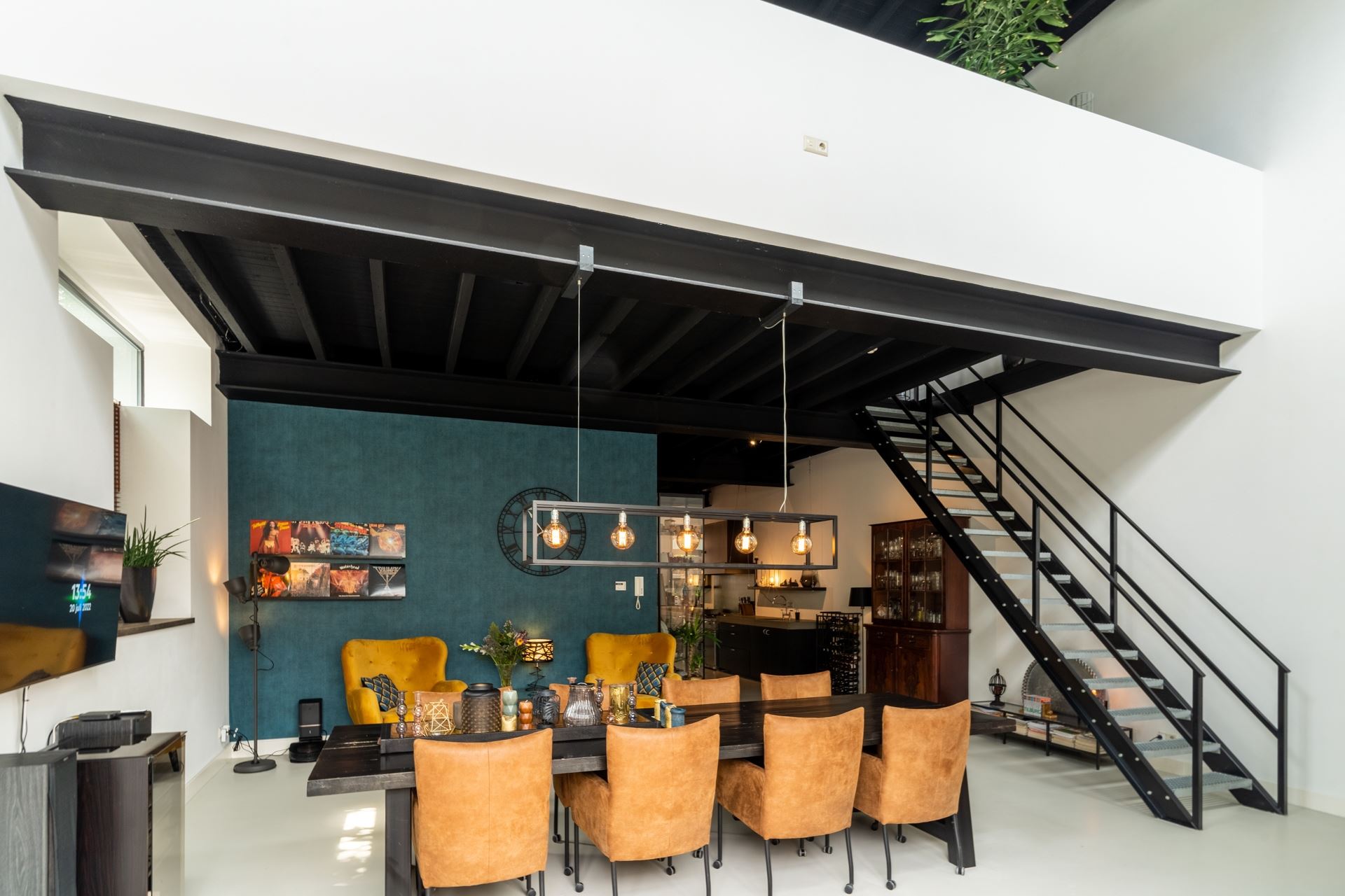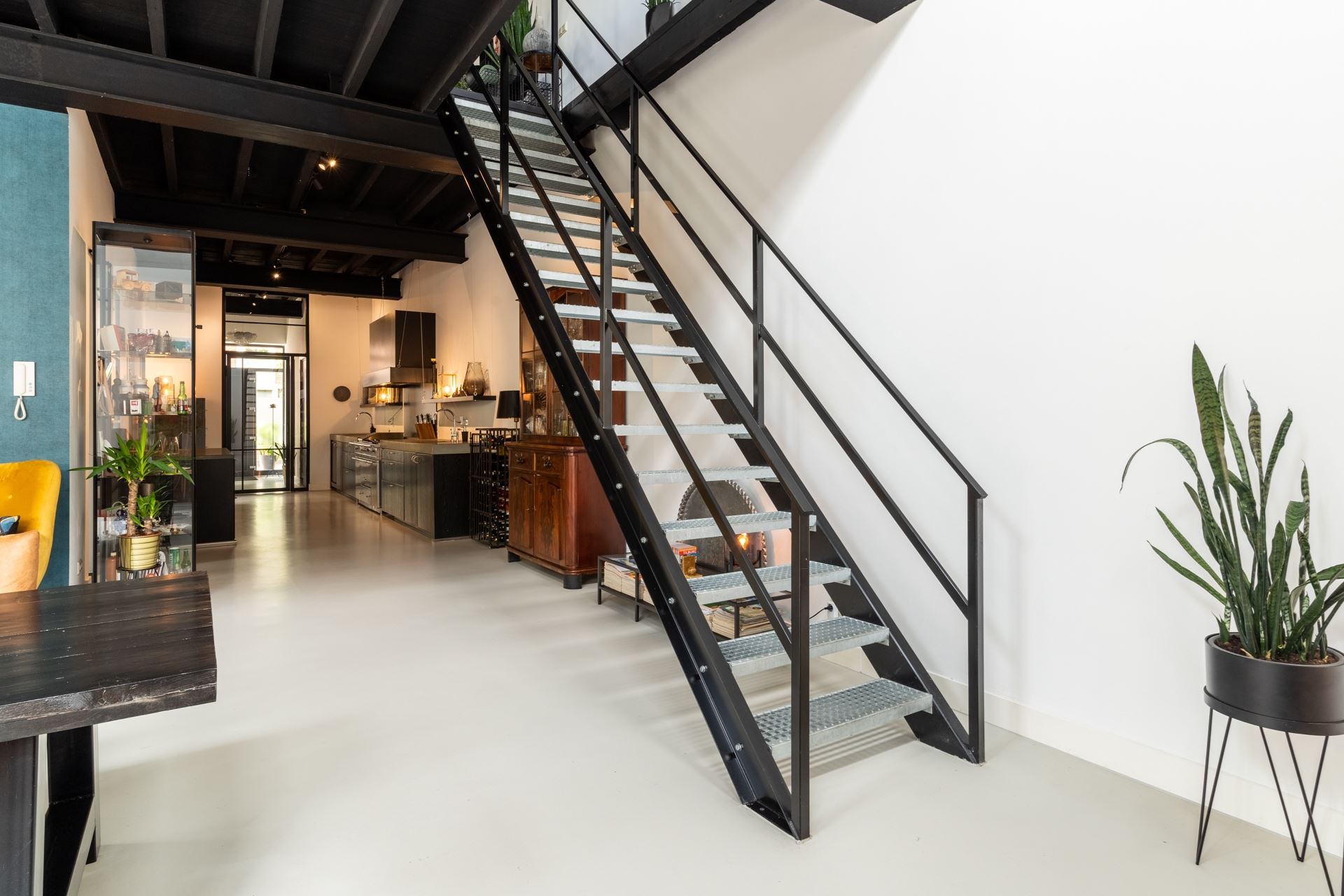 Het heerlijke eetgedeelte met robuuste stalen trap en openslaande tuindeuren naar de achtergelegen gezellige plaats. Vanuit de keuken de doorgang naar de volledig geïsoleerde garage, wasruimte voorzien van ketelopstelling, separate boiler en complete meterkast (twaalf groepen en drie aardlekschakelaars). Ideaal op de begane grond is de ruime slaapkamer met douche en wastafelmeubel. Natuurlijk is de begane grond voorzien van vloerverwarming en de betonvloer maakt het geheel helemaal af.