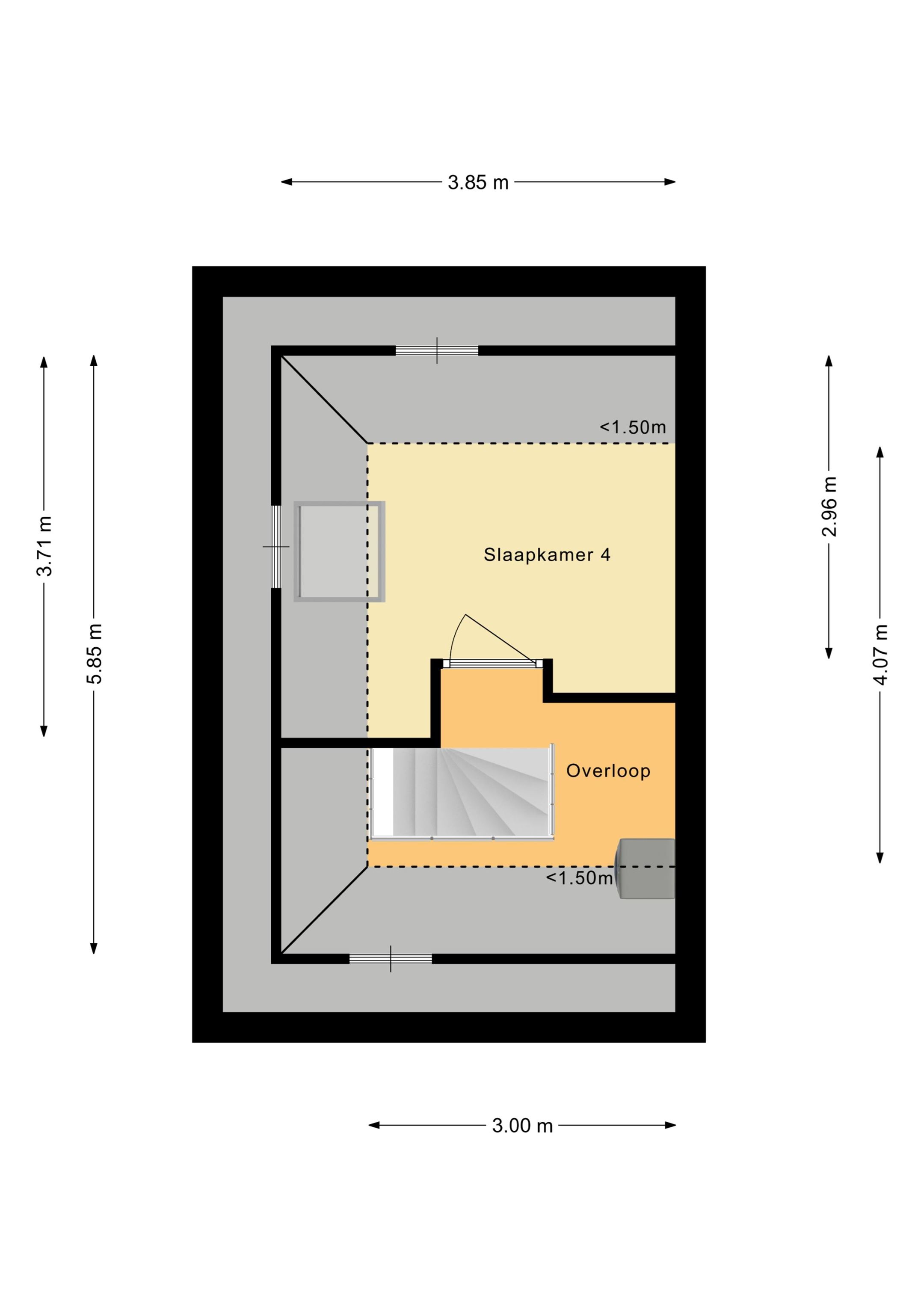 Slaapkamer 2: ca. 3.92 x 2.03 m.