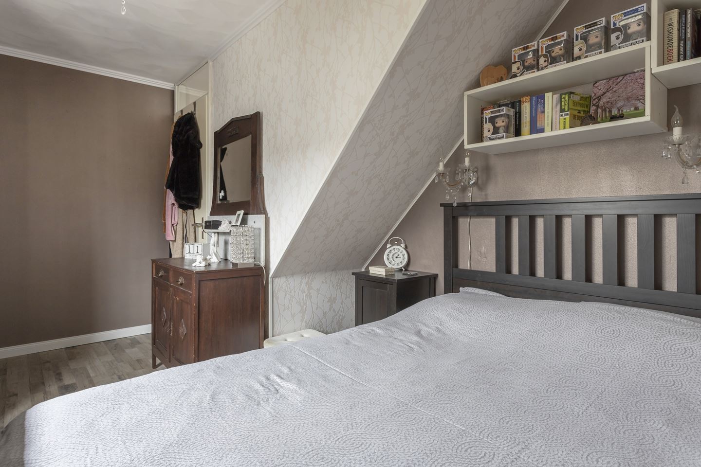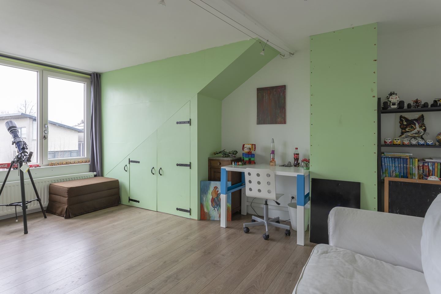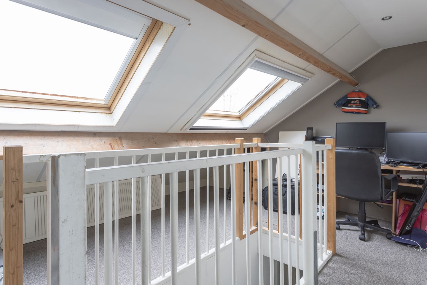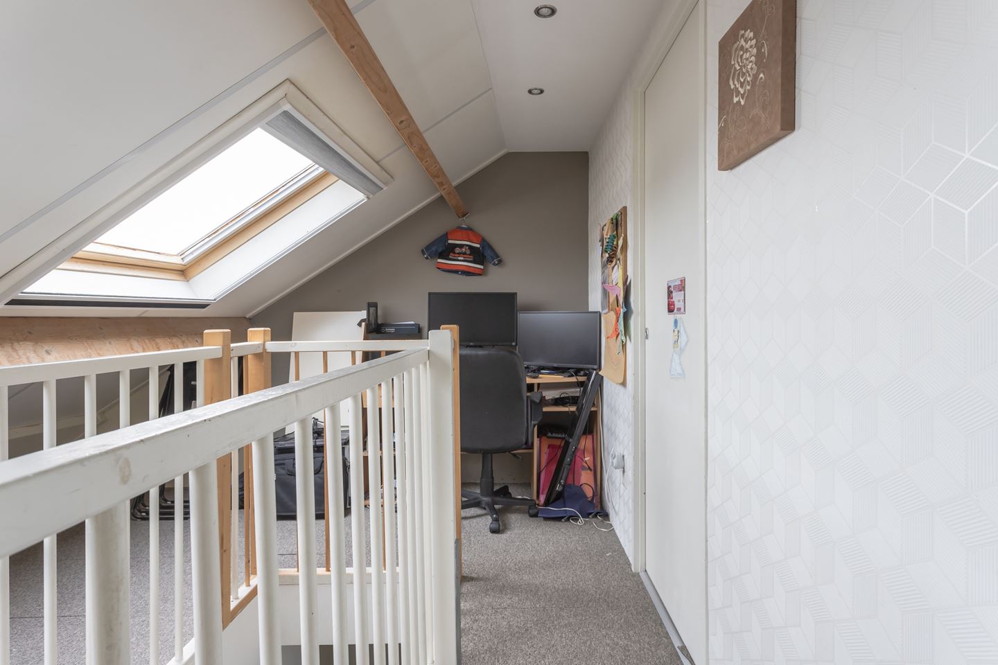 Trapopgang naar riante voorzolder en prachtige grote 4e slaapkamer met kunststof dakkapel. De voorzolder is als enige woning voorzien van 2 veluxramen. De zolder heeft nog een extra vliering voor opbergruimte.