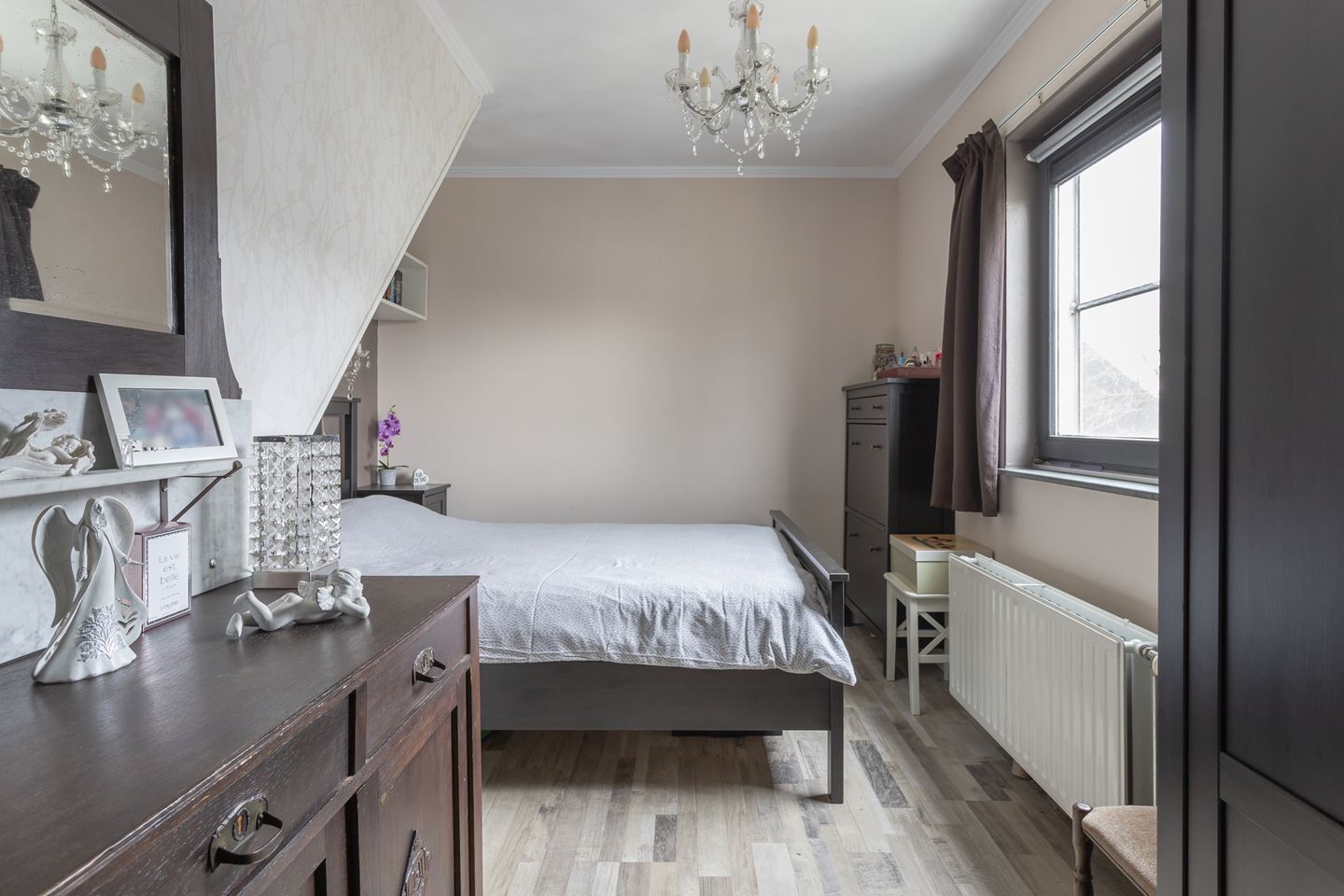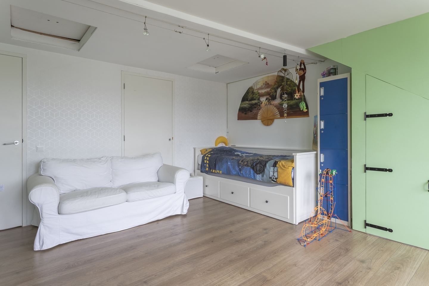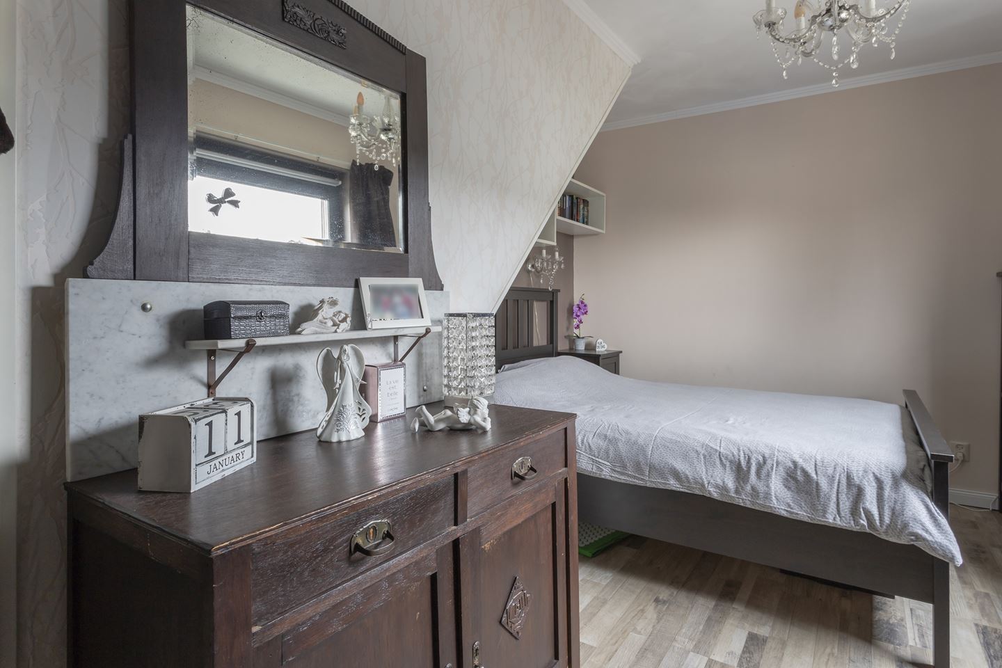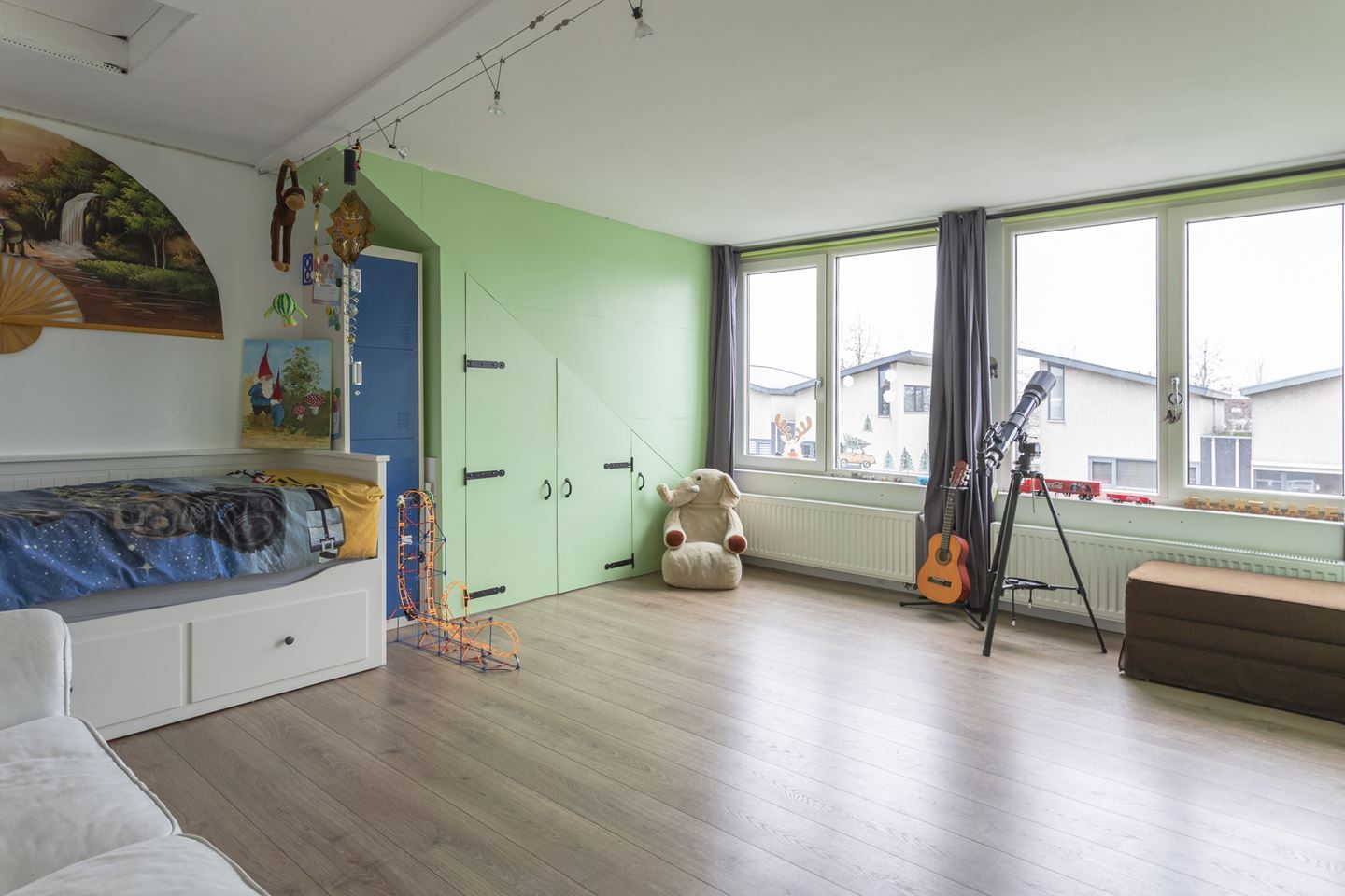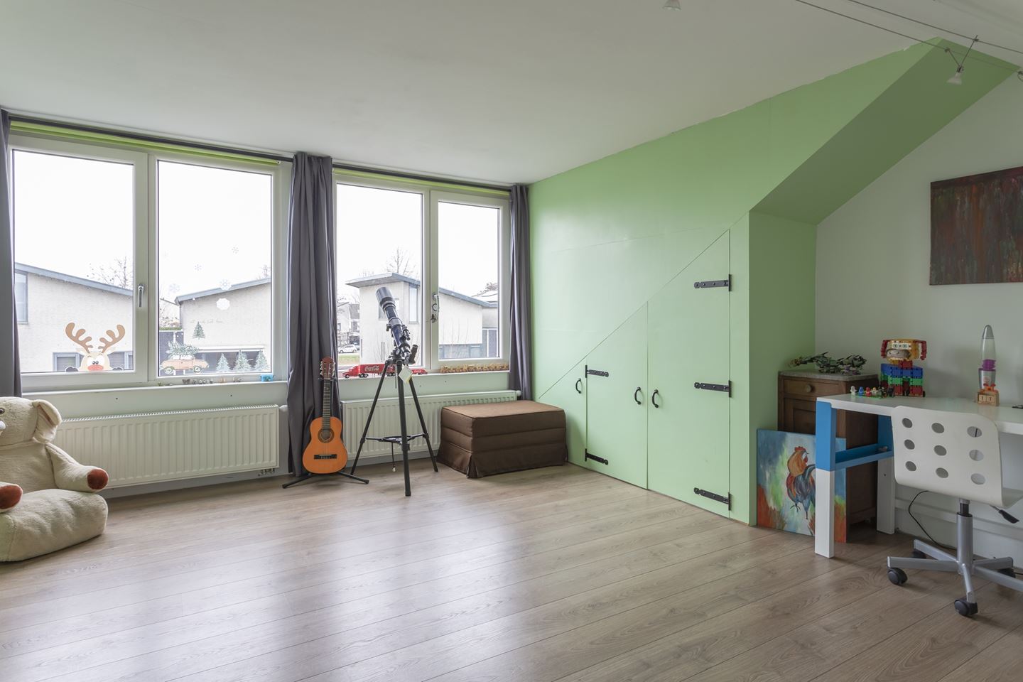 Trapopgang naar riante voorzolder en prachtige grote 4e slaapkamer met kunststof dakkapel. De voorzolder is als enige woning voorzien van 2 veluxramen. De zolder heeft nog een extra vliering voor opbergruimte.