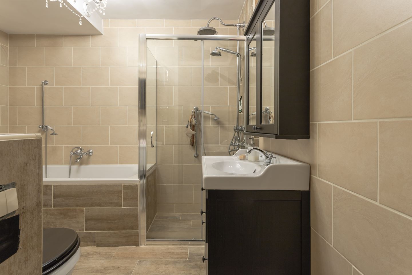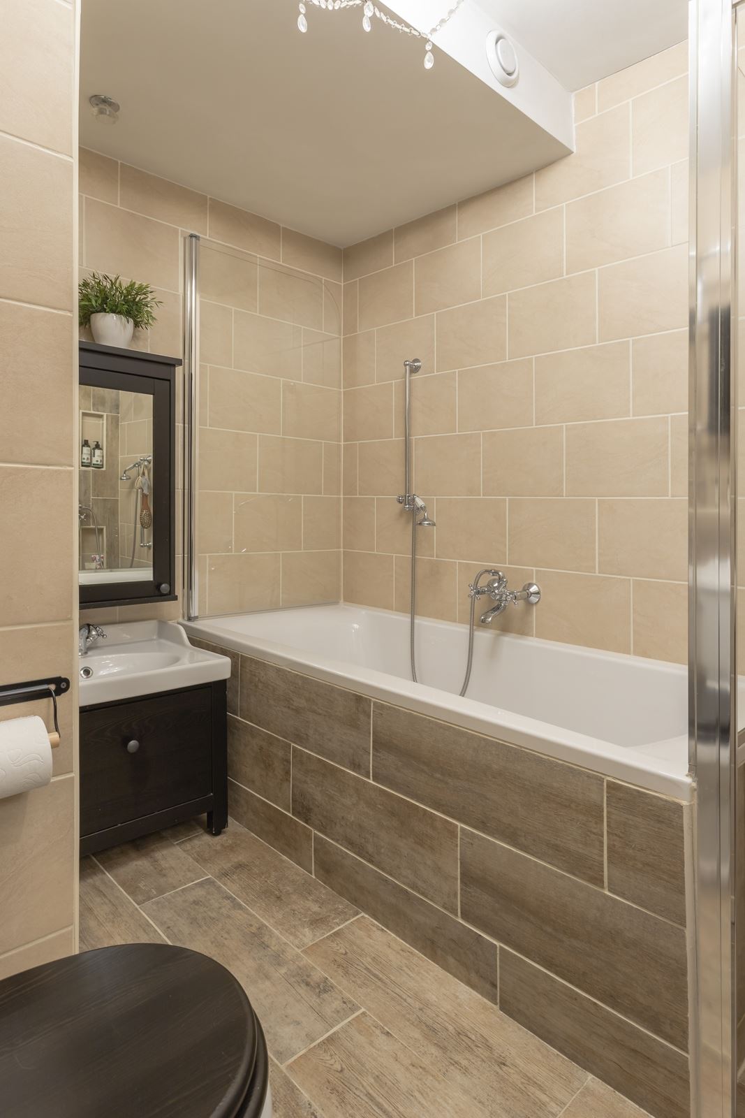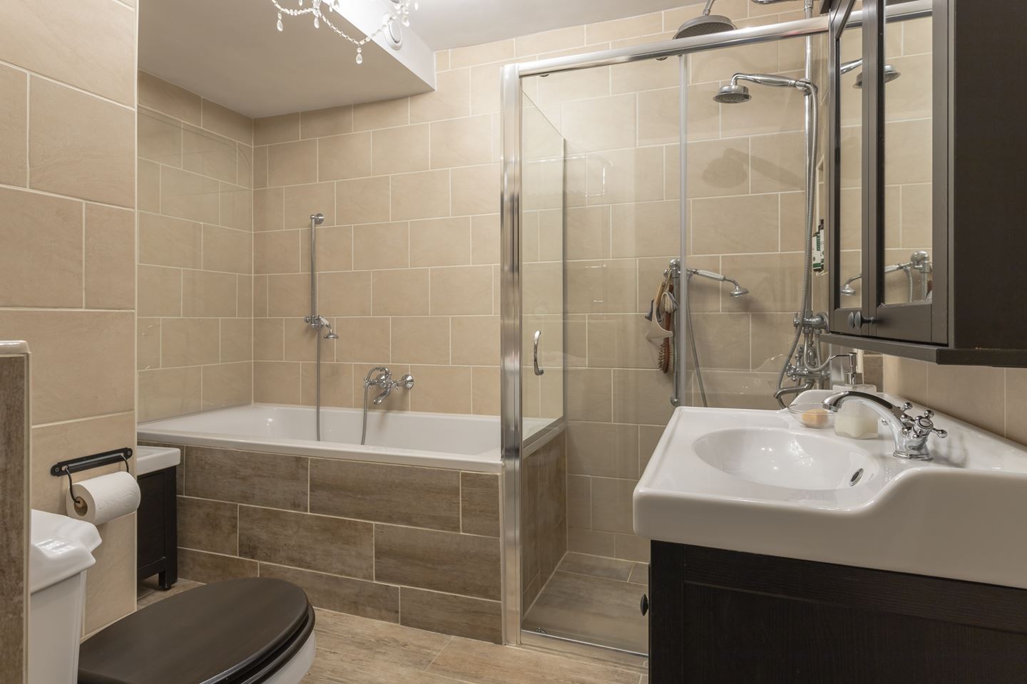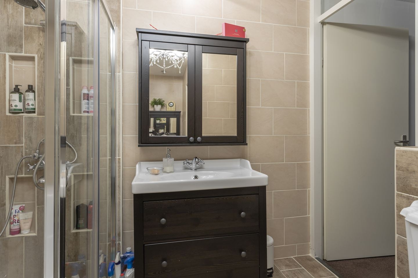 Overloop met toegang tot 3 slaapkamers en de nette badkamer welke is ingericht met een wastafelmeubel, douche, ligbad, toilet en inbouwkast. Overloop is voorzien van vloerbedekking en de slaapkamers zijn afgewerkt met een laminaat vloer.
