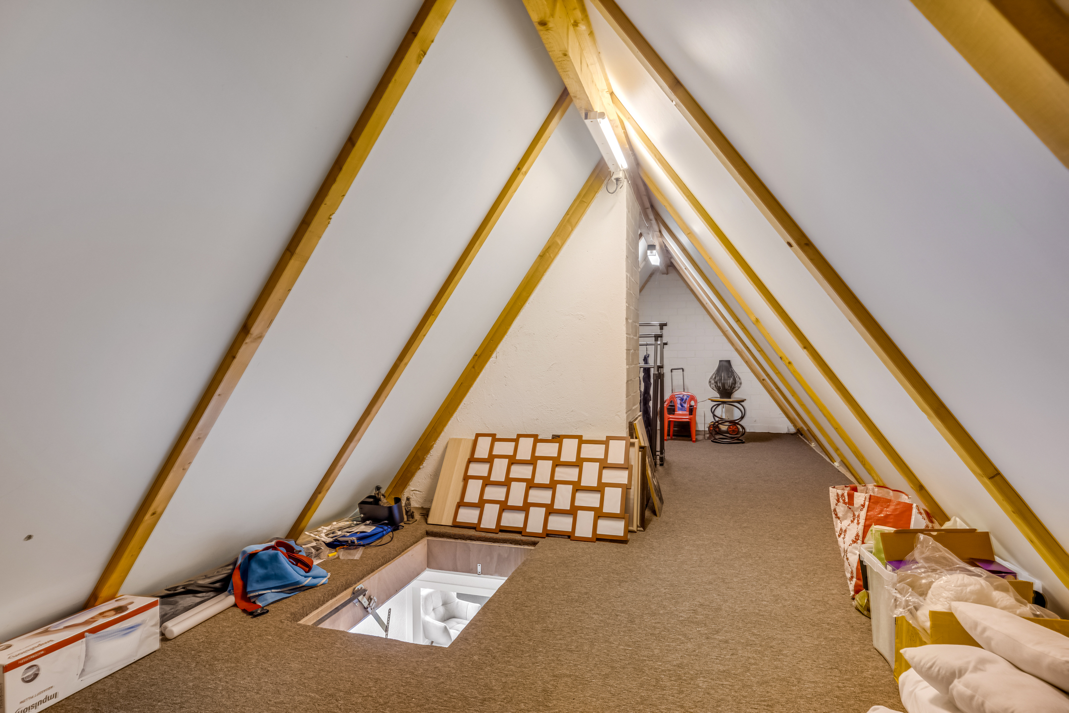 De 2e verdieping is te bereiken via een vlizotrap. Op de nette bergzolder is ruimte genoeg om je spullen op te bergen.
