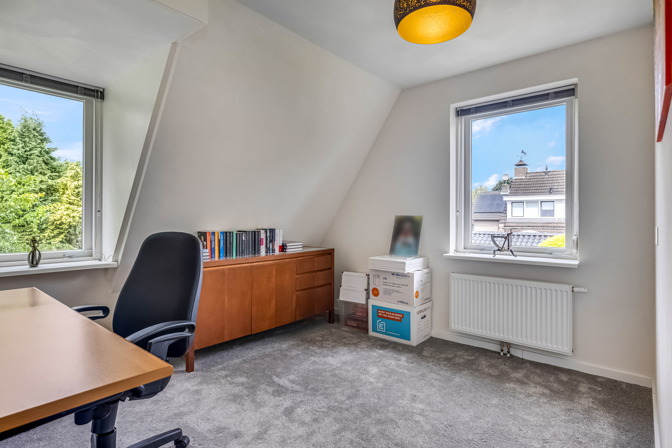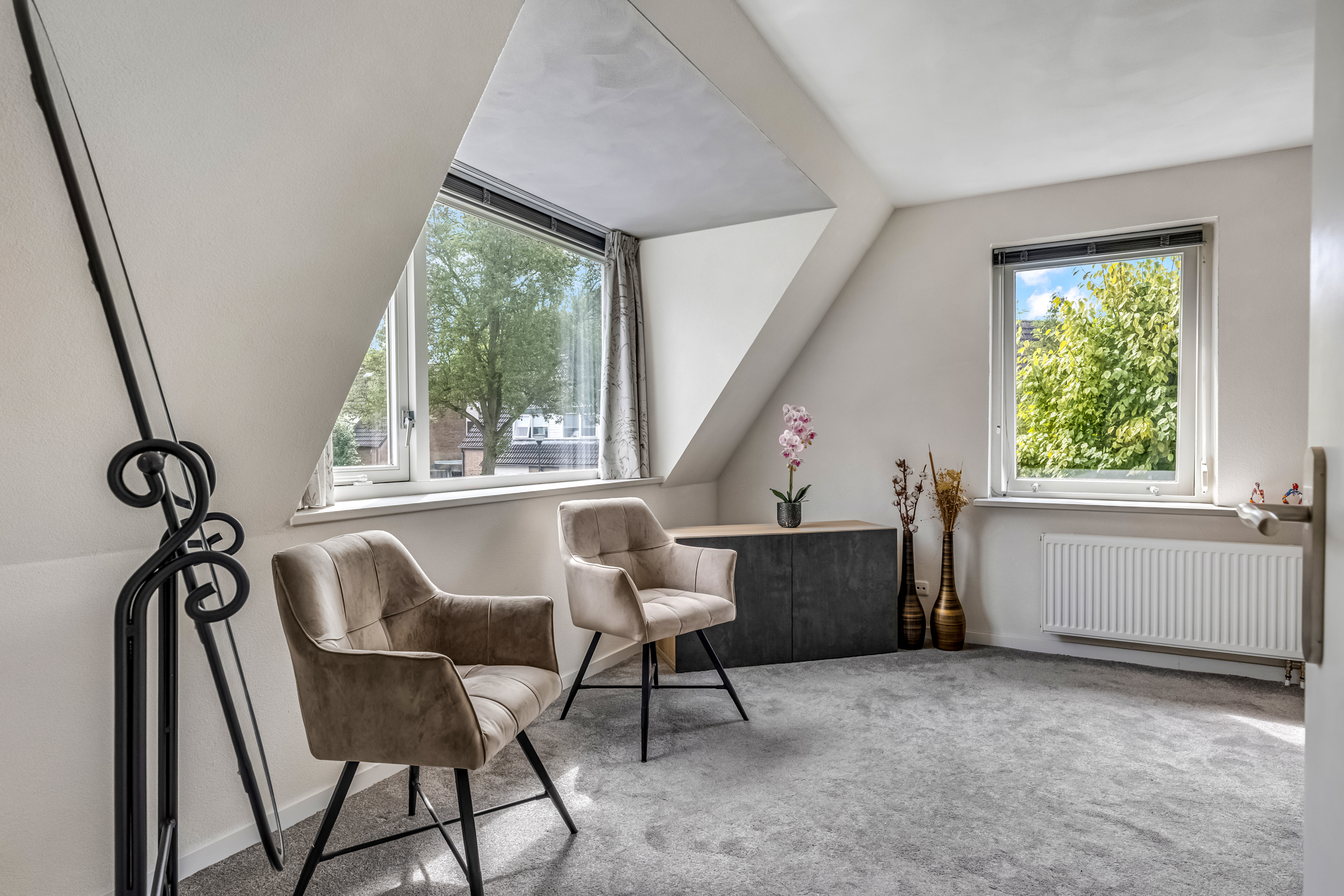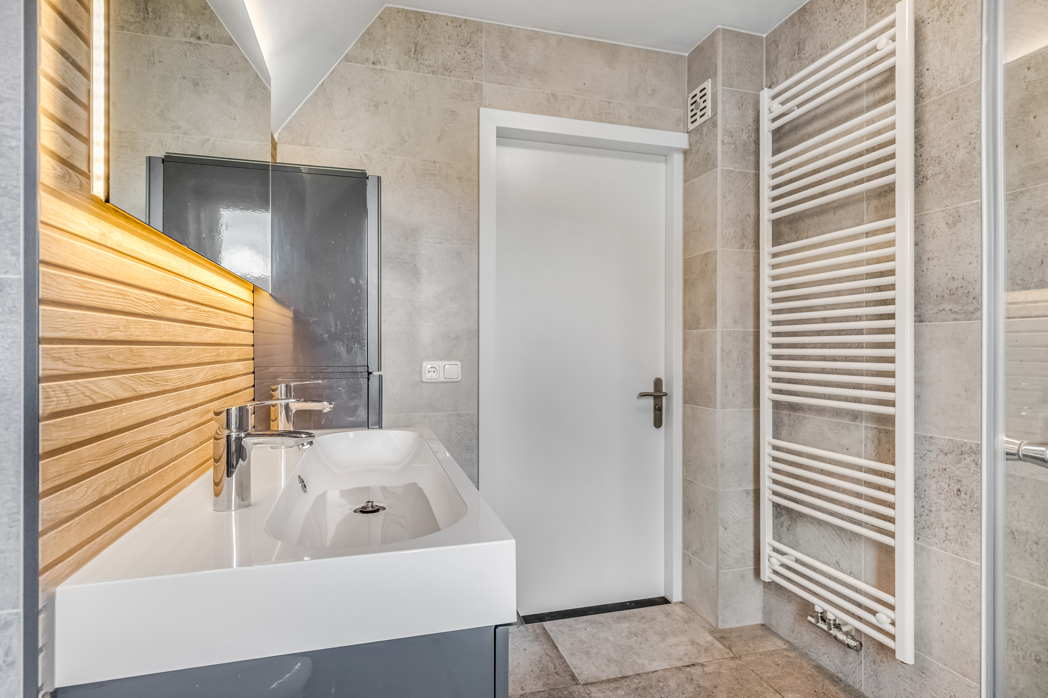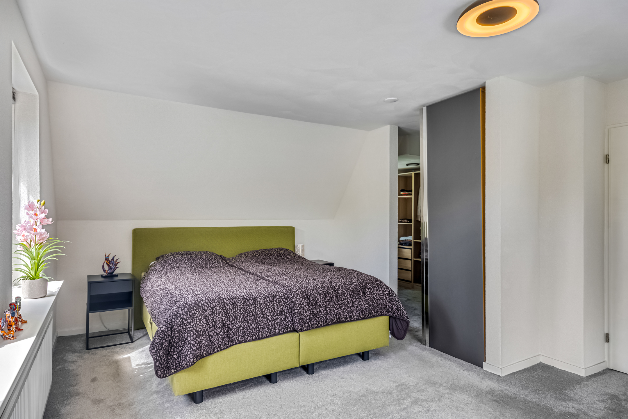 De trap in de hal brengt je naar de 1e verdieping. Hier zijn 2 slaapkamers, voorheen 3, en de badkamer. De co mfortabele badkamer uit 2021 is geheel betegeld en van alle gemakken voorzien. Zo vind je hier een douche met drain, wastafelmeubel met spiegel, zwevend toilet en design radiator. De master bedroom aan de voorkant is voorzien van een heerlijke airco, ruime inloopkast en dakkapel (2021). Eventueel is er de mogelijkheid voor een 3e slaapkamer, zoals het oorspronkelijk was. Aan de achterkant van de woning bevind zich de andere ruime slaapkamer met dakkapel. De gehele verdieping is wederom voorzien van stucwerk op muren en plafond en rolluiken. Totaal zijn er 3 dakkapellen.