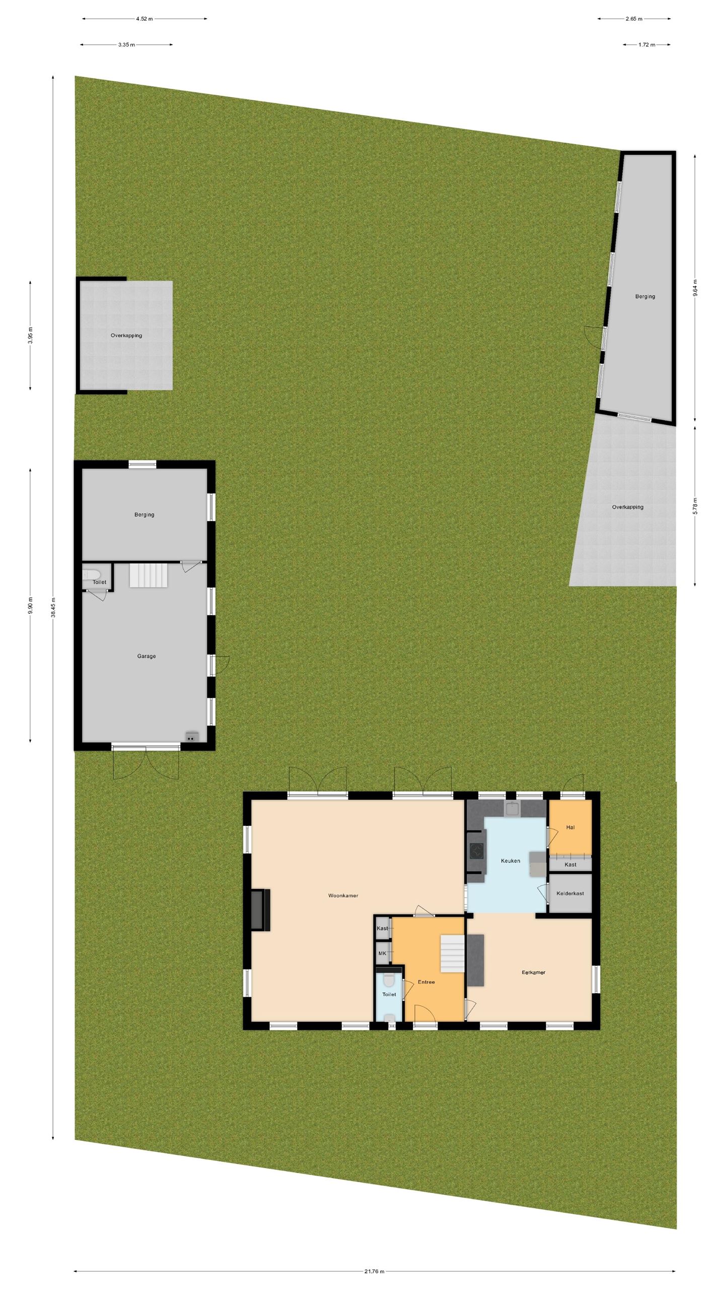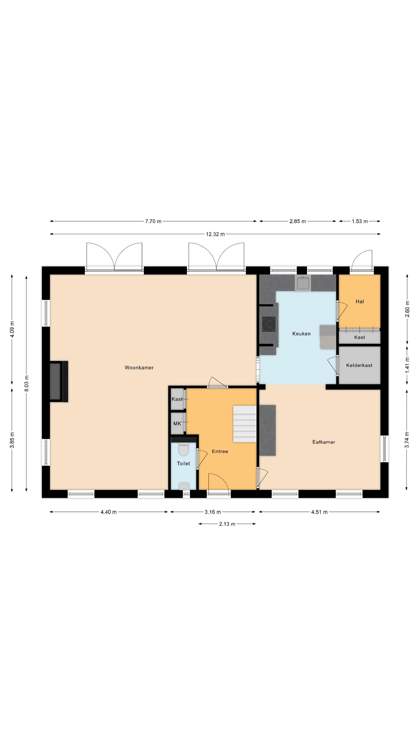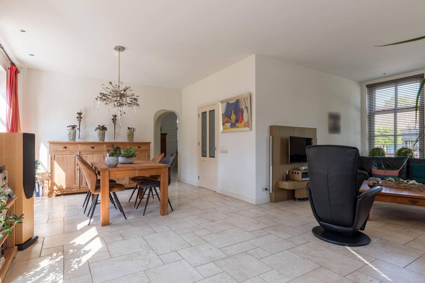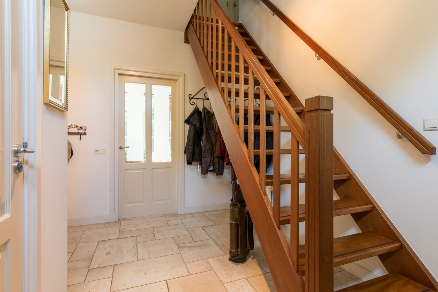 De fraaie ontvangsthal geeft toegang tot de sfeervolle woonkamer, eetkamer, keuken met kelderkast, toilet en trapopgang naar de eerste verdieping. Het toilet is betegeld en voorzien van hangtoilet en fontein. Woonkamer De sfeervolle woonkamer in L-vorm is zeer ruim te noemen met uitzicht op de mooie tuin welke te bereiken is via opslaande tuindeuren.