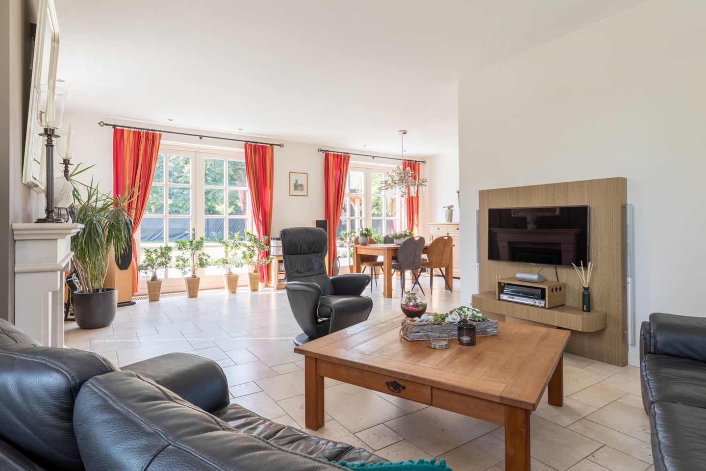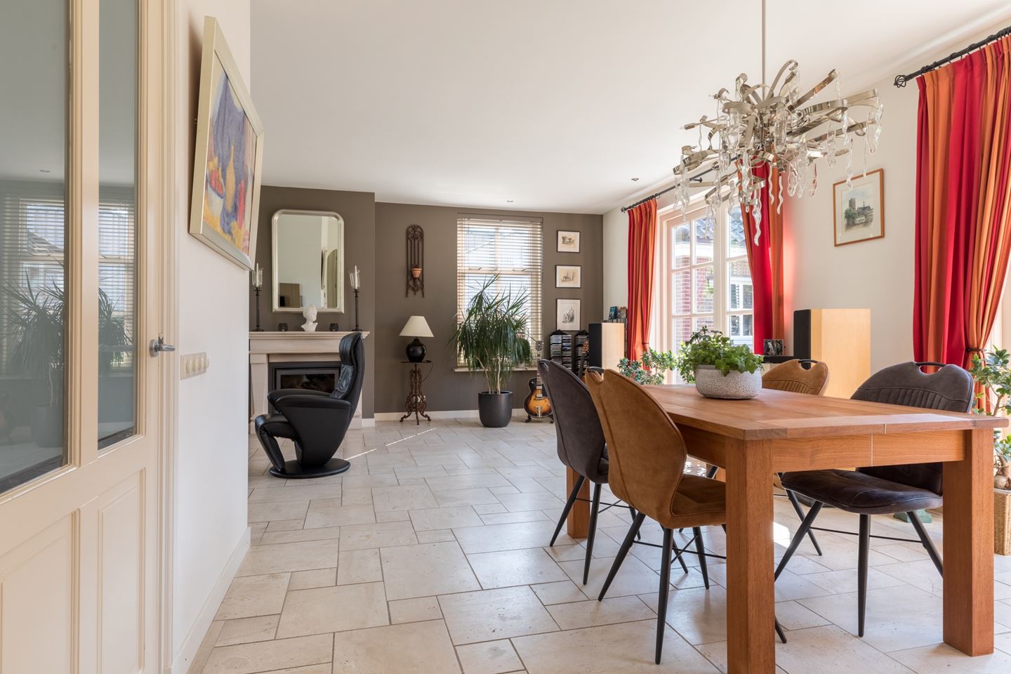 De woonkamer is voorzien van een open haard in de juiste stijl die de sfeer zeker verhoogd . Vanuit de woonkamer is er toegang tot de keuken. De gehele begane grond is voorzien van vloerverwarming, convectorput, strak stucwerk en 2,75 meter hoge plafonds.