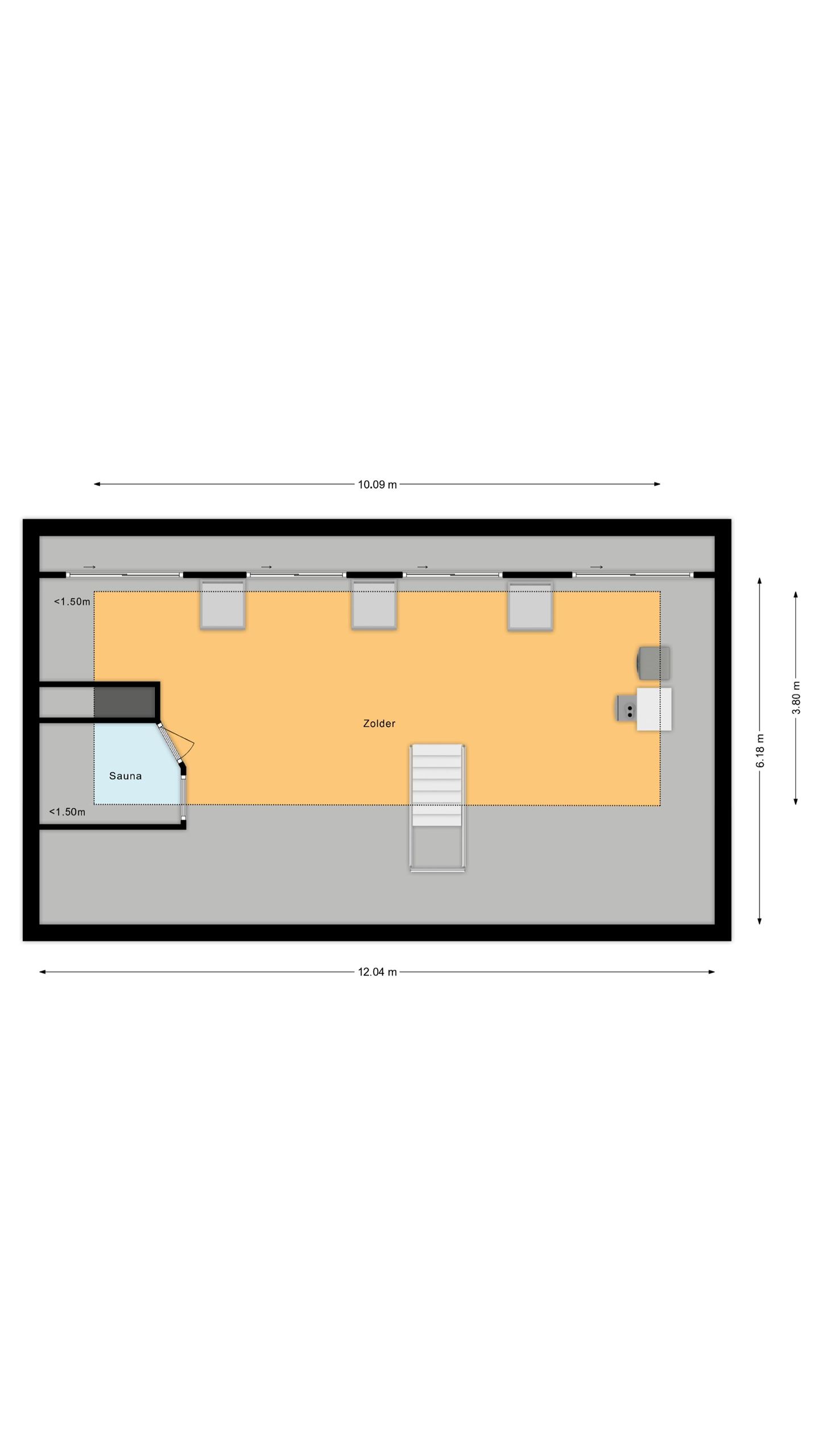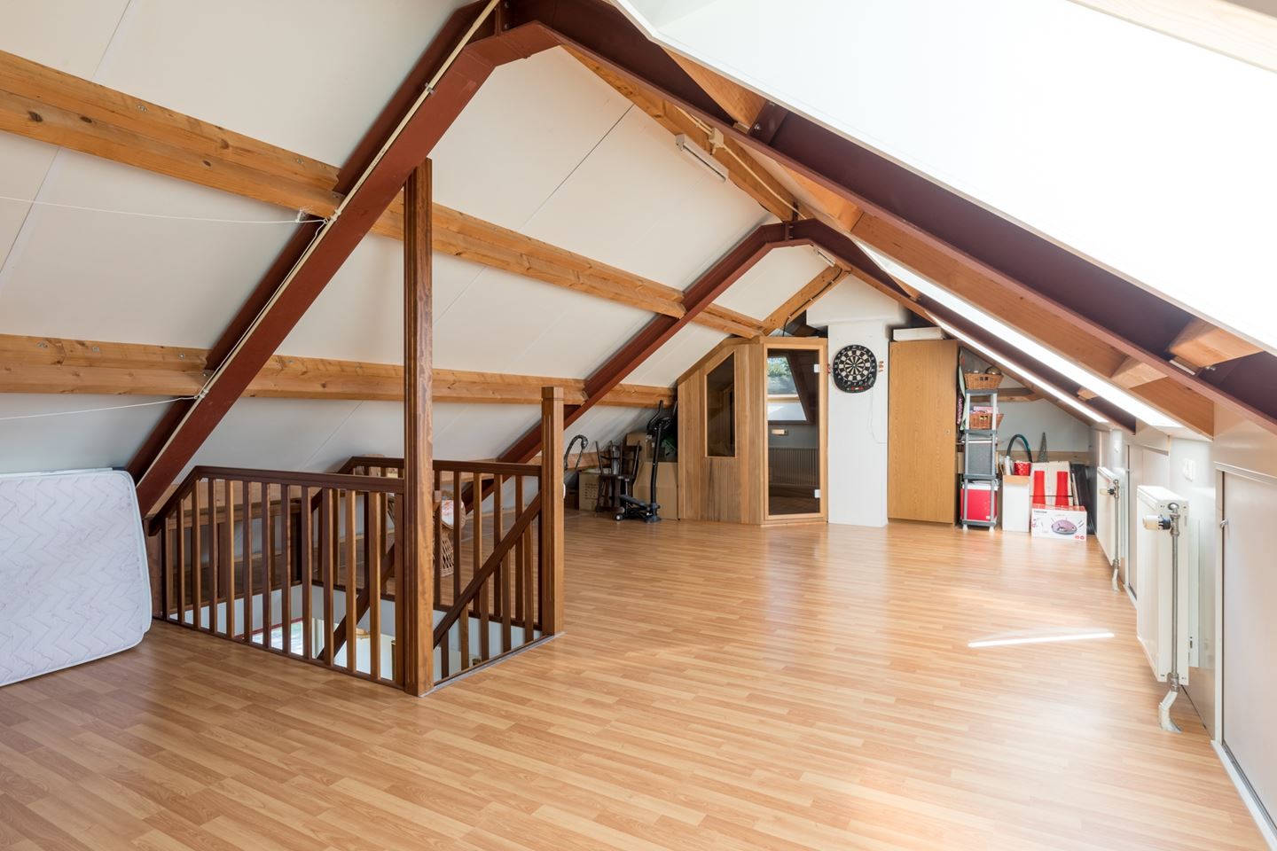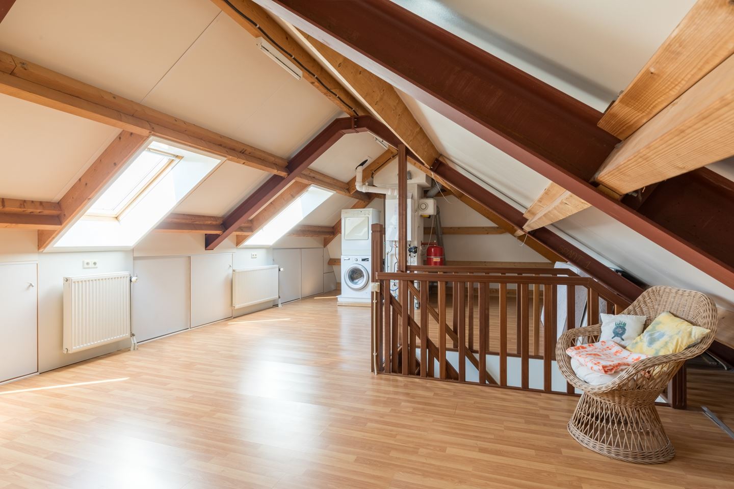 Via de open trap op de overloop is de nette zolder te bereiken die over de volle breedte van de woning loopt. De zolder is voorzien van een sauna, opstelling cv-ketel, 3 zolderramen 2 radiators en aansluiting wasmachine en wasdroger. Er is extra ruimte gecreëerd d.m.v. de schotten voorzien van deuren. Vanzelfsprekend is de zolder geheel geïsoleerd.
