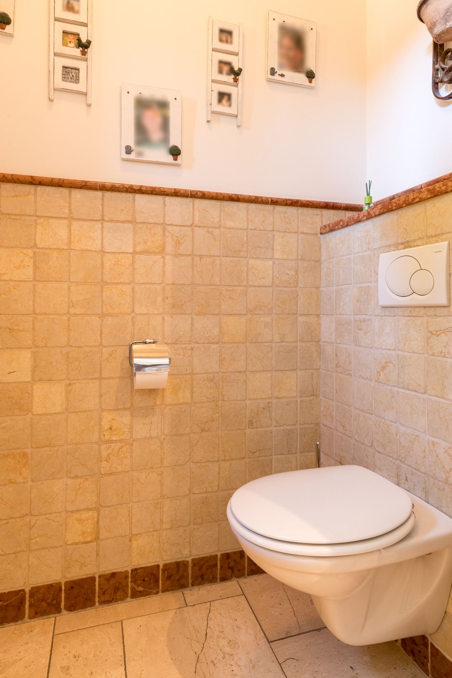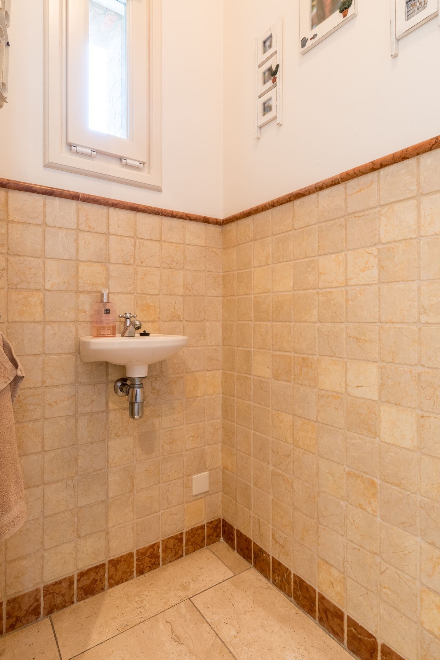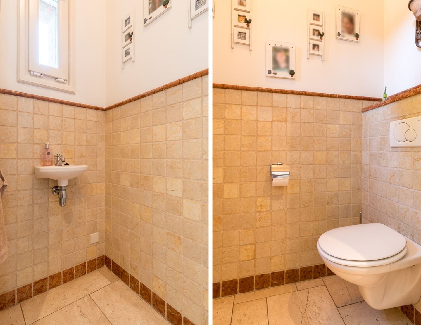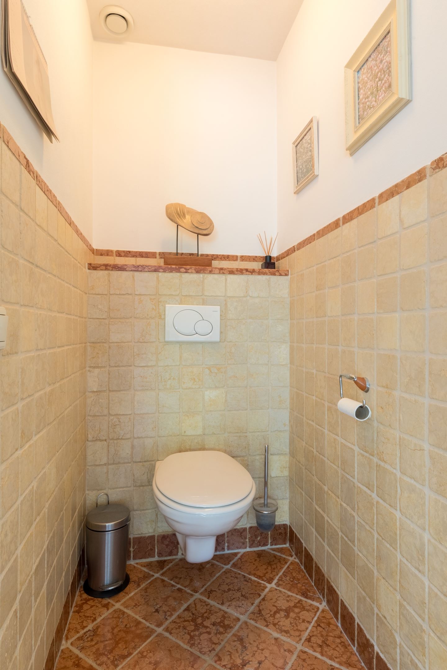 Ideaal is het separate toilet in dezelfde stijl als de badkamer en het toilet op de begane grond.