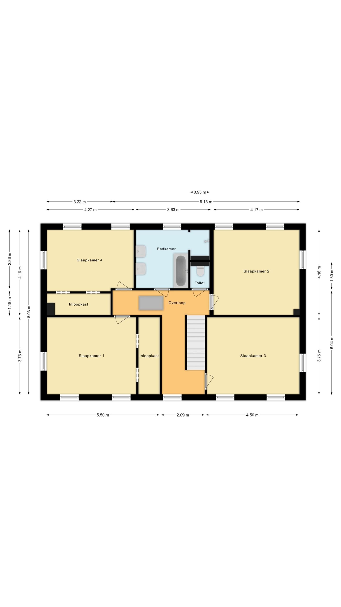 De overloop geeft toegang tot de vier ruime slaapkamers, badkamer en separate toilet. Ook deze verdieping is geheel voorzien van stucwerk.