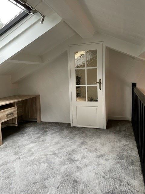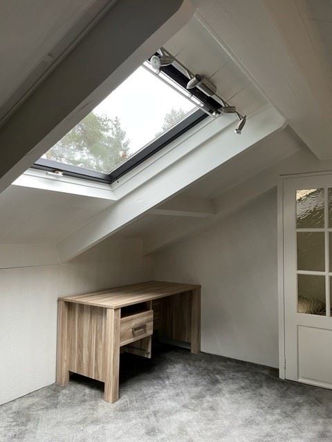 Via de mooie open houten trap bereikt u de overloop die uitermate geschikt is als werkplek. Grenzend aan de overloop ligt de ruime 3e slaapkamer voorzien van een groot dakraam. De verdiepingsvloer is van beton.