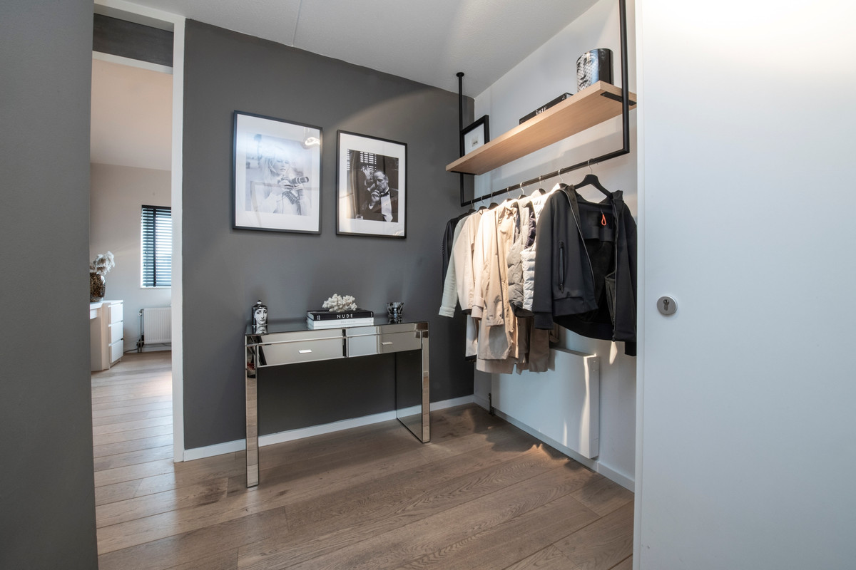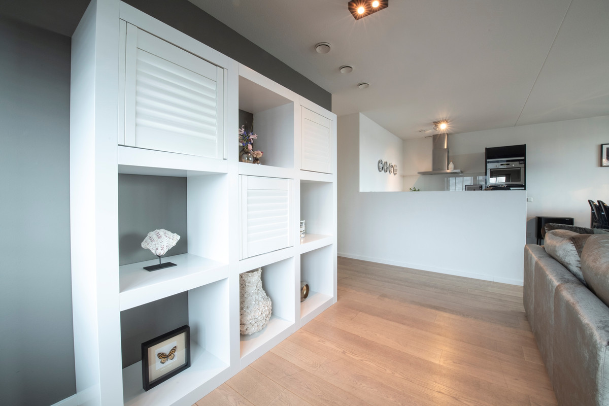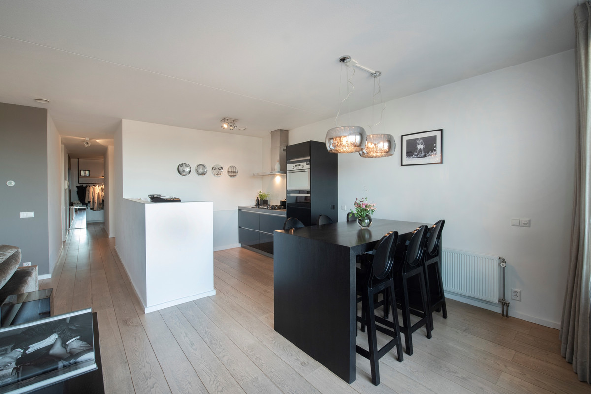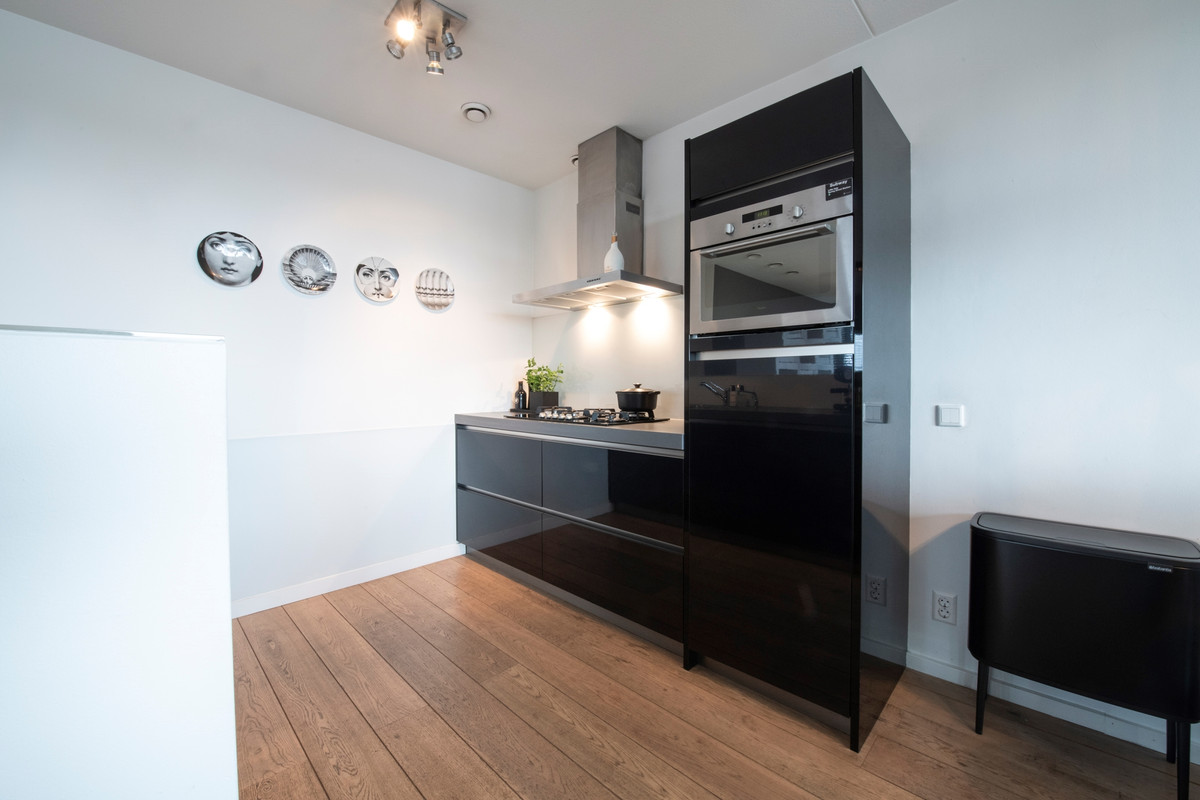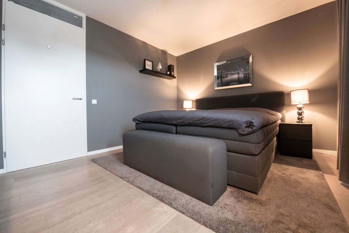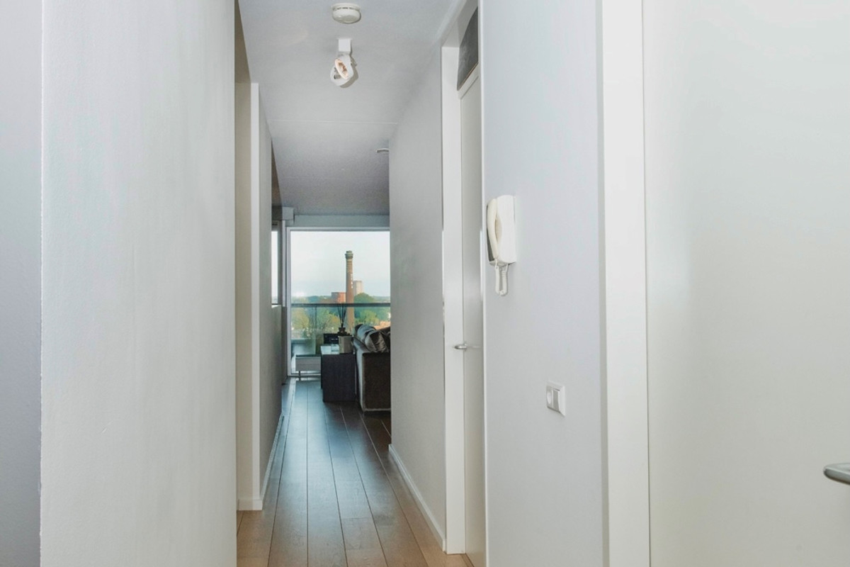 U komt binnen in de hal, die toegang biedt tot alle vertrekken. In de hal vindt u de meterkast. De zeer ruime woonkamer met open keuken bevindt zich aan de achterzijde van het appartement. Deze heerlijk ruimtelijke en lichte woonkamer met een schuifpui naar het balkon is heel praktisch ingedeeld en vormt een fijne leefruimte. De moderne keuken is voorzien van een brede gas op glas kookplaat met vijf pitten, een rvs afzuigkap, een vaatwasser, een koelkast, qooker en een combimagnetron. De twee slaapkamers met draaikiepramen liggen naast elkaar en zijn bijna even groot. Beide slaapkamers zijn geschikt voor een 2 persoons bed. Aan de overzijde van de slaapkamers is de badkamer. Deze is ingericht met een grote inloopdouche met glazen wand, dubbele wastafel en een desigin radiator. De badkamer is volledig betegeld. Naast de badkamer is een separate geheel betegelde toiletruimte met zwevend toilet en fonteintje. Ten slotte heeft u een ruime inpandige berging, waar u de cv-opstelling en de wasmachine-aansluiting vindt. De gehele verdieping is voorzien van een prachtige eiken vloer.