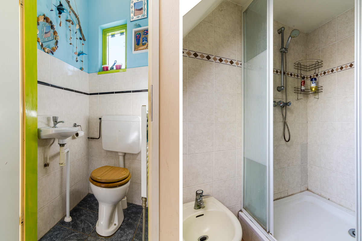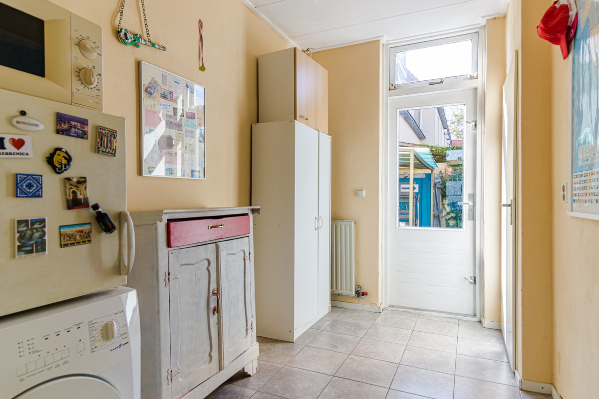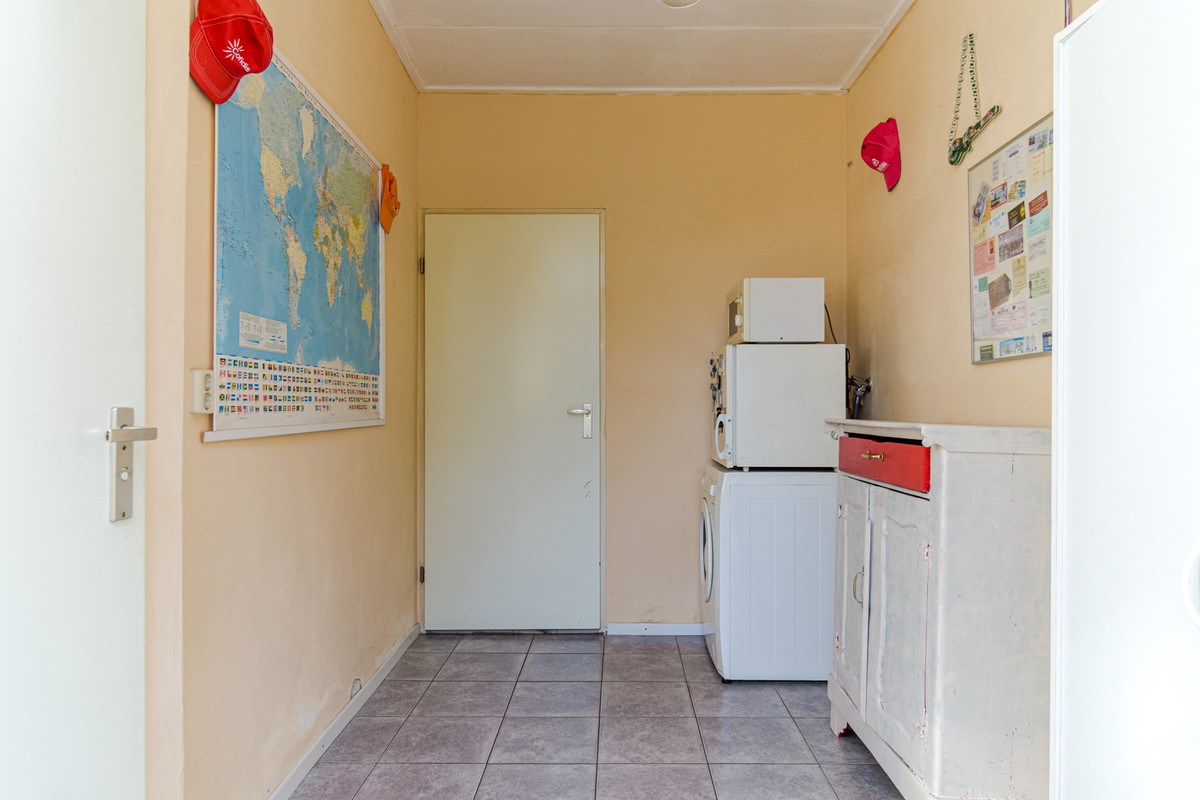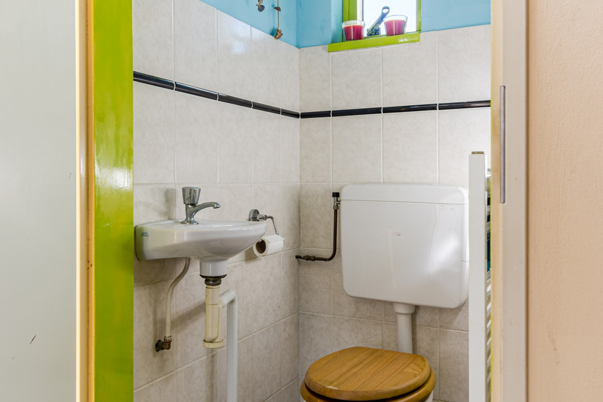 Berging: Naast de keuken bevindt zich nog een ruime berging met tegelvloer. Hier vind je het toilet, de achterdeur naar de tuin en de aansluitingen voor de wasmachine en de droger.