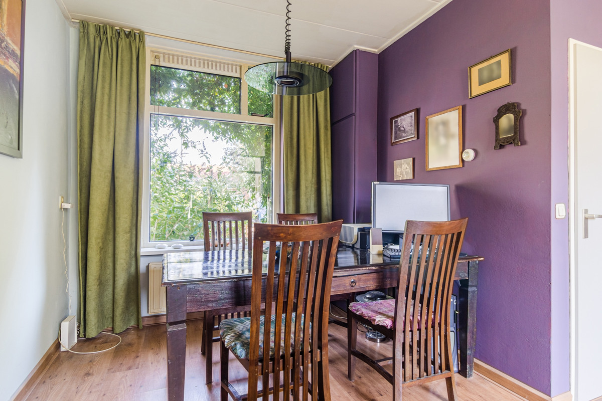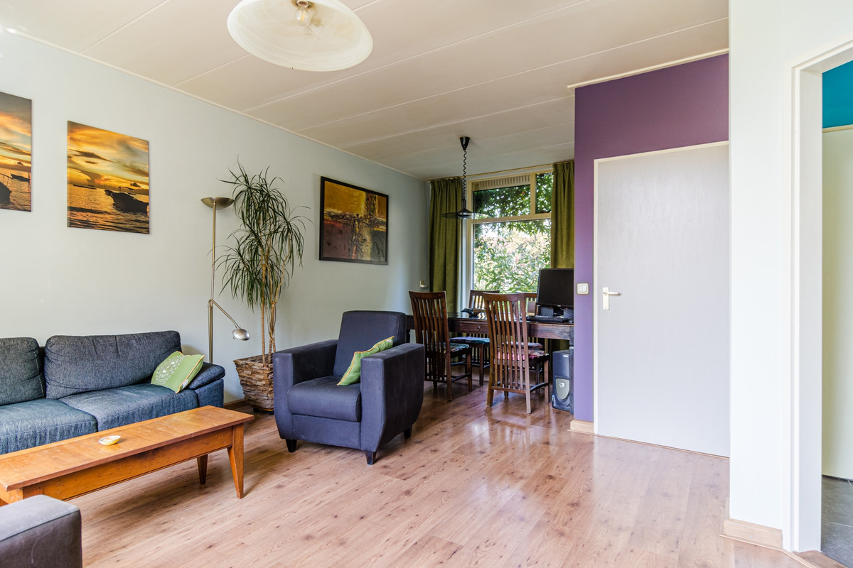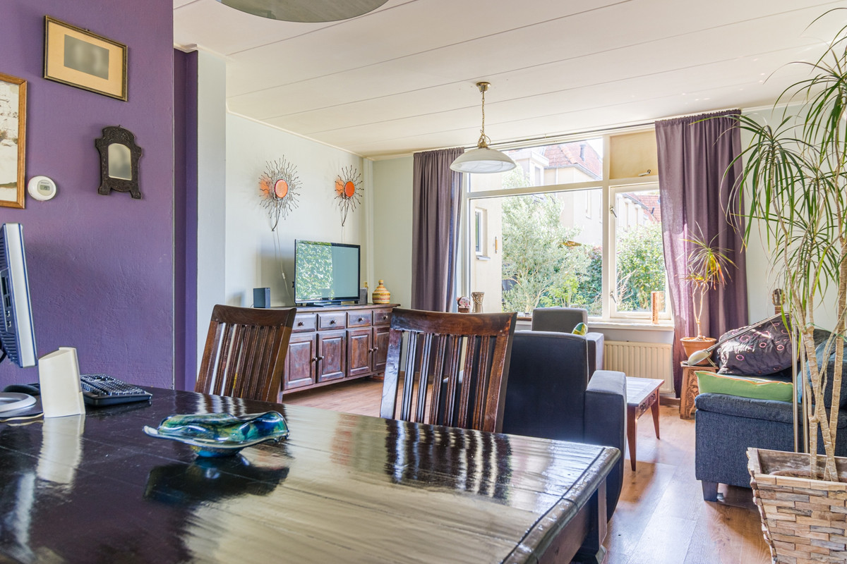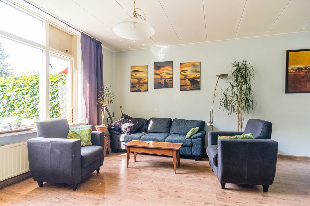 Woonkamer: De L-vormige woonkamer is voorzien van laminaatvloer en biedt genoeg ruimte aan een royale zithoek en een gezellige eettafel. Ook hier weer lekker veel lichtinval door het grote raam in de achtergevel.
