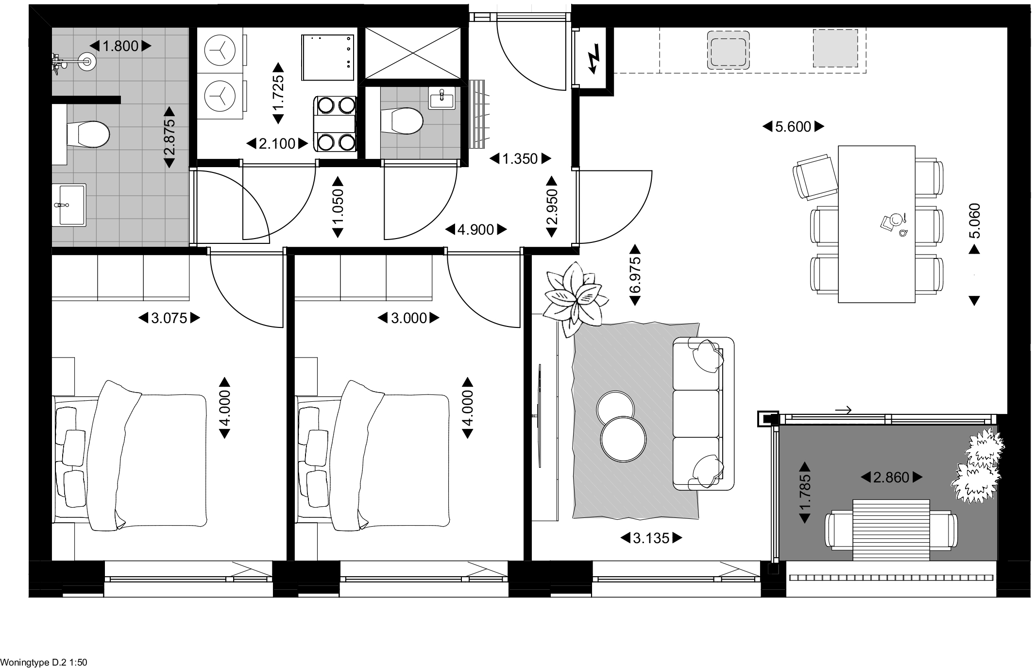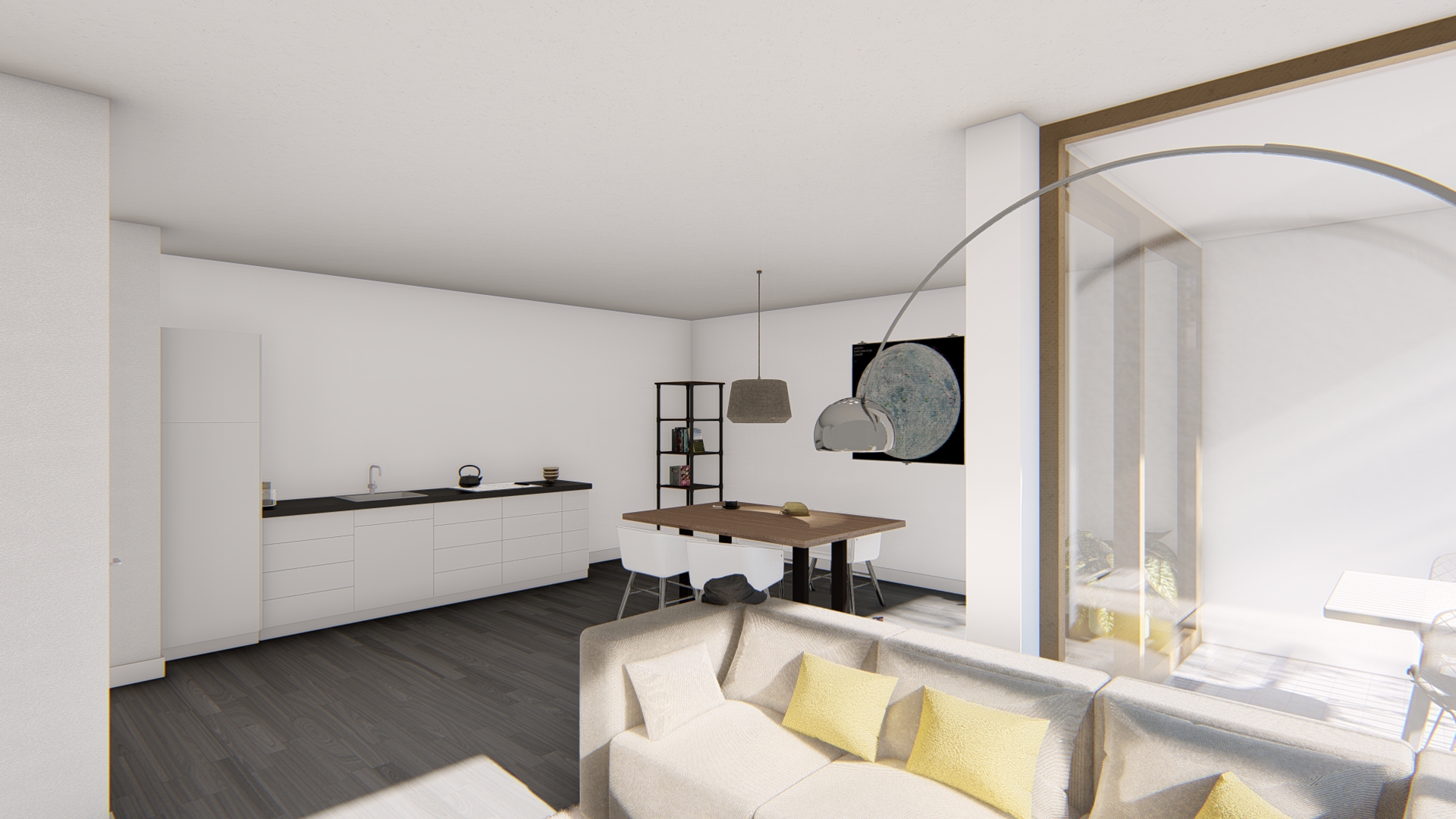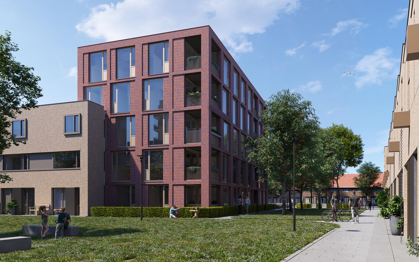 Verdiepingshoge puien garanderen een fraai uitzicht op het park. Daarnaast geven de fraaie ritmiek van de metselwerk gevels en de grote gevelopeningen de woning een modern, industrieel karakter. De 3-kamerappartementen verschillen in grootte en oriëntatie en het parkeren is gemeenschappelijk gelegen in een overdekte parkeervoorziening achter het woongebouw.