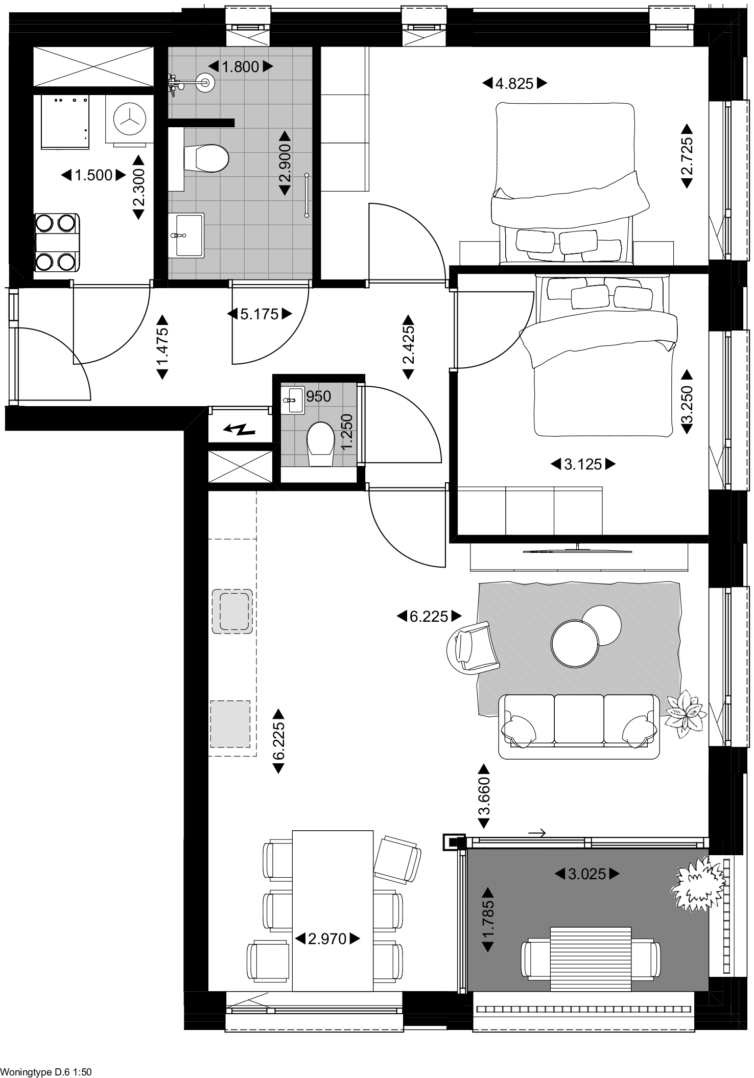 | Loggia | Op het zuidwesten |