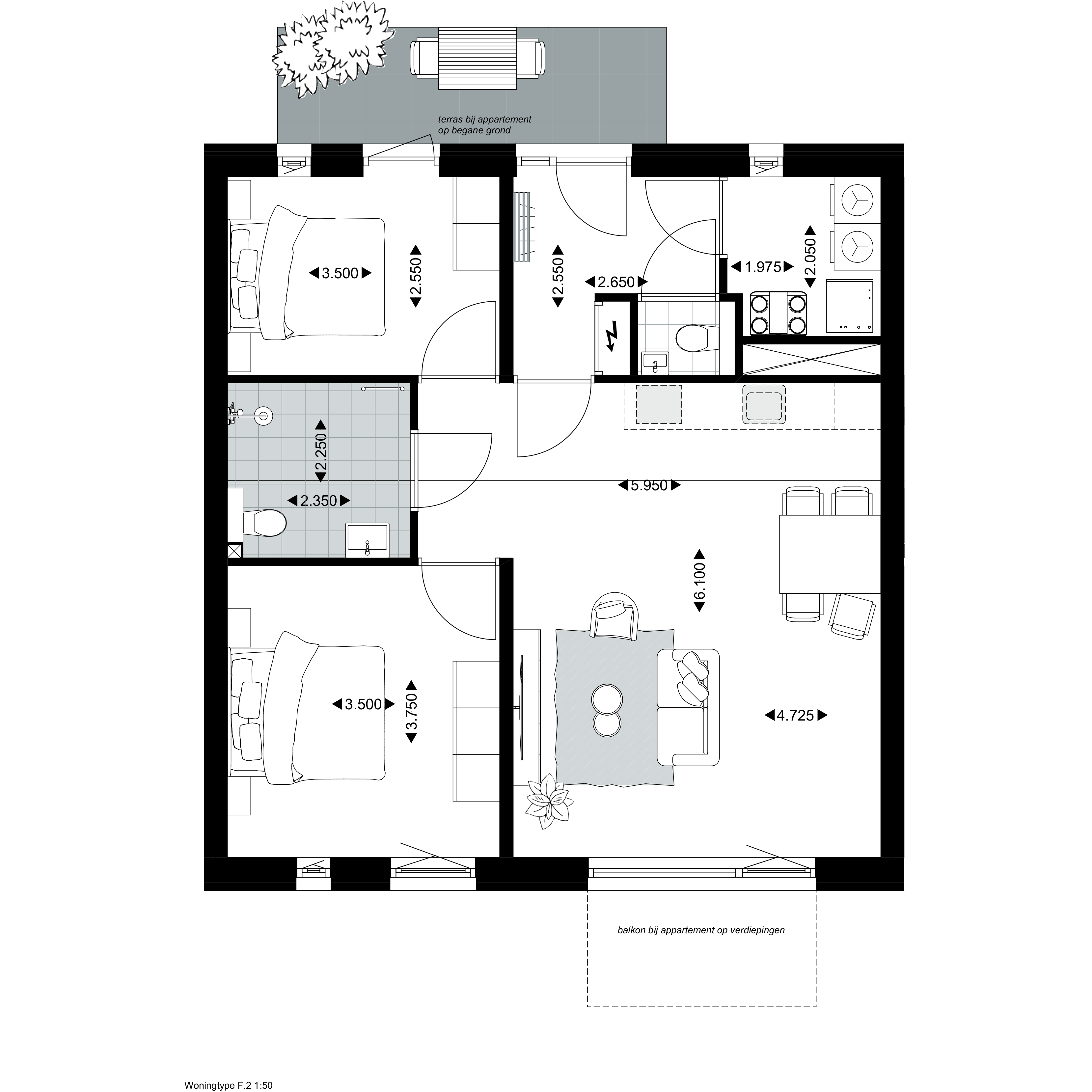 Deze eengezinswoningen hebben een uitbouw optie van 120 en 180 cm en een optie voor een schuifpui naar de tuin. Er is tevens een mogelijkheid om een extra slaapkamer te realiseren op de bovenste etage.
