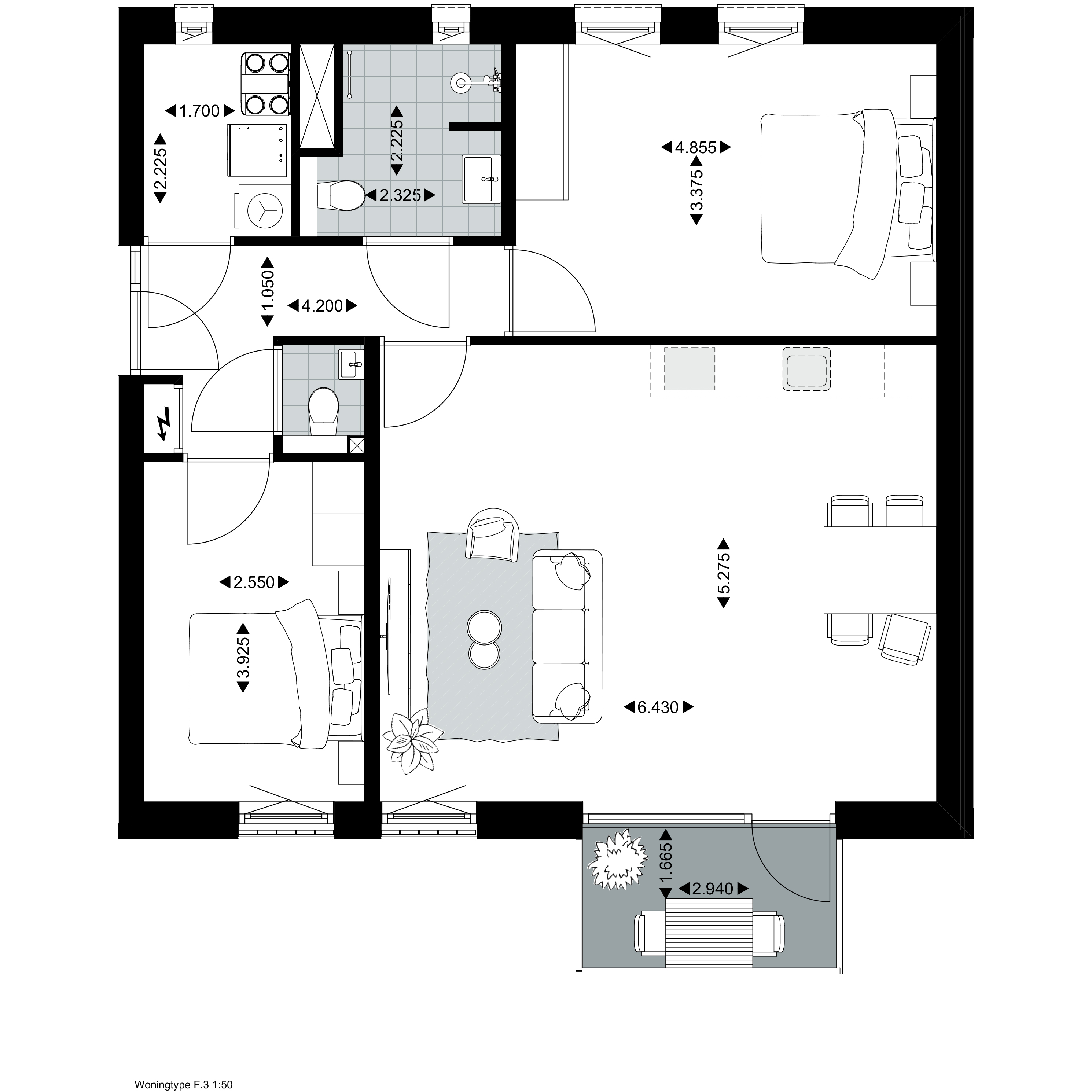 Deze eengezinswoningen hebben een uitbouw optie van 120 en 180 cm en een optie voor een schuifpui naar de tuin. Er is tevens een mogelijkheid om een extra slaapkamer te realiseren op de bovenste etage.
