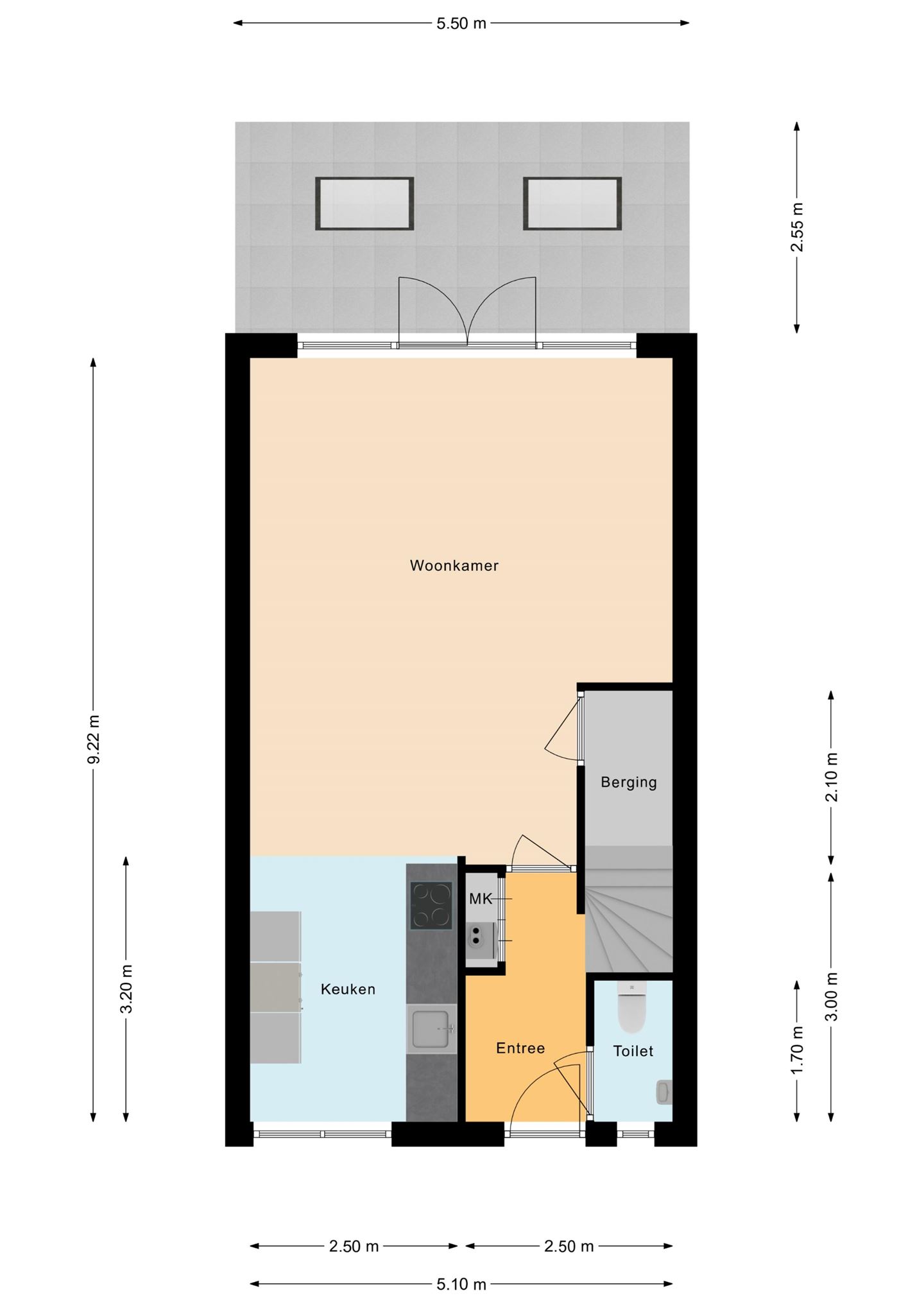 - Aparte toiletruimte voorzien van closet en fonteintje