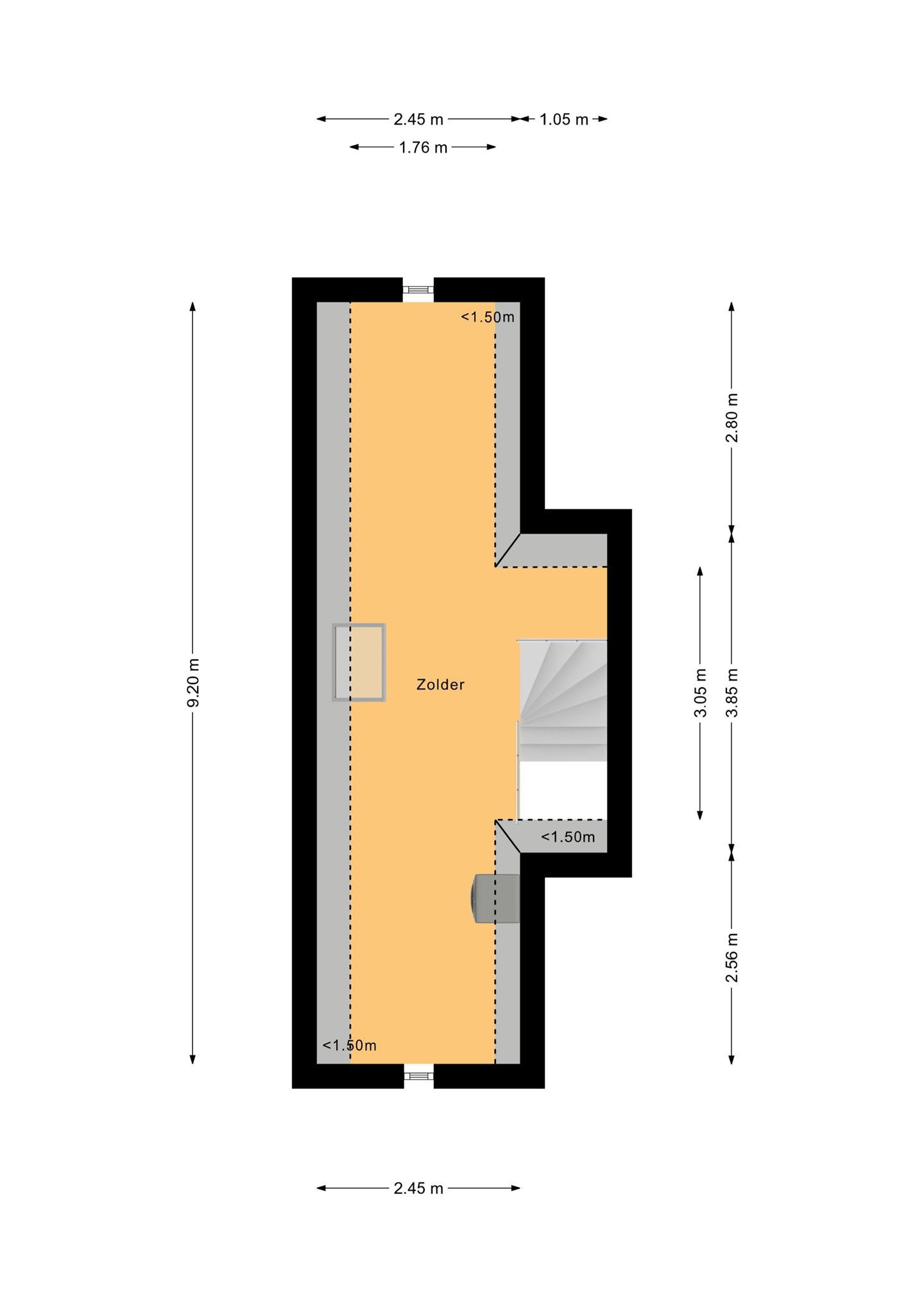 - Bereikbaar via houten trap voorzien van vloerbedekking