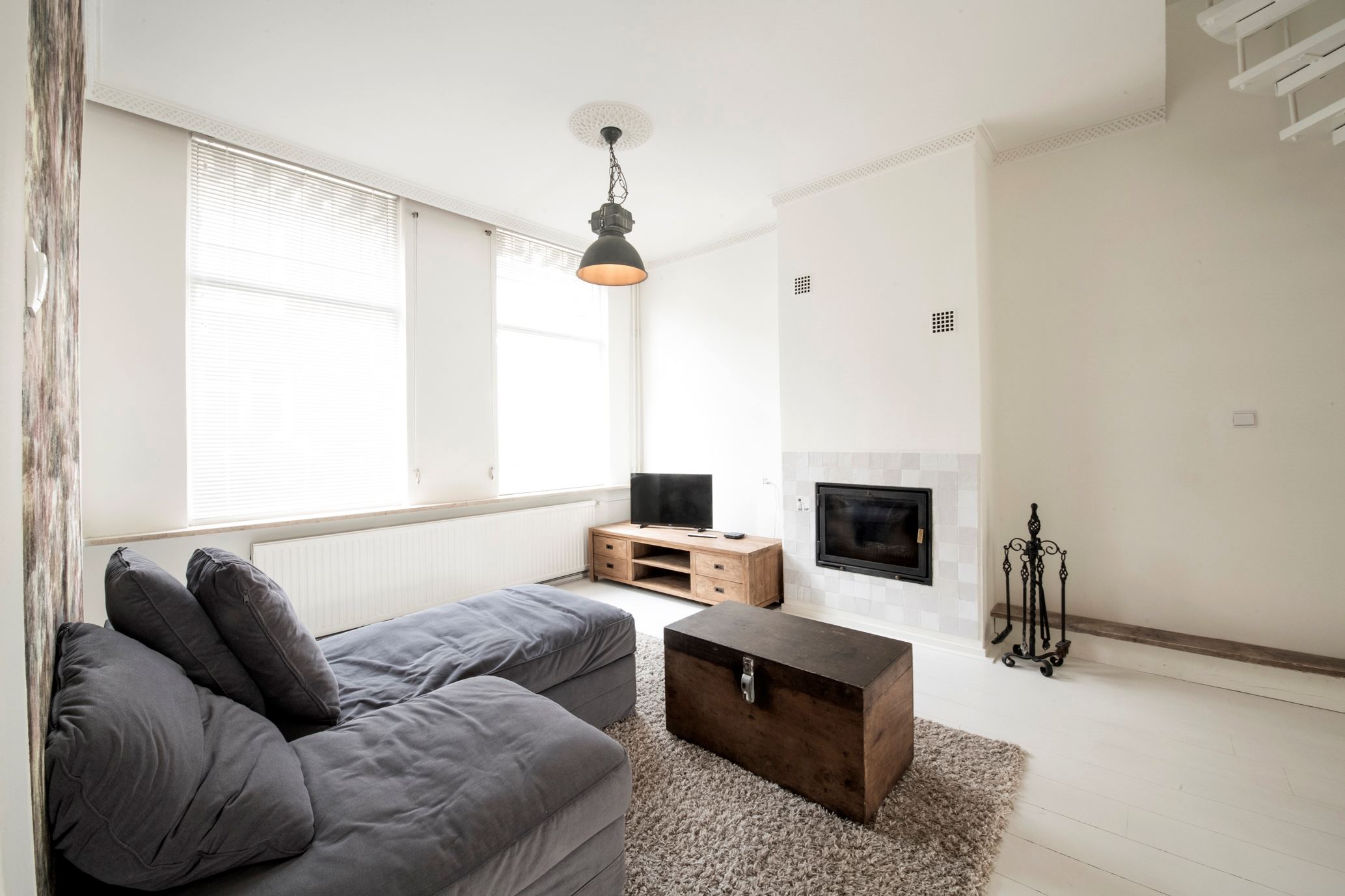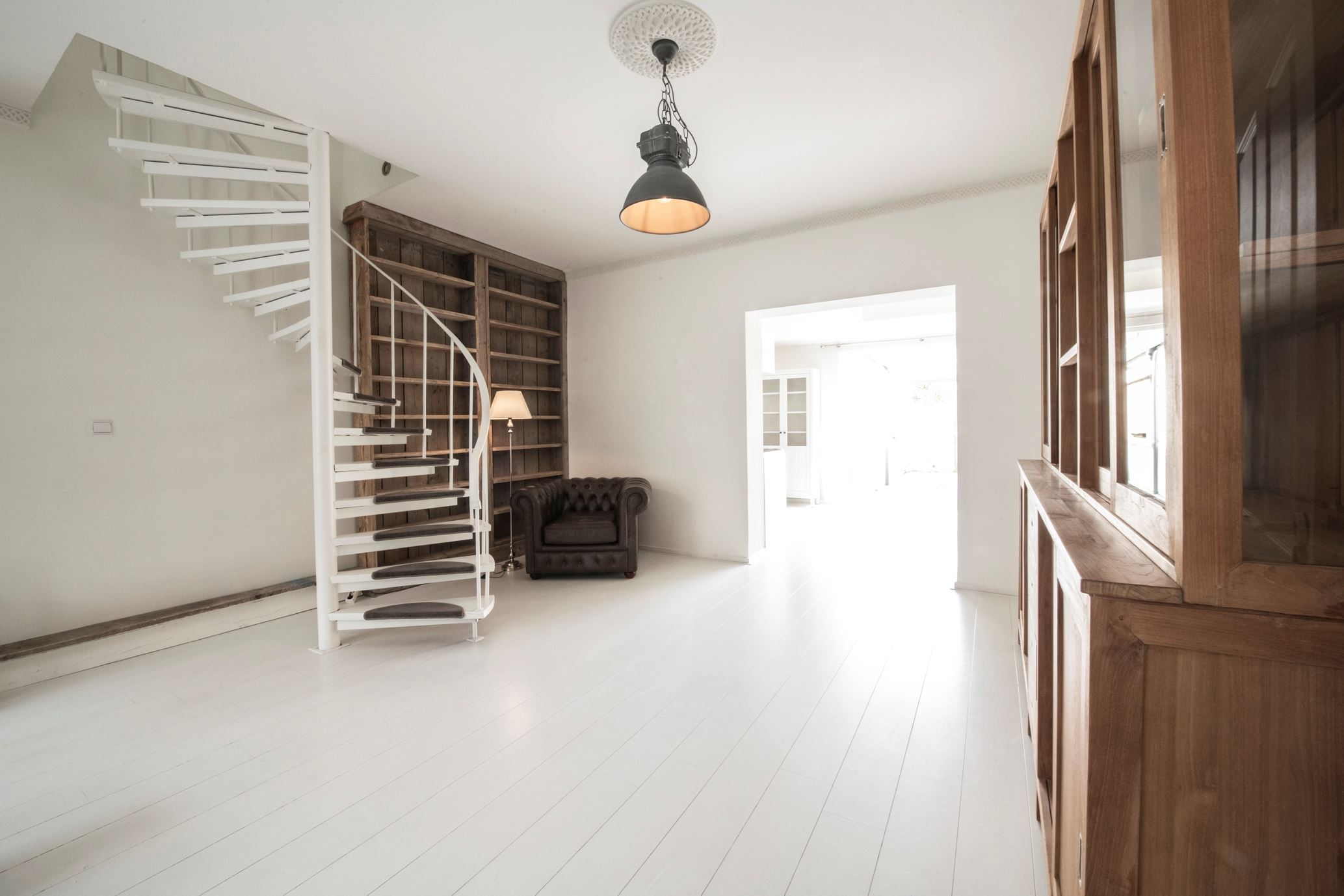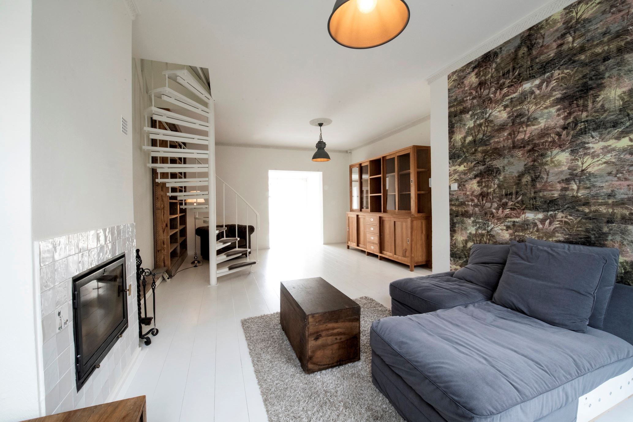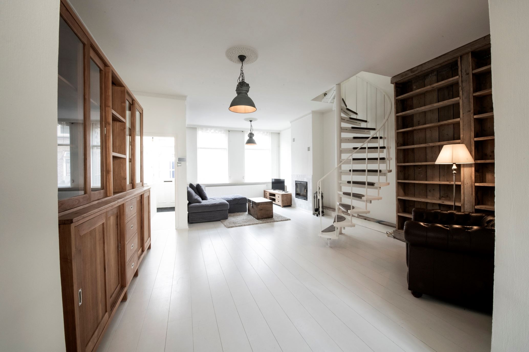 Deze sfeervolle en verrassend ruime woning is voorzien van een woonkamer met open haard, wenteltrap, semi-open keuken met openslaande tuindeuren, badkamer, 4 slaapkamers en een achtertuin met grote stenen berging en achterom.