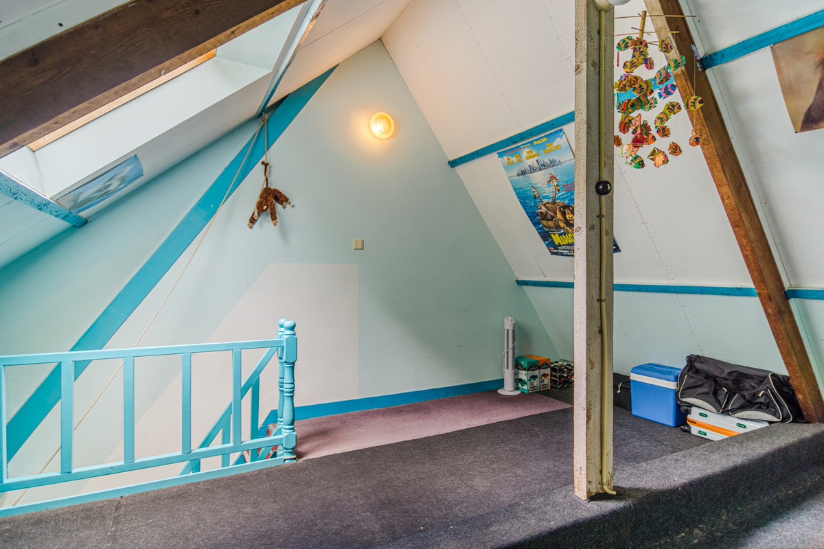 Vaste trap. Grote zolder met dakraam. Ideaal voor een ruime slaapkamer.