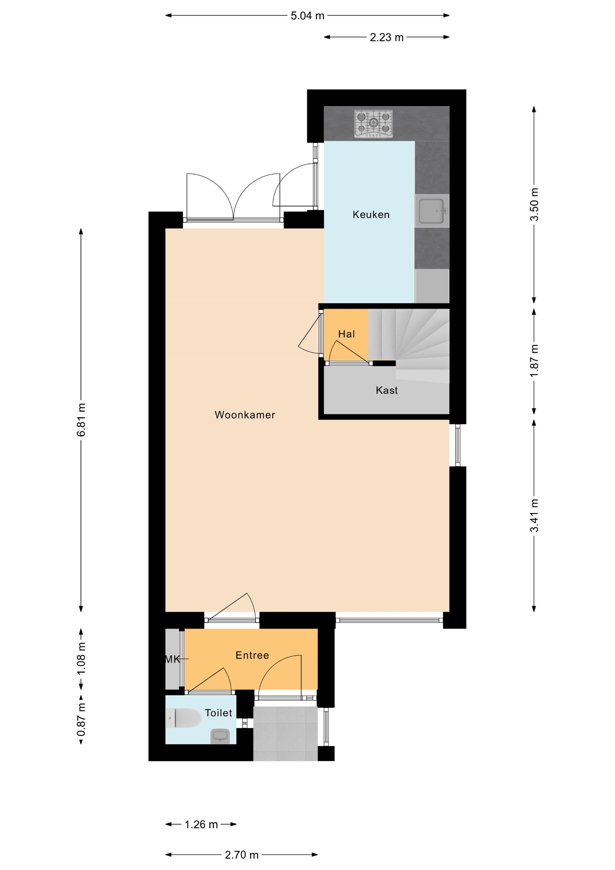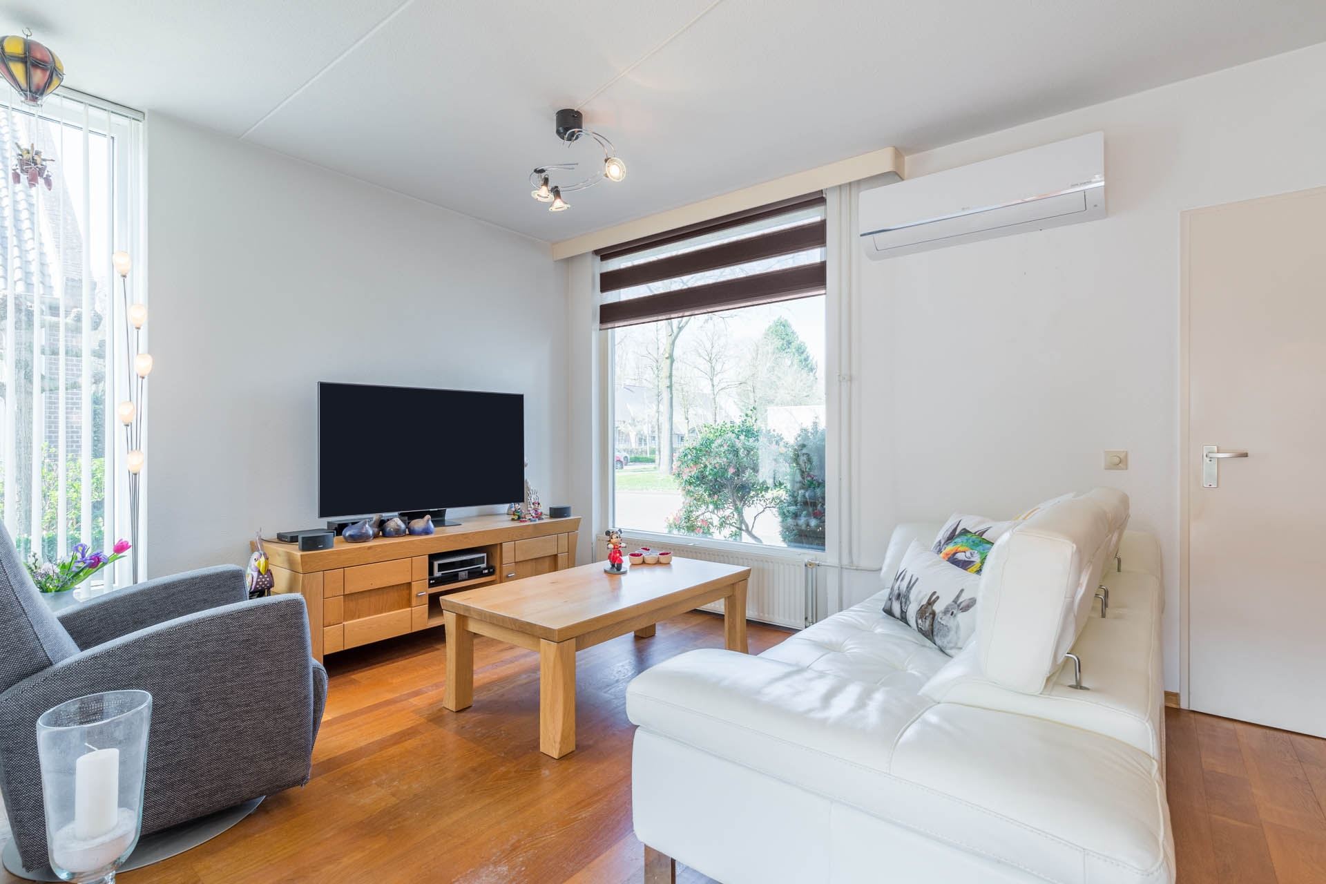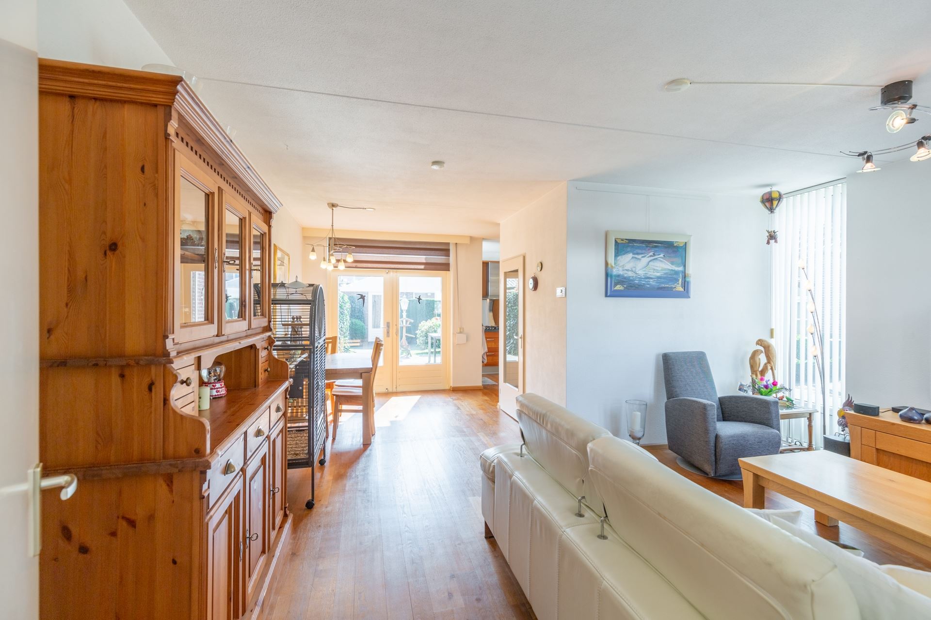Via de fraai aangelegde voortuin kom je bij de entree die toegang geeft tot de hal met meterkast en toilet en de deur naar de woonkamer met veel lichtinval en openslaande tuindeuren.