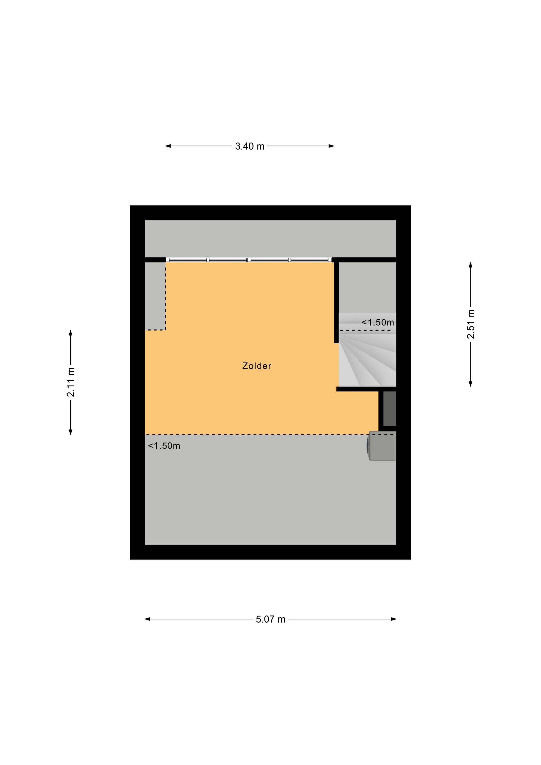 De trap brengt ons opnieuw naar de volgende verdieping, een ruime zolder met een dakkapel. Een vierde slaapkamer is hier te realiseren of een rustige werkplek.