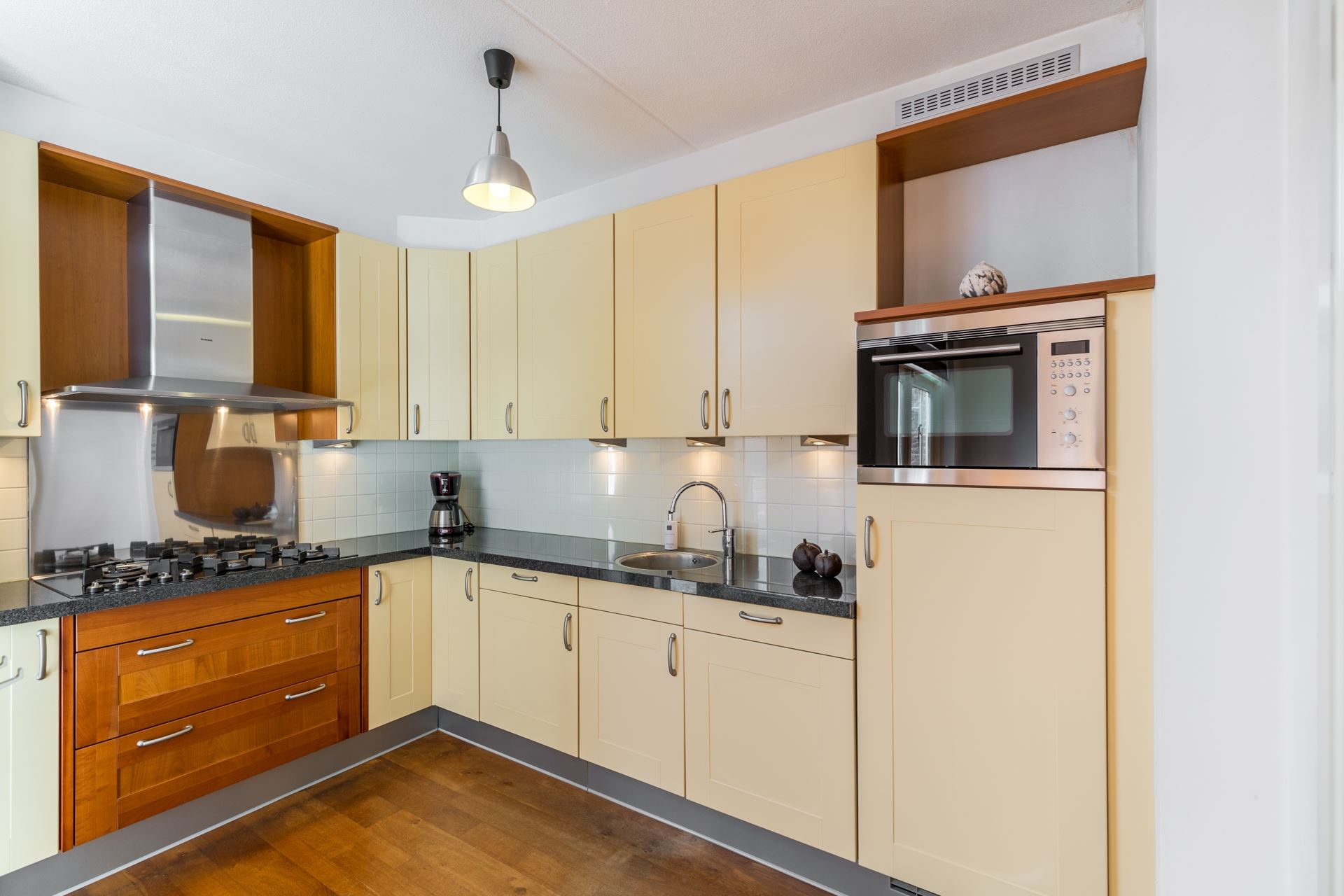 De half open keuken heeft een hoekopstelling met groot gasfornuis en wokpit, vaatwasser en combimagnetron. Ook vanuit hier kun je naar de mooi aangelegde tuin op het zuiden, dus veel zonuren gegarandeerd.